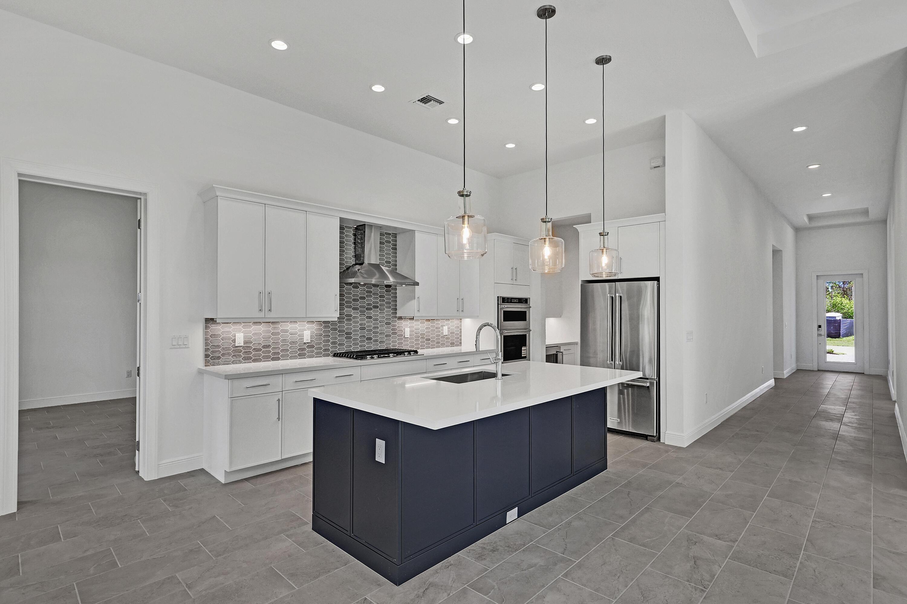 Located in the prestigious Tesoro Club--the most sought-after country club on Florida's Treasure Coast--this stunning 4-bedroom, 3-bathroom home with a spacious 3-car garage. Blending luxury, comfort, and privacy, the home features a serene primary suite with peaceful preserve views. The open-concept layout is enhanced by elegant tray ceilings and designer touches throughout. The gourmet kitchen boasts a 5-burner gas cooktop, stainless steel appliances, and quartz countertops--perfect for entertaining. Stylish 12'' x 24'' porcelain tile flows throughout the main living spaces, while impact-rated windows and doors invite abundant natural light.The 3-car garage includes dedicated storage for golf carts, providing added convenience for country club living. Currently under construction with an expected completion in October 2025. Tesoro Club offers resort-style amenities including a grand clubhouse, fitness center, full-service spa, resort pool, tennis and pickleball courts, dining, and a vibrant year-round social calendar. This guard-gated community is home to two championship golf coursesthe Arnold Palmer Signature Course is currently open for play, while the Tom Watson Signature Course is under construction and expected to be completed by 2027.