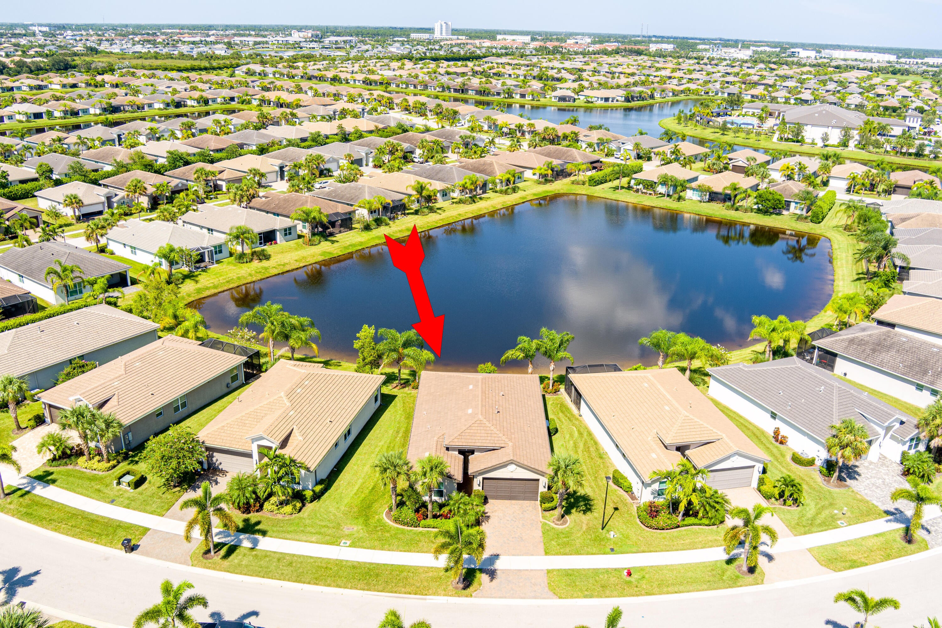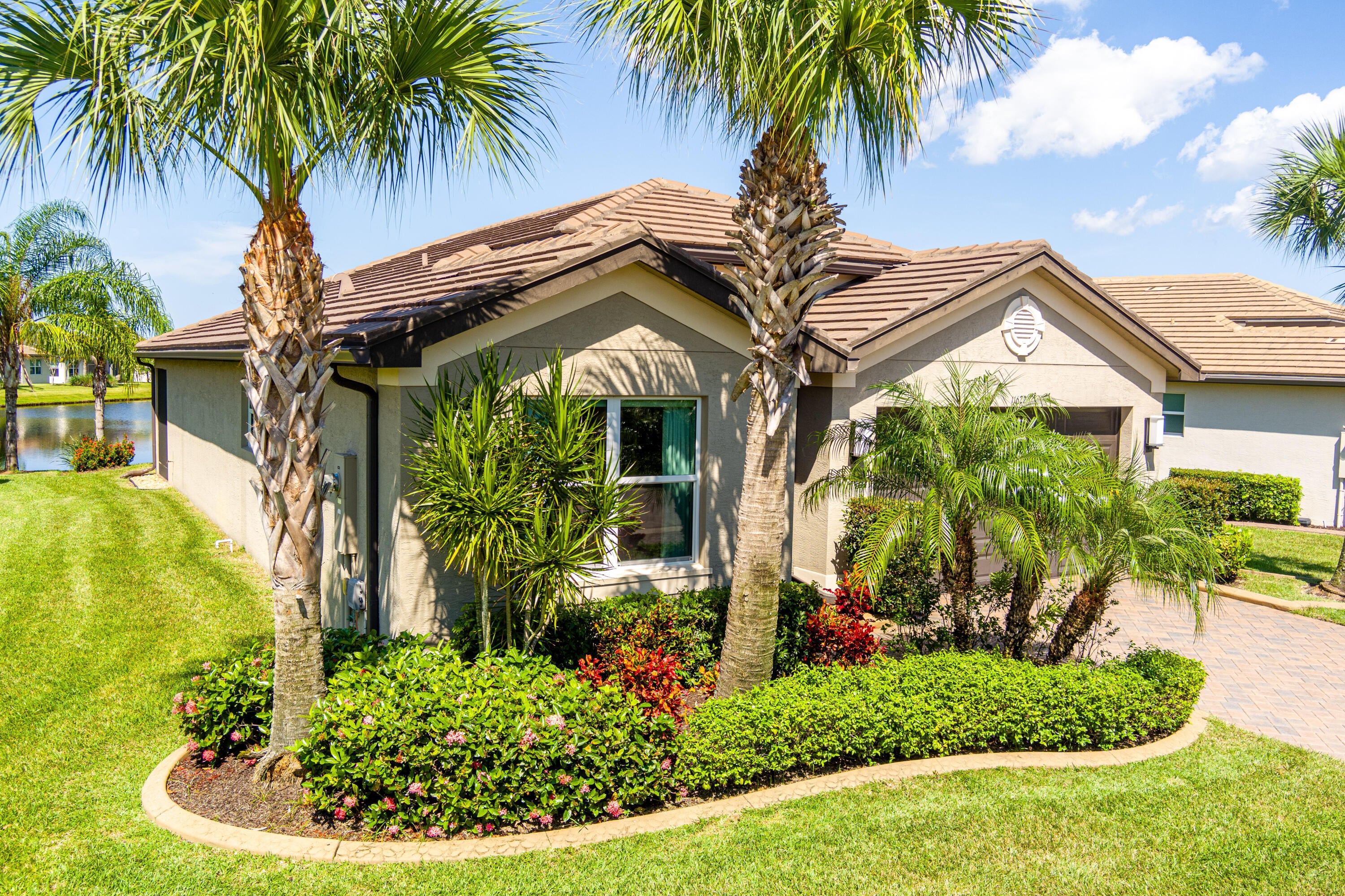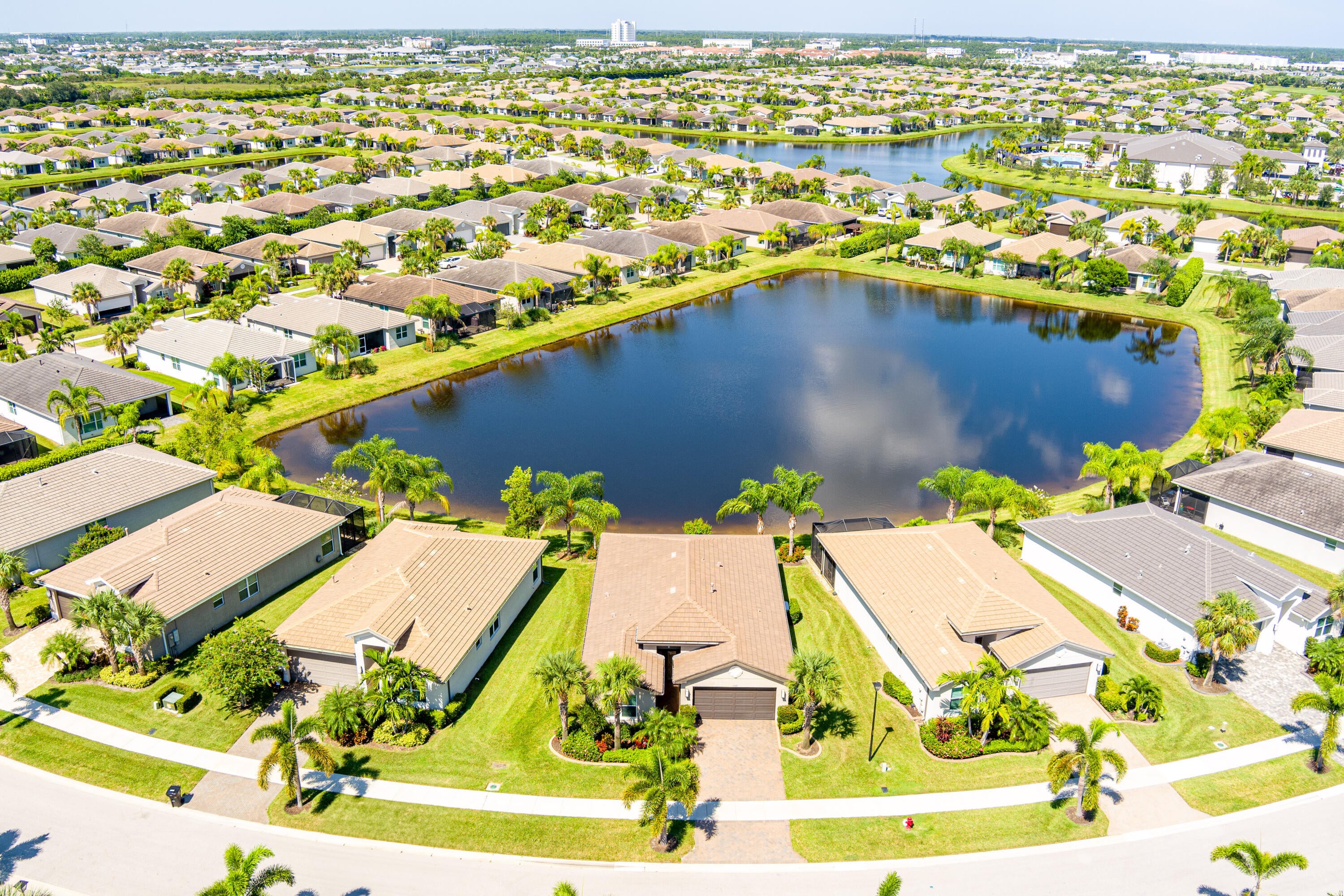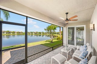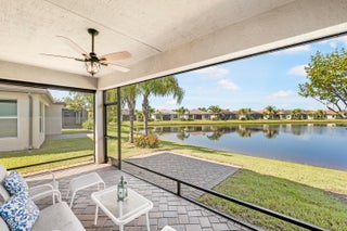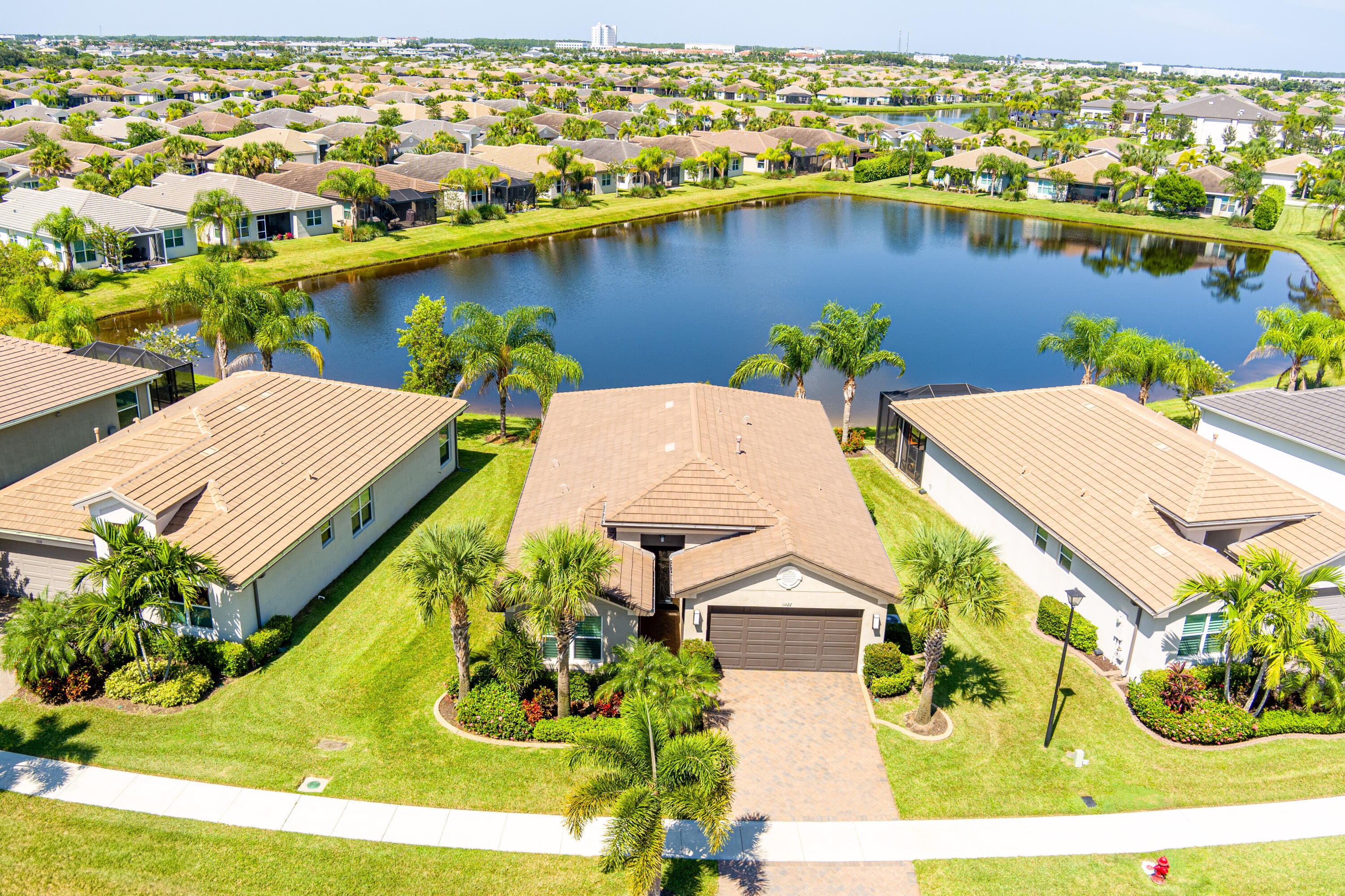 Luxury living in Valencia Cay: 2 bedrooms, 2 baths, plus a flex/third bedroom. Beautiful lake view. Thousands of dollars in upgrades: Kitchen with custom cabinets, pantry with pull-outs, and soft closing doors. Bathrooms with floor to ceiling tiles, glass enclosures and with linen closets. Master bedroom with walk-in California closet, and all others upgraded. Decorative front entrance glass door. Extra door screens in the front and patio doors, and another inside the patio for privacy. Hunter Douglas remote electric shades, as well as contemporary light fixtures in every room. Crown molding throughout. Reverse osmosis treatments for the entire property. Generator that serves the whole house. UV lights that protect against humidity. Built-in storage and sink in garage. Amenities included are: The Valencia Cay Social Club, walking distance from the home. The Sports and Fitness Center, with four outdoor pools and one indoor, tennis and pickle ball, the River Fresh Cafe and the fitness Center, The Arts and Culture Center that offers classes and lectures, a green market, and outdoor concerts, The Paseo to walk, to ride a bike or to use the golf cart for outings. It leads to all the clubs, as well as to the beautiful Dog Park. Steps from the Valencia Cay entrance is The Heart of Tradition, with restaurants, shops, and a new supermarket. Less than a mile away there is a new Publix, and the Town Center will open soon. There are restaurants and shops at The Village in Tradition, and The Landing Shopping Center is located a few minutes away from Valencia Cay.