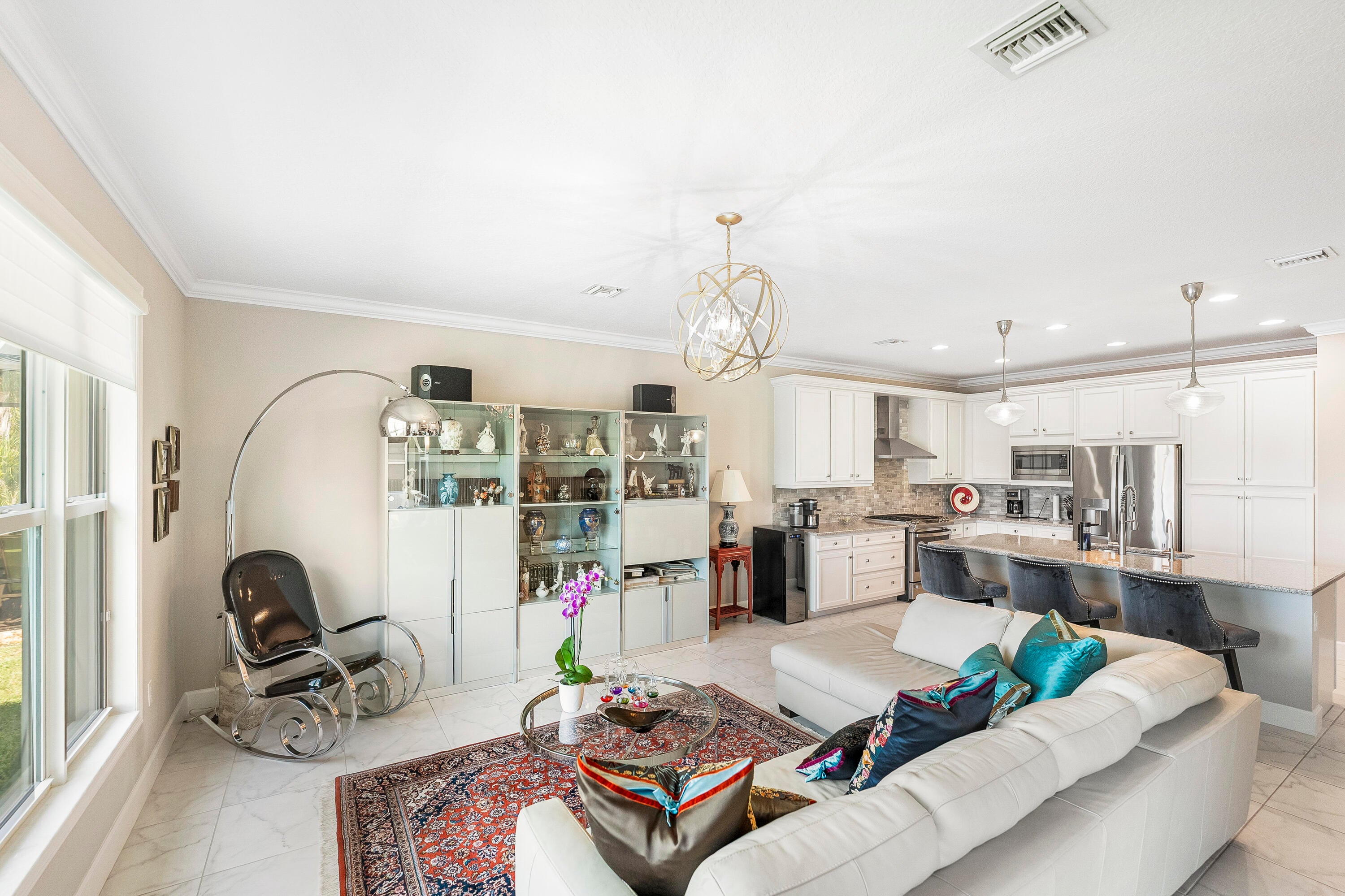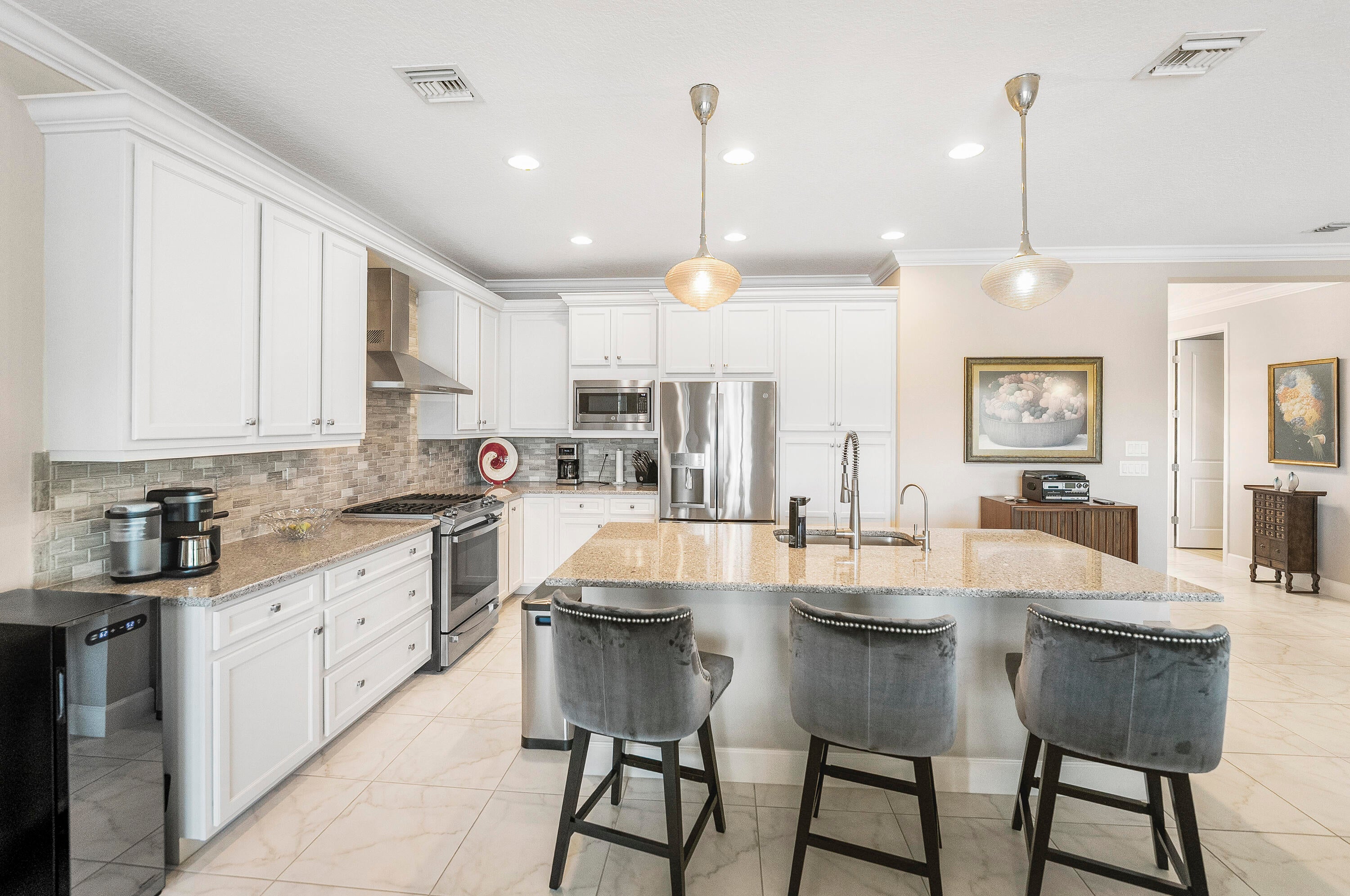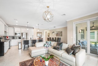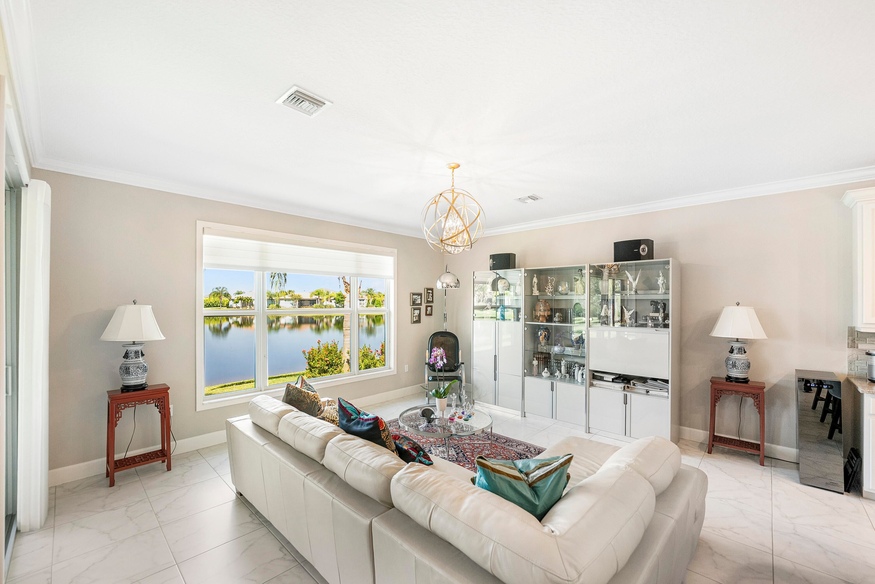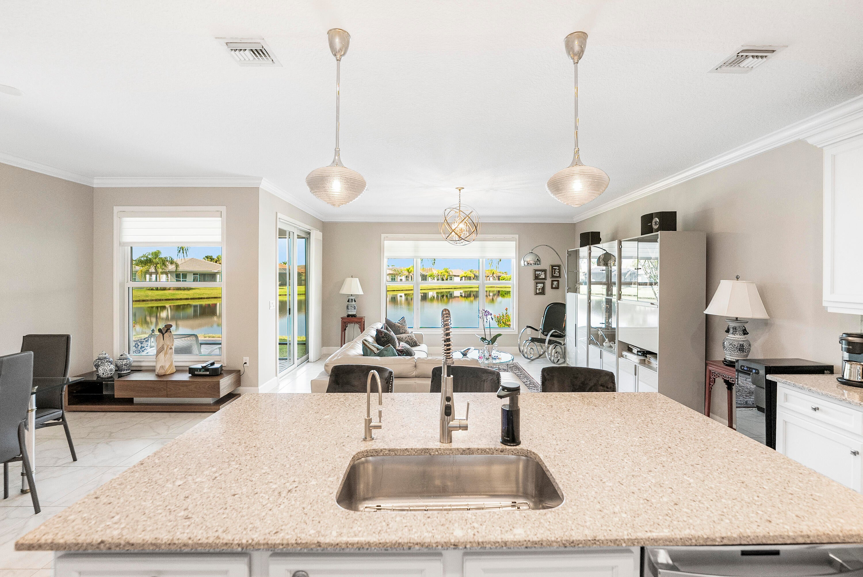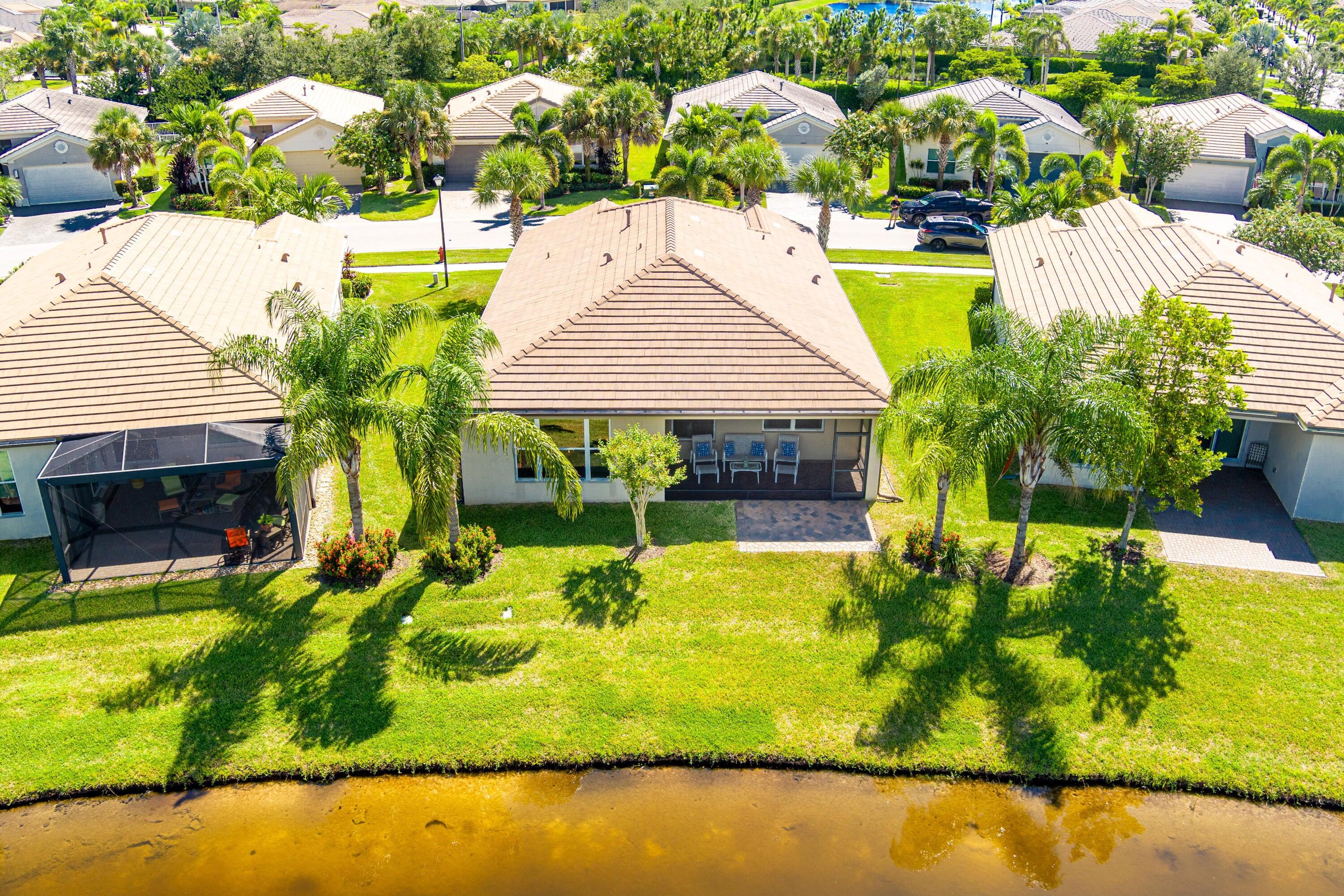 Luxury living in Valencia Cay: 2 bedrooms, 2 baths, plus a flex/third bedroom. Beautiful lake view. Thousands of dollars in upgrades: Kitchen with custom cabinets, pantry with pull-outs, and soft closing doors. Bathrooms with floor to ceiling tiles, glass enclosures and with linen closets. Master bedroom with walk-in California closet, and all others upgraded. Decorative front entrance glass door. Extra door screens in the front and patio doors, and another inside the patio for privacy. Hunter Douglas remote electric shades, as well as contemporary light fixtures in every room. Crown molding throughout. Reverse osmosis treatments for the entire property. Generator that serves the whole house. UV lights that protect against humidity. Built-in storage and sink in garage. Amenities included are: The Valencia Cay Social Club, walking distance from the home. The Sports and Fitness Center, with four outdoor pools and one indoor, tennis and pickle ball, the River Fresh Cafe and the fitness Center, The Arts and Culture Center that offers classes and lectures, a green market, and outdoor concerts, The Paseo to walk, to ride a bike or to use the golf cart for outings. It leads to all the clubs, as well as to the beautiful Dog Park. Steps from the Valencia Cay entrance is The Heart of Tradition, with restaurants, shops, and a new supermarket. Less than a mile away there is a new Publix, and the Town Center will open soon. There are restaurants and shops at The Village in Tradition, and The Landing Shopping Center is located a few minutes away from Valencia Cay.