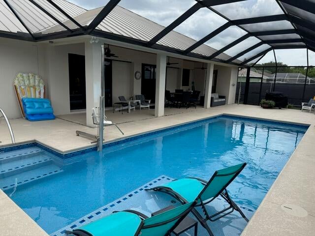 Rare home with Luxury Finishes & 6-Car GarageDiscover this one-of-a-kind custom-built pool home nestled in a sought-after Port Saint Lucie neighborhood spanning 2,640 sq ft under air... plus a 1500 sq ft 3 door garage ideal for collectors, boats, or future in-law conversion, a 1860 sq ft screened Lanai and 430 sq ft patio. This residence is a perfect fusion of luxury, function, and thoughtful design--ideal for those who crave space, elegance, and lifestyle flexibility.Step inside to an open-concept, split-bedroom floor plan filled with natural light and soaring 10' ceilings. The expansive chef's kitchen is a showstopper--featuring a massive Cambria quartz island, custom cabinetry, mosaic tile backsplash, stainless steel appliances, and a 6'x12' walk-in pantry. Just off the kitchen