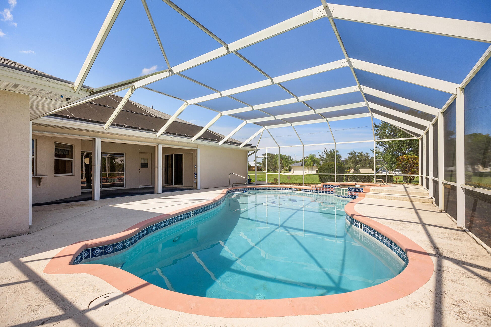NEW ROOF PRIOR TO CLOSING & SELLER OFFERING BUYER $7,500 IN CONCESSIONS WITH ACCEPTED OFFER! One or more photos was virtually staged. Welcome to your Florida retreat! This well-maintained 4 bed, 2.5 bath pool home with relaxing spa is just minutes from Port St Lucie's best shopping, dining, and the breathtaking beaches of Hutchinson Island. Set on a generously sized lot, this home offers a spacious layout, separate office space, oversized garage with additional golf cart storage and full-house storm shutters. The large screened lanai is perfect for poolside gatherings or simply soaking up the sun. This home is move-in ready and just waiting for new owners to bring their personal touch and create lasting memories. Call today to schedule your tour! No HOA. Buyer to verify measurements