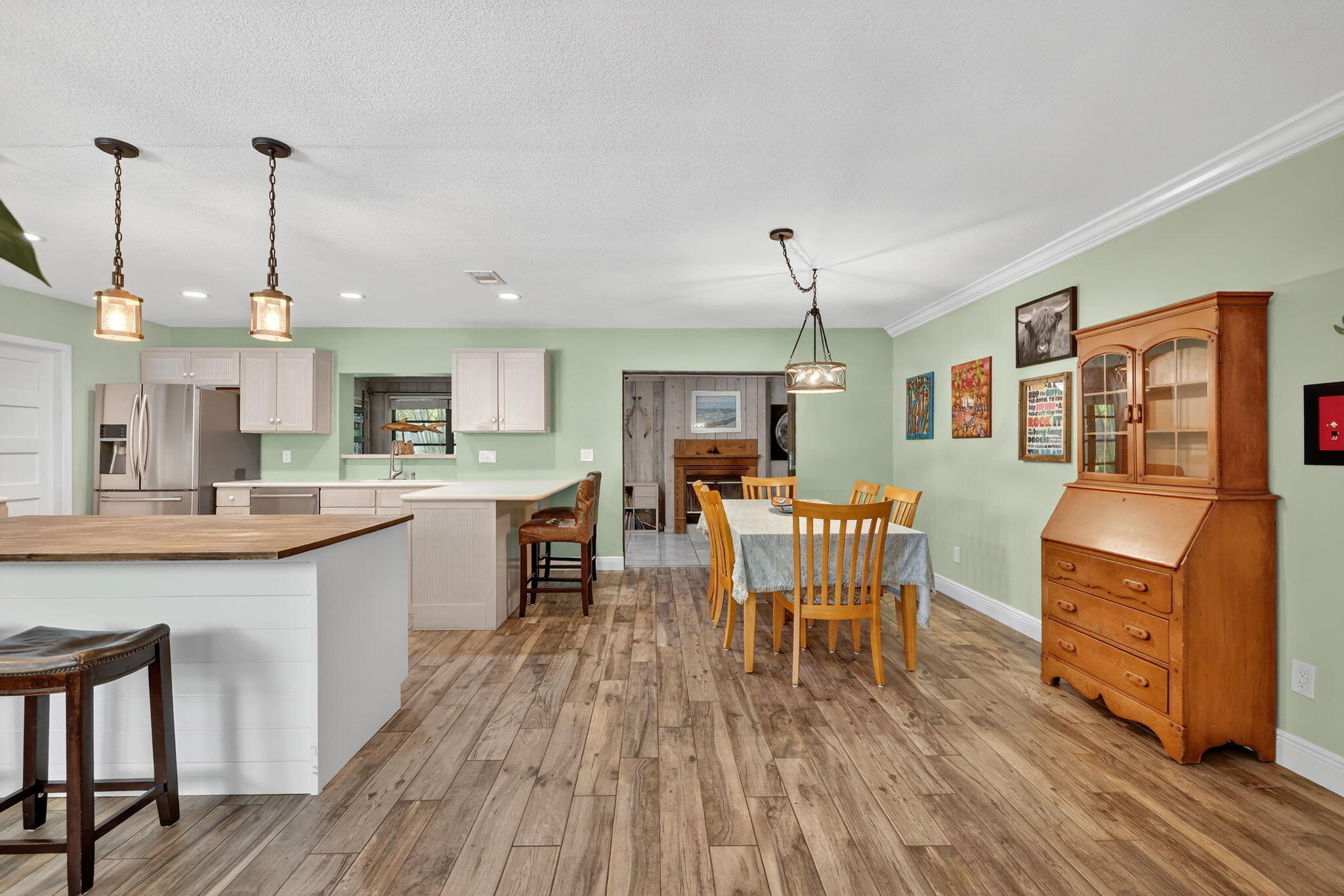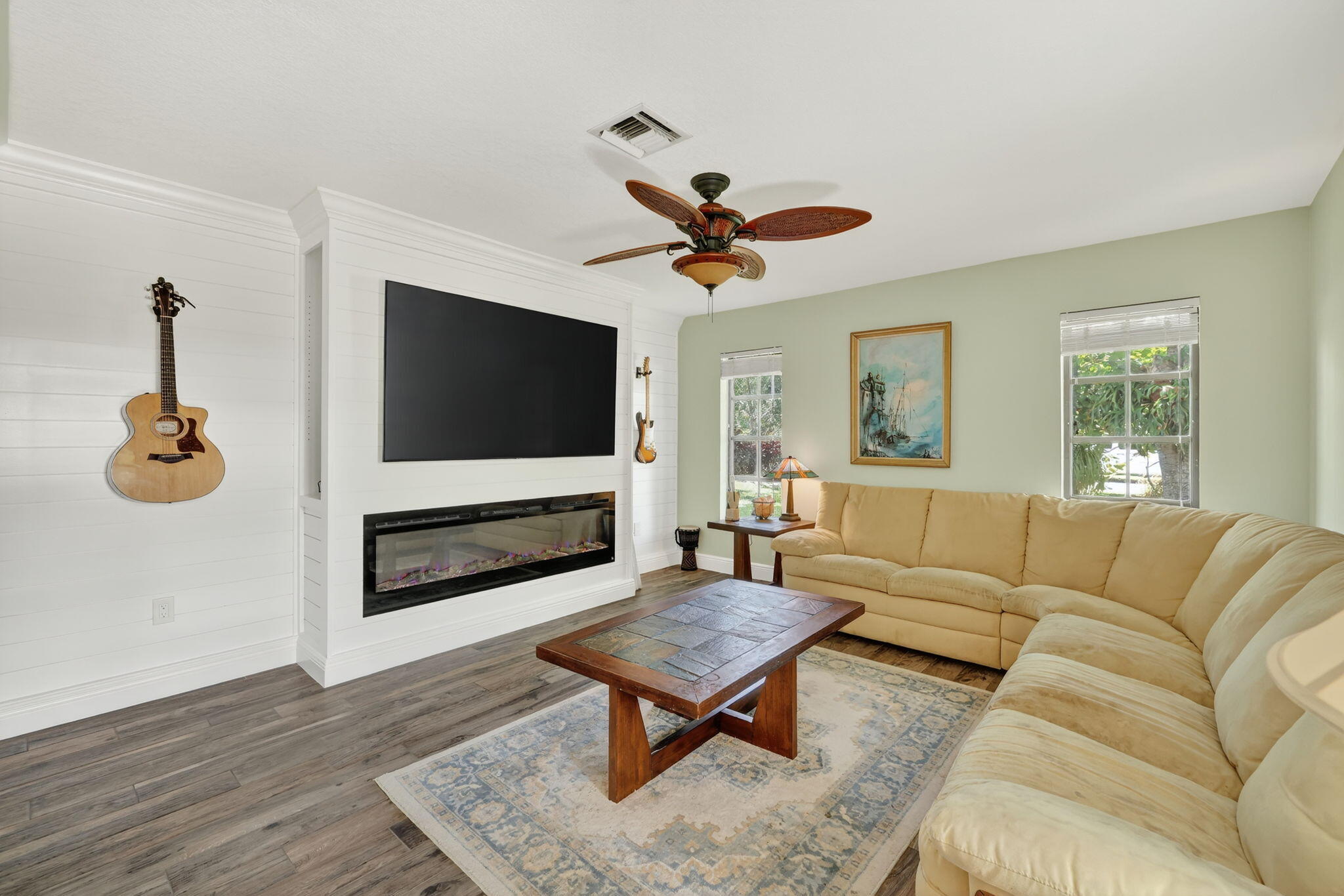 Coastal living at its best! Charming 3 BR | 2 BA | 2 Car Garage in the heart of Rocky Point with 1,924 sq ft of updated living space, this move-in-ready gem offers comfort, style, no HOA! Step inside to find wood-look tile flooring throughout & durable metal roof. Entertain in the Expansive kitchen, featuring ample countertops and cabinet space, SS appliances. Flexible floorplan: office/den, living room with cozy fireplace & built-ins (could be 4th BR), large family room. 22x11 screened porch opens to shady, fenced backyard. RV/Boat gated. Local marinas, Port Salerno waterfront dining, the public boat ramp. Maggy's Hammock Park, for birdwatching and hiking the Great Florida Birding Trail. Twin Rivers Park fishing, boardwalk strolls, & scenic views of the inlet. Full of Florida charm!
