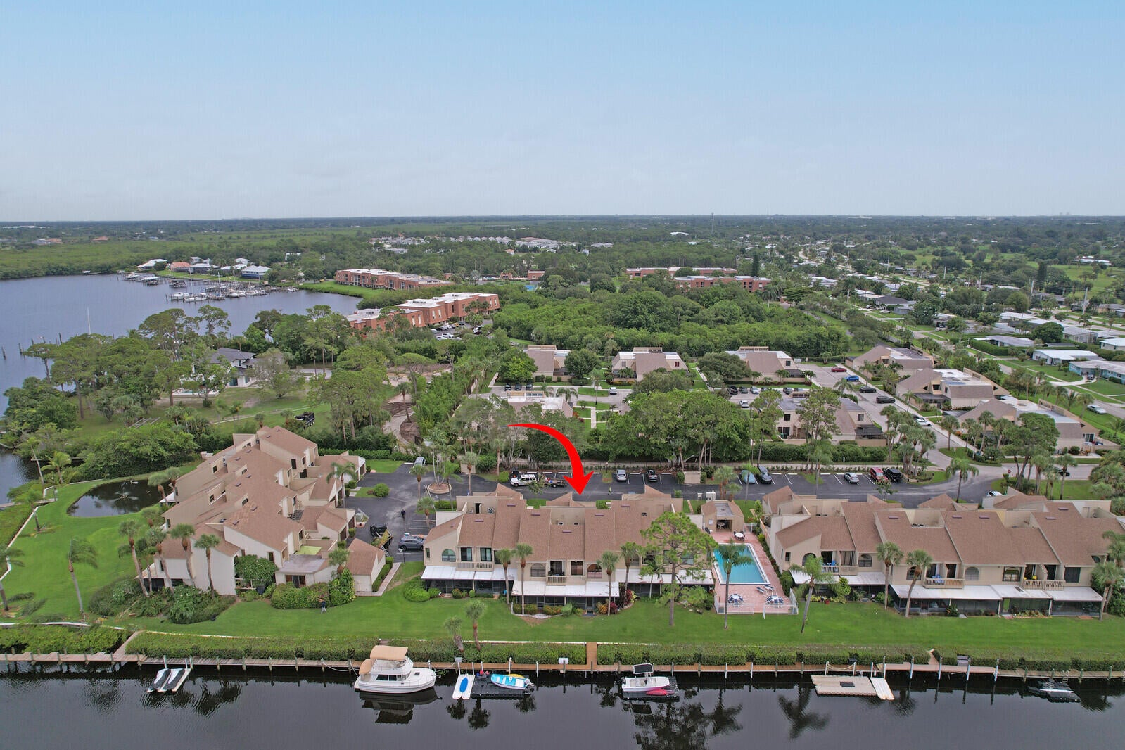 Enjoy wide water views and direct ocean access with no fixed bridges from this 3 bedroom, 3 bath townhome in peaceful Tarpon Bay Moorings. A private 40 foot dock and community pool are just steps from your back door. Fresh interior paint makes this home move in ready, with both AC units updated in the past three years and a 2021 roof. The main level includes a full bedroom and bath, perfect for guests or a home office. Upstairs, the primary suite features a private balcony overlooking scenic Kitching Cove, along with a versatile loft that can serve as an office, lounge, or storage. Ideally located near beaches, shopping, medical facilities, and downtown Jensen Beach, this home offers relaxed waterfront living with direct boating access.