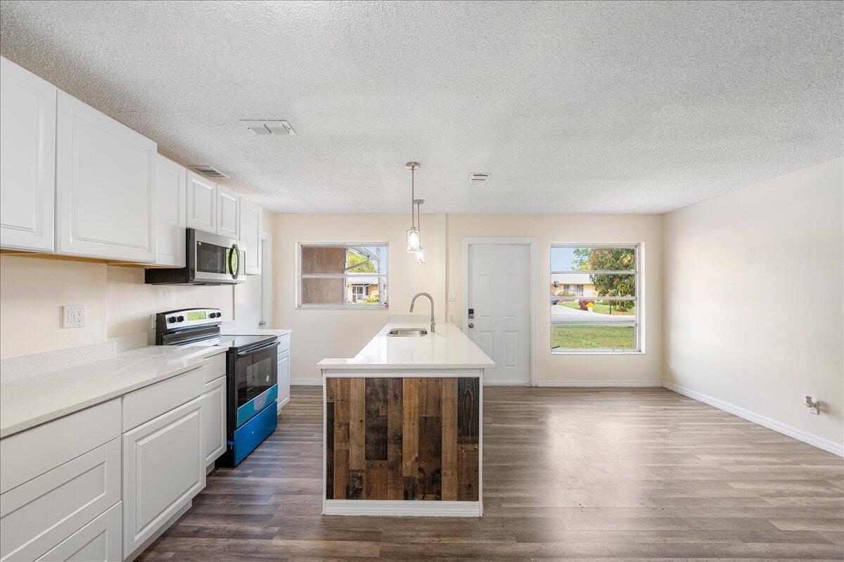 MOVE IN READY! CBS home with NEW ROOF! This beautifully renovated 3-bedroom (or 4 Bedroom), 2-bath home is move-in ready! Step into a spacious, open-concept living area, gatherings featuring a brand new kitchen w/ elegant quartz counters, white shaker cabinets, new appliances and lots of storage! Very stylish and functional! All new lights and fixtures, and new laminate flooring throught! NEW ROOF 2025! Oversized garage with laudry! Huge screened porch that is perfect for relaxing or grilling out. Private back yard with a smaill creek. Home is nestled in a quiet neighborhood and just minutes away from the boat ramp, serene parks, shopping, schools and convenient to I95 and the Florida Turnpike.