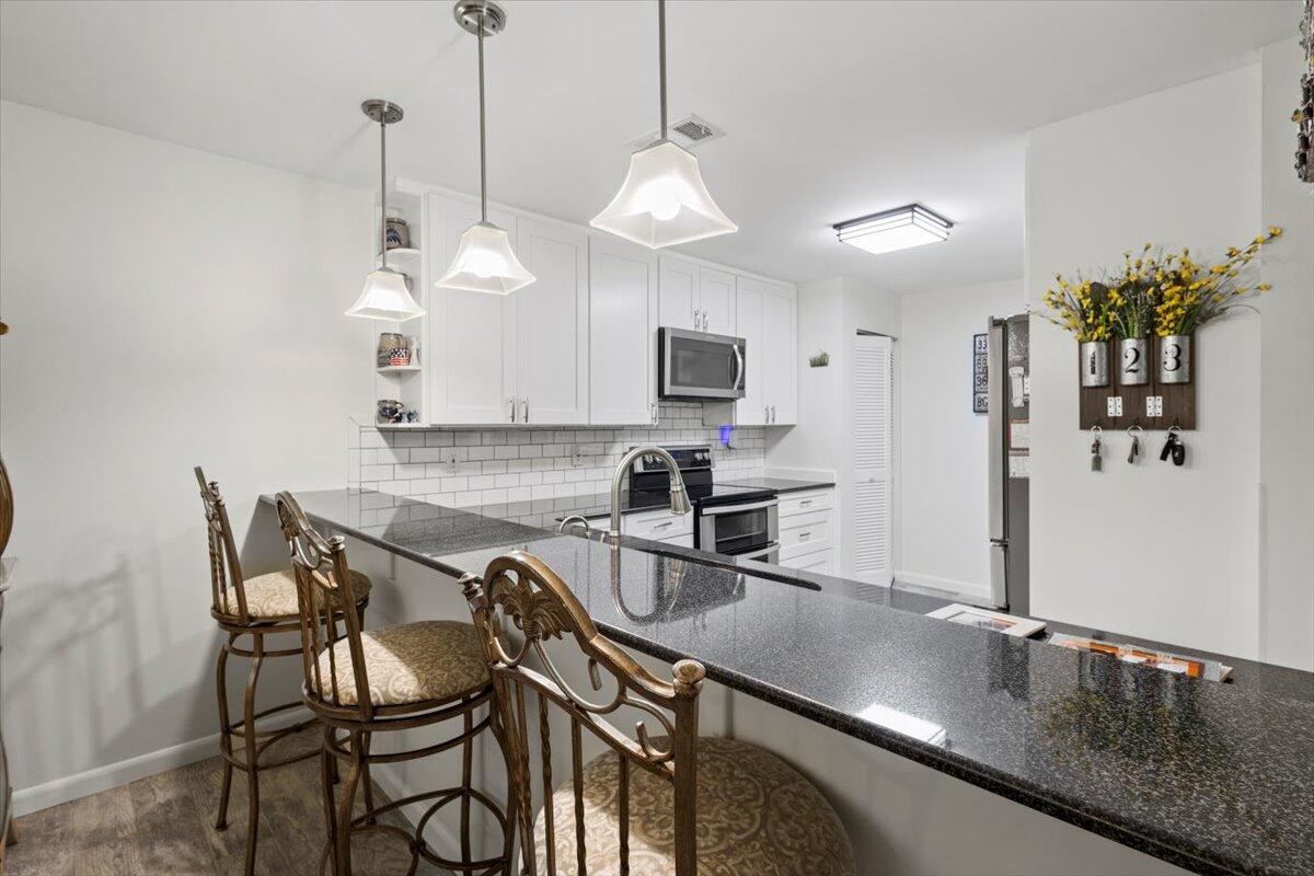 This beautifully updated 2/2 home with a large loft (that can easily work as a third bedroom) is light, bright and open with wood-look tile flooring throughout the main floor, brand new carpet on the stairs, and laminate flooring upstairs. The kitchen features white shaker cabinets, a clean subway tile backsplash, granite counters with plenty of counterspace, and stainless-steel appliances. Both bathrooms have been nicely updated. Impact windows and sliders throughout for peace of mind. Washer and dryer in the unit. Enjoy your morning coffee or afternoon BBQs in the screened in patio. Community is for all ages and is conveniently located near two golf courses, Pioneer Park, Botanical Gardens, restaurants, shopping and more!
