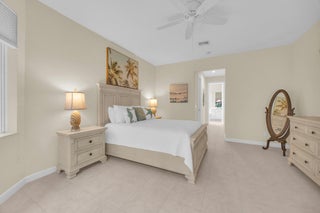 Tee up your Florida lifestyle at 8821 Champions Way in the prestigious PGA Village.Fully furnished and move-in ready, this 3 bedroom, 3.5-bath home offers over 2,300 sq. ft. of bright, open living space overlooking the golf course. Step outside to your private solar-heated, screened-in pool with cabana bath, or fire up the brand-new outdoor kitchen--complete with sink, ice well, grill, and granite seating for six--perfect for post-round gatherings.Inside, soaring 15' ceilings, oversized 12' sliding glass doors, and tile flooring throughout create a light, airy feel. The chef's kitchen boasts granite countertops, 42'' cabinets, and stainless-steel appliances, while the spacious primary suite features dual sinks, a soaking tub, and a separate shower.Located in The Lakes at PGA Village, you'll enjoy a clubhouse, fitness center, and resort-style pool, with optional memberships available to the PGA Golf and Social Club. Just minutes from I-95, shopping, and dining, this home is your ticket to championship living. Bring your bathing suit, toothbrush, and golf clubs. Your Florida dream starts here!