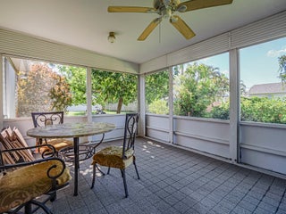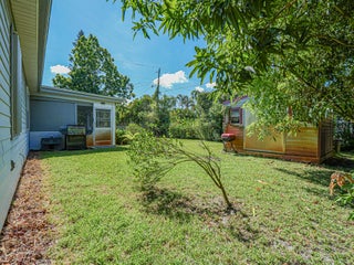 This is a must see! Welcome to this move in ready 3-bedroom, 2.5-bathroom home featuring a beautifully manicured yard with a 2 car garage with screen door. Enjoy the convenience of being minutes from shopping, dining, parks, and the beach. The backyard features fruit trees and a shed with a ramp. The living room, dining area and family room offer plenty of space for relaxation and hosting guests. Washer and dryer are included. The home boasts a screened front porch with tile flooring. The kitchen is equipped with granite countertops, and the living room, kitchen, and family areas all have tile flooring. The master bathroom has been recently renovated. 2023 roof. Screened back porch with pull-down hurricane shutters. This home is full of potential!