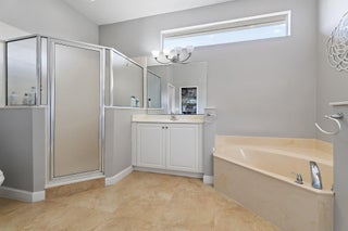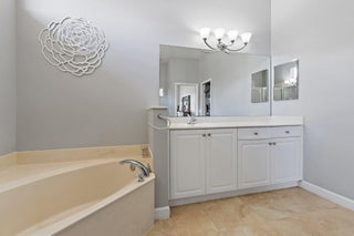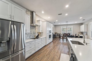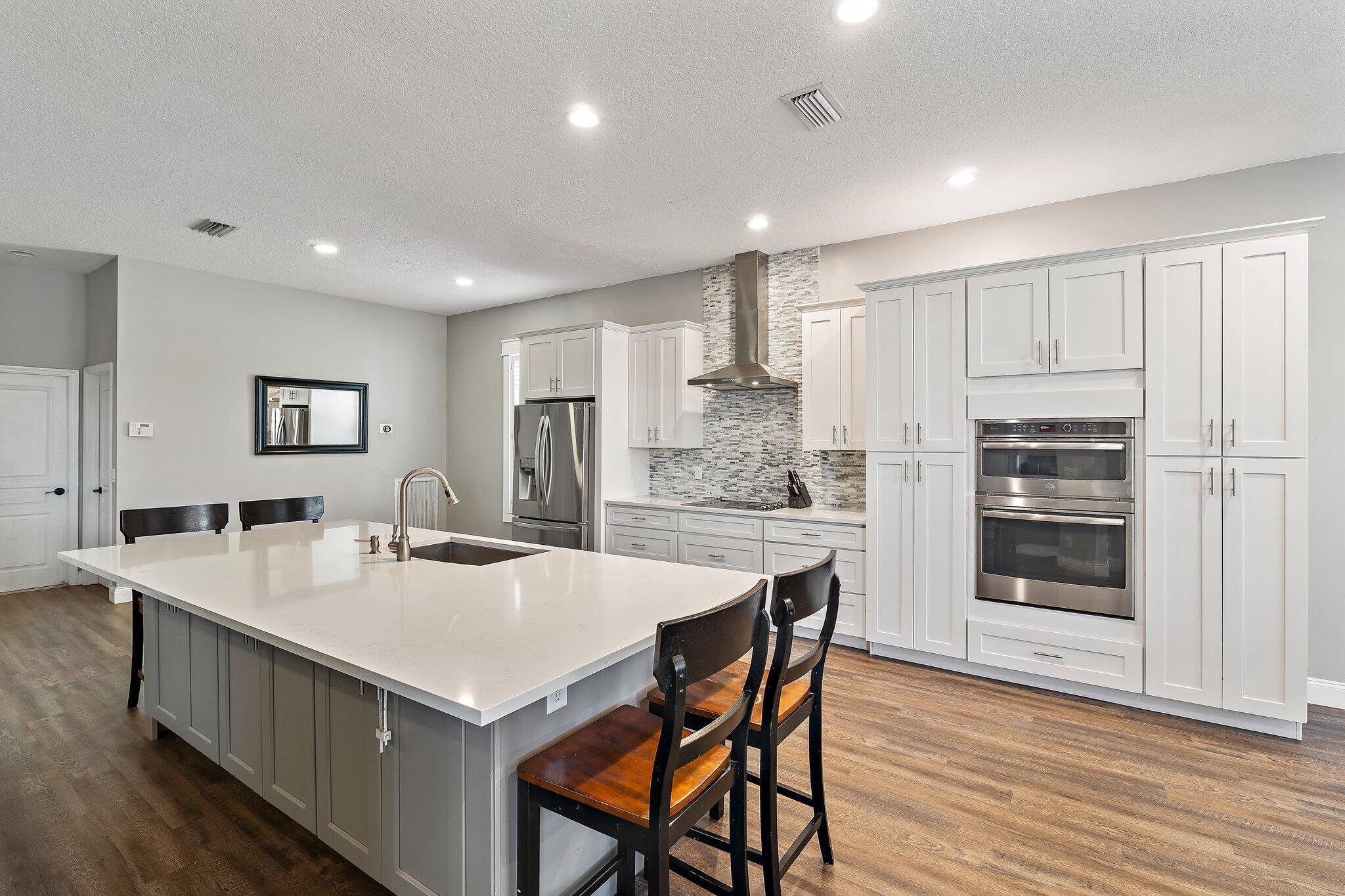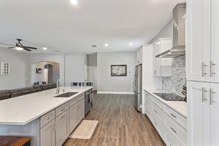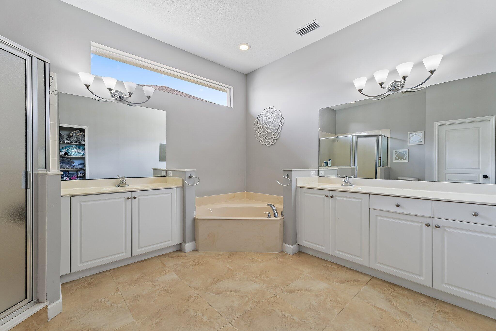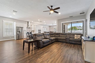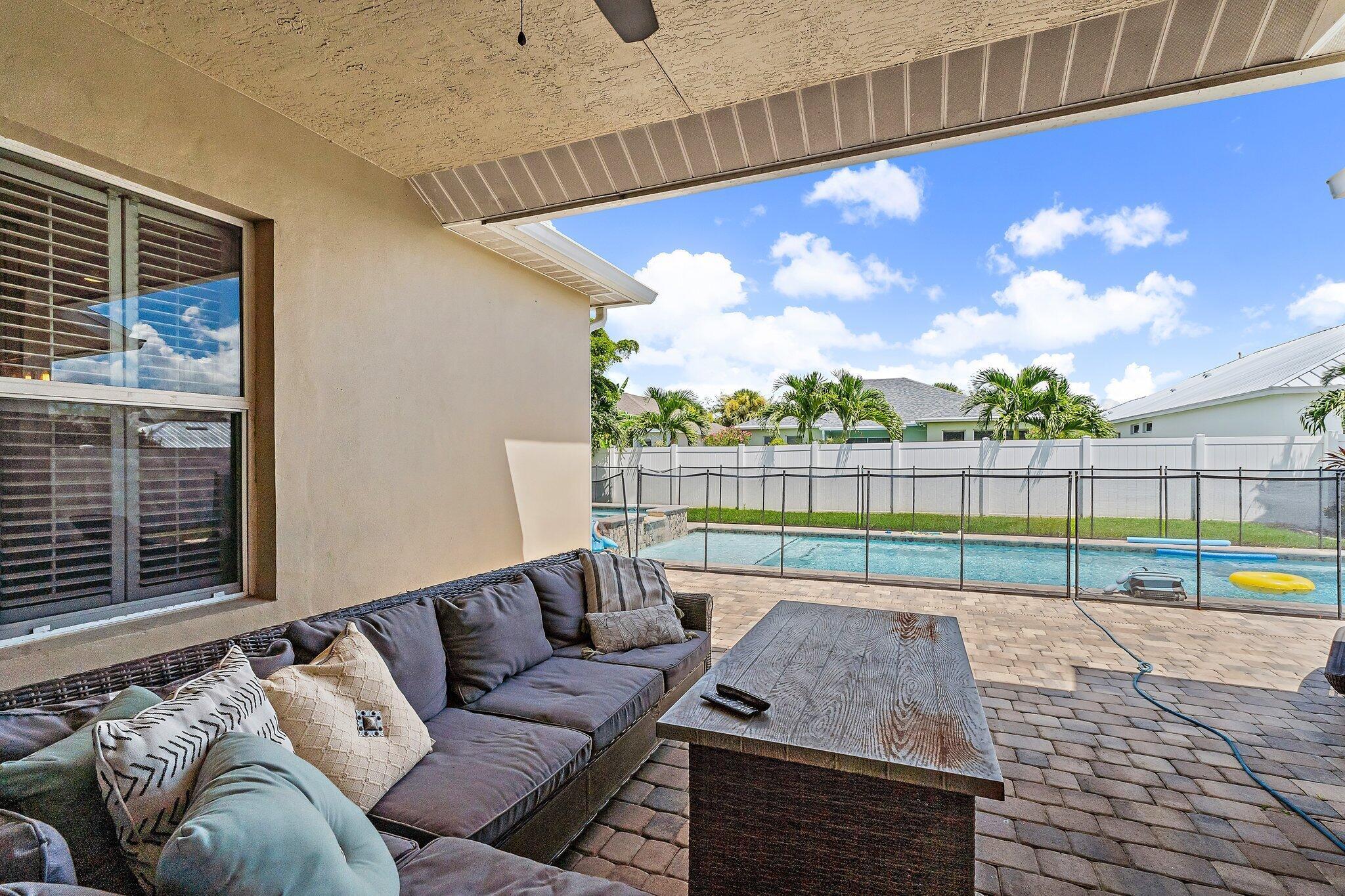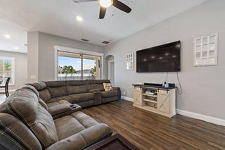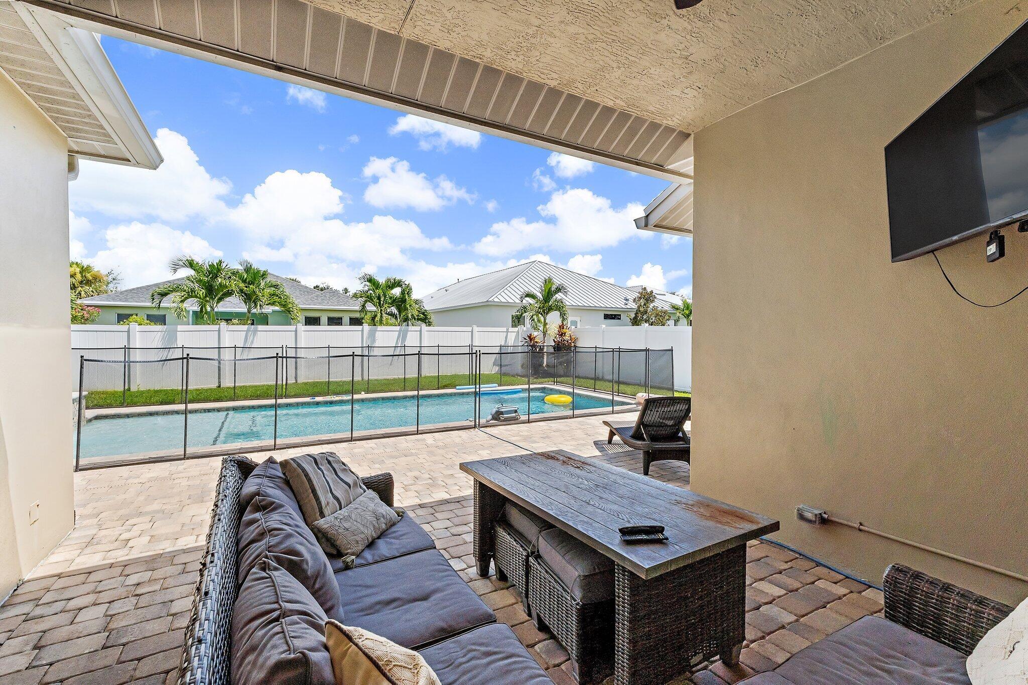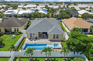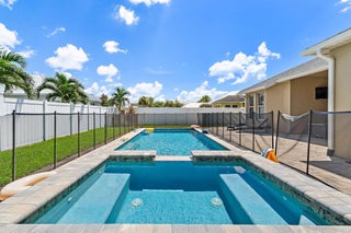 Enjoy all the perks of Tradition including parks, A-rated schools, restaurants shopping & more! Introducing this stunning 4BR, 2.5BA home with 2-car garage & metal roof. Bright open floor plan features an updated kitchen with quartz countertops, shaker soft-close cabinets, stainless steel appliances, cooktop & wall oven. LVP flooring, plantation shutters while crown molding in bedrooms add a touch of elegance. Spacious primary suite with walk-in closet & updated guest bath. Step outside to a heated saltwater pool & hot tub, paver deck with child safety gate, and fully fenced PVC yard for added privacy--perfect for relaxation & entertaining!