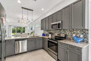 Welcome to an exquisite opportunity at 11461 Southwest Visconti Way, nestled in the prestigious PGA Verano located in Village Emilia community in Port St. Lucie, Florida. This sophisticated single-family home, constructed in 2022, offers a seamless blend of modern elegance and functional living across 1,646 square feet.The spacious living areas feature tile flooring, complemented by plush carpeting in the bedrooms. Tray ceilings elevate the aesthetic in both the living room and the master suite, which also boasts dual closets and a walk-in shower.The gourmet kitchen is a culinary enthusiast's dream, equipped with stainless steel appliances, granite countertops, designer tiled backsplash and 42-inch cabinetry. Enjoy serene lake views from the lovely eat in kitchen.This home is perfect for entertainment and relaxation, featuring impact-resistant windows and doors, a two-car garage, and a screened-in patio with garden views. The community offers an array of amenities, including an indoor pool, sauna, tennis courts, and a communal pool. Enjoy the convenience of air conditioning, a dishwasher, and included parking. Plus, with 27 pickleball courts and a vibrant social atmosphere, there's something for everyone. Seize the chance to own a piece of paradise in Port St. Lucie, where luxury meets lifestyle without compromise.