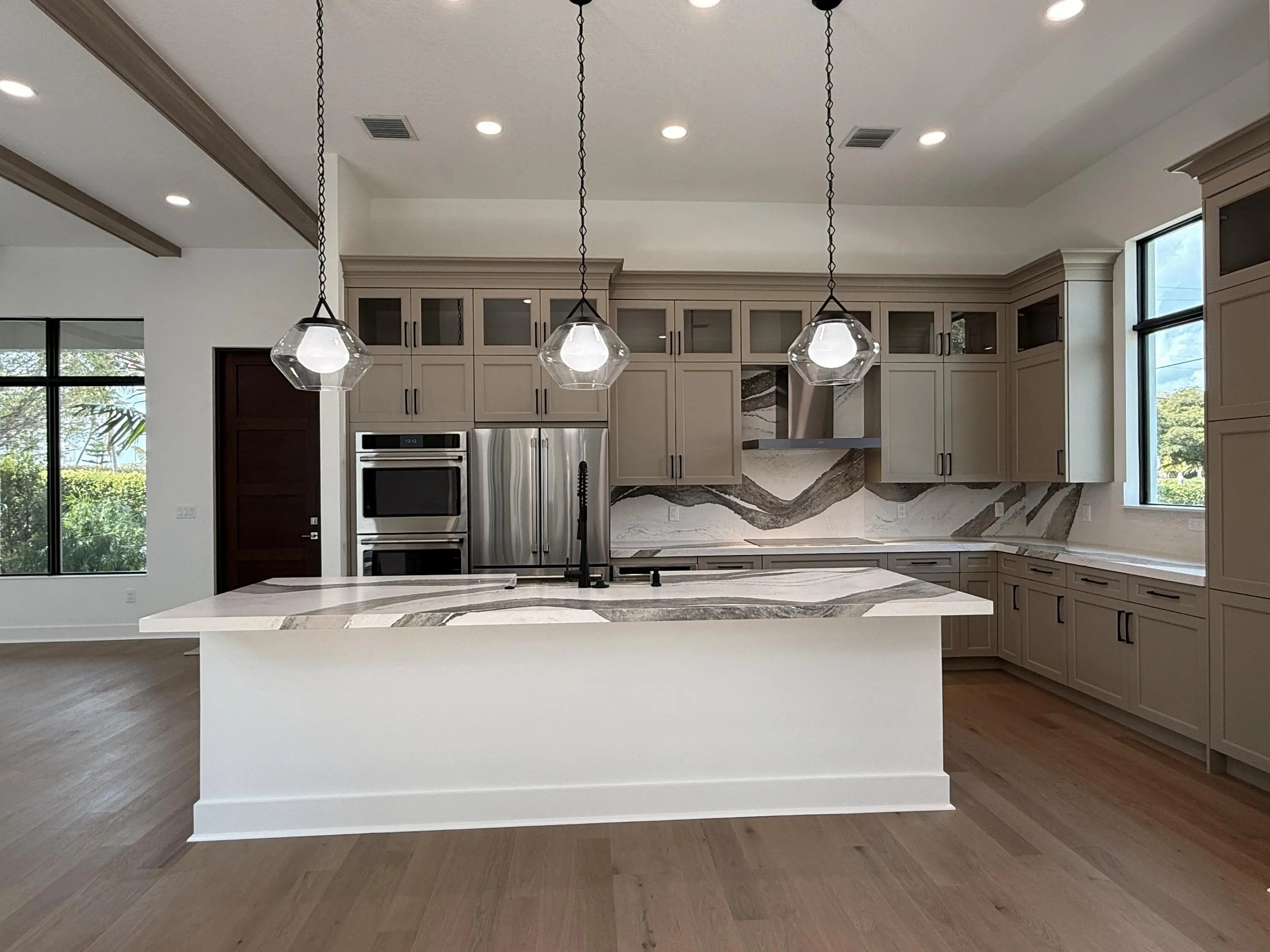 New Construction Courtyard Home with Main-Level Owner's Suite | Stuart Florida Waterfront Living | 4 bedrooms, 4.5 bathsDiscover sophisticated living in this stunning new courtyard-style home featuring the convenience of a first-floor owner's suite. This exceptional two-story residence offers seamless indoor-outdoor design with the main-level master bedroom providing single-story living comfort. Located steps from the Saint Lucie River in one of Stuart's most peaceful and tranquil neighborhoods, this contemporary home combines modern luxury with a Florida coastal lifestyle.The chef-inspired gourmet kitchen anchors the home with the GE Cafe line of professional-grade appointments, including a 36'' induction cooktop, a ventilation hood,