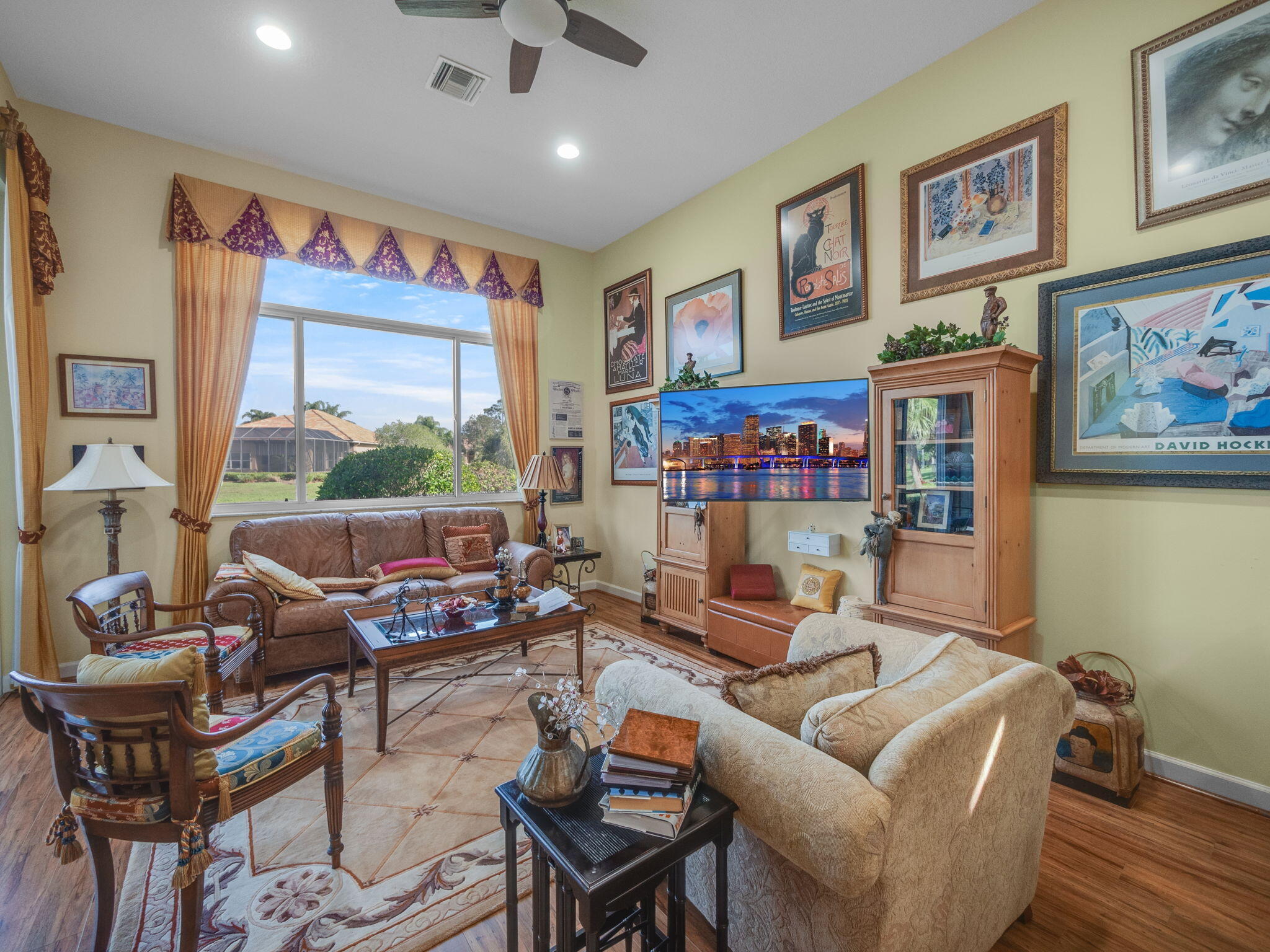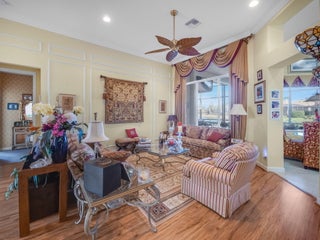 This beautifully appointed 2-bedroom plus den, 2.5-bath lakefront residence is nestled in the prestigious Kingsmill at PGA community of St. Lucie. The versatile den can easily serve as a third bedroom, home office, or cozy retreat, offering flexibility to suit your lifestyle. Expansive windows frame serene lake views, filling the home with natural light and creating a seamless connection between indoor comfort and outdoor tranquility. The open-concept living area is perfect for entertaining, while the gourmet kitchen boasts modern appliances, generous counter space, and a convenient breakfast bar for casual dining. The primary suite offers a private sanctuary with a spa-like en-suite bathroom and a spacious walk-in closet.The second bedroom is ideal for guests, and the home's thoughtful design includes a two-car garage, ample storage, and a private outdoor patio overlooking the sparkling lake. For added peace of mind, the home is equipped with accordion shutters for enhanced security and storm protection. Residents of Kingsmill enjoy resort-style amenities including championship golf, a community pool, a recreation center, and more. Don't miss the chance to make this lakefront gem your ownyour piece of paradise awaits.