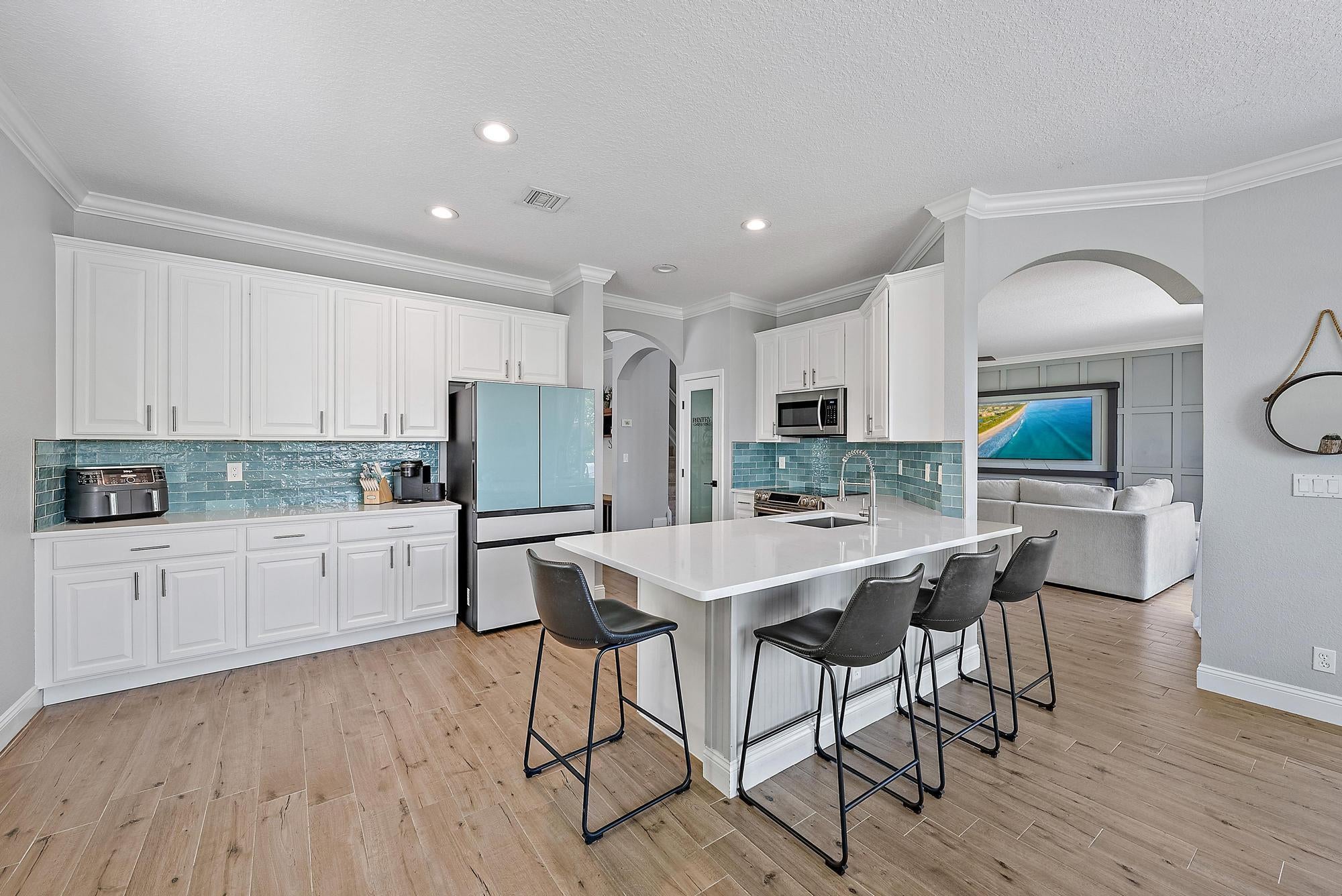 Don't miss this beautifully updated lakefront home in the gated community of Victoria Parc Estates featuring 3 bedrooms, 2.1 baths, a first-floor den/playroom, and a large upstairs flex space which could be a living room, office, gym, playroom - you name it! Enjoy a private backyard oasis with a saltwater pool, tropical landscaping, and stunning wide water lake views. Inside, enjoy an open layout with modern finishes, light-filled living areas, and versatile spaces perfect for work or play. Residents of Victoria Parc enjoy walkable parks, trails, shopping, dining, and tons of community events. Experience the lifestyle and convenience of Tradition living!