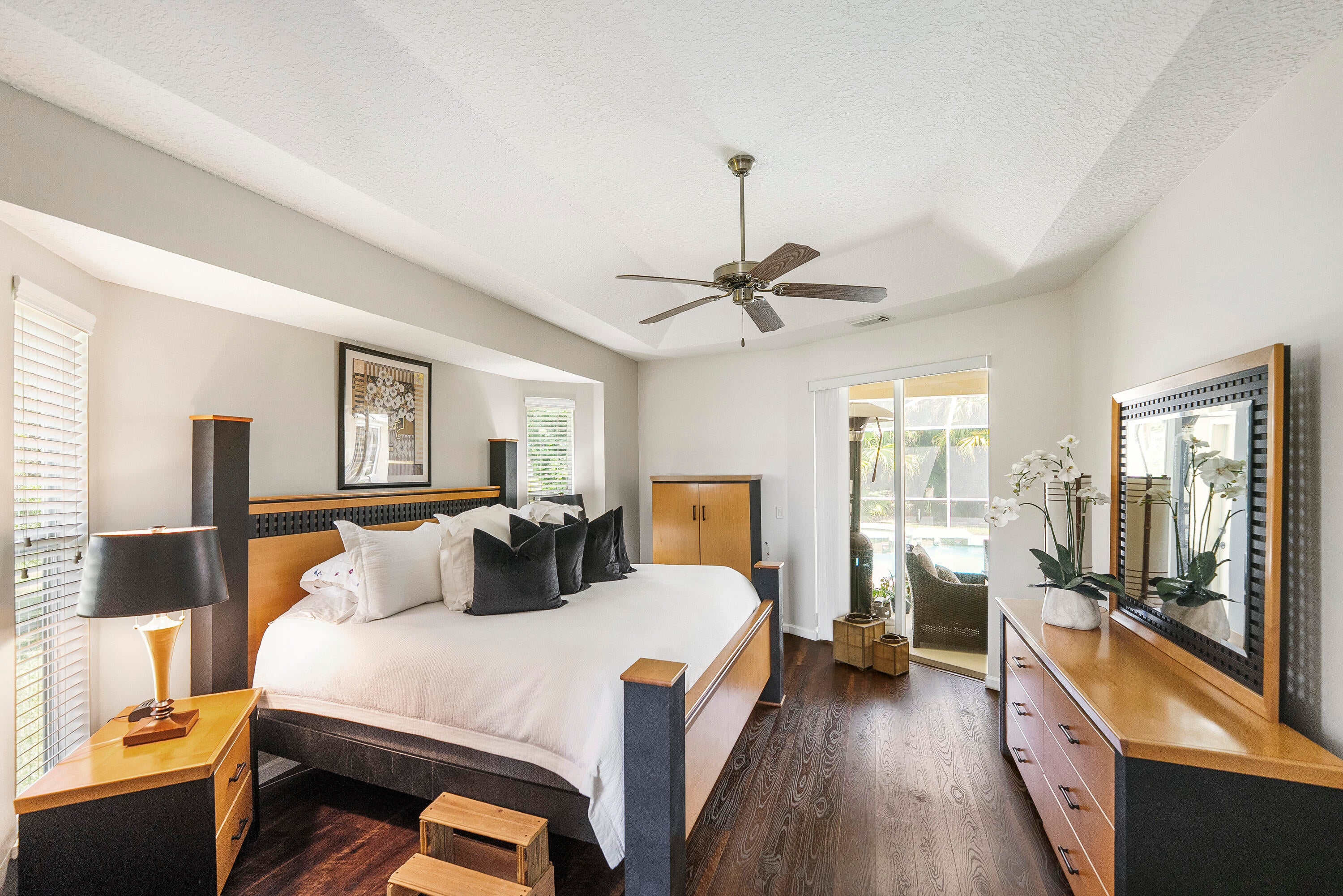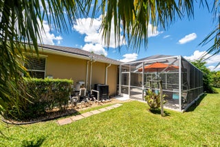 This Gem Home is located on a beautiful corner lot. Split plan with tile and waterproof laminate flooring in the bedrooms. Kitchen has plenty of cabinets for storage, and open to a generous size family room. Plenty of room to entertain on the back patio and pool area. Roof and gutters redone in 2021, New screening done a few months ago, new hot water heater done 2024, and air conditioner 2018. Please verify all information, room sizes, front exposure, all info.
