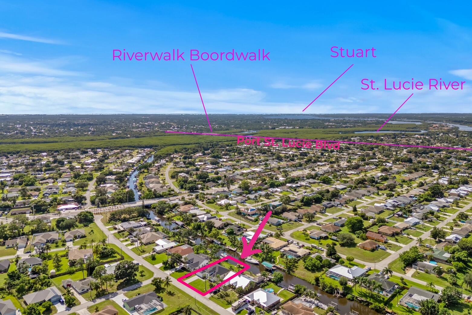 Welcome to 632 SE Seahouse Drive, where everyday living meets a waterfront escape. This NEW CONSTRUCTION 4-bedroom, 3-bath home offers over 2,400 square feet of thoughtfully designed space, including a bright open kitchen, formal dining, and a spacious great room perfect for gathering with family and friends. The primary suite is a true retreat, while the split-bedroom layout gives everyone their own space and comfort. Step outside to your covered patio and take in the view--your private dock sits just beyond, with direct ocean-access waterways ready for boating, kayaking, or simply soaking in the peaceful Florida lifestyle.Life here extends far beyond the backyard. Catch a game at Clover Park, enjoy sunset strolls at The Port District Boardwalk, or explore the lush Port St. Lucie Botanical Gardens. With vibrant local attractions and the serenity of waterfront living, this home captures the best of both worldstranquil retreat and lively community, all wrapped into one.