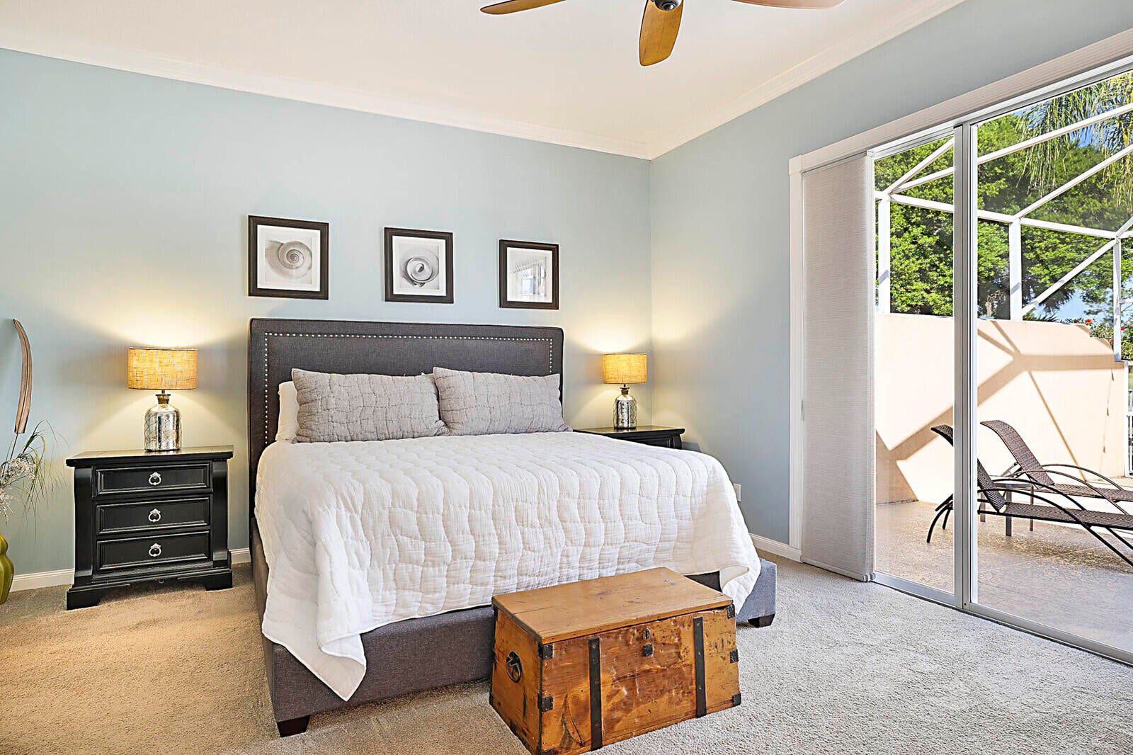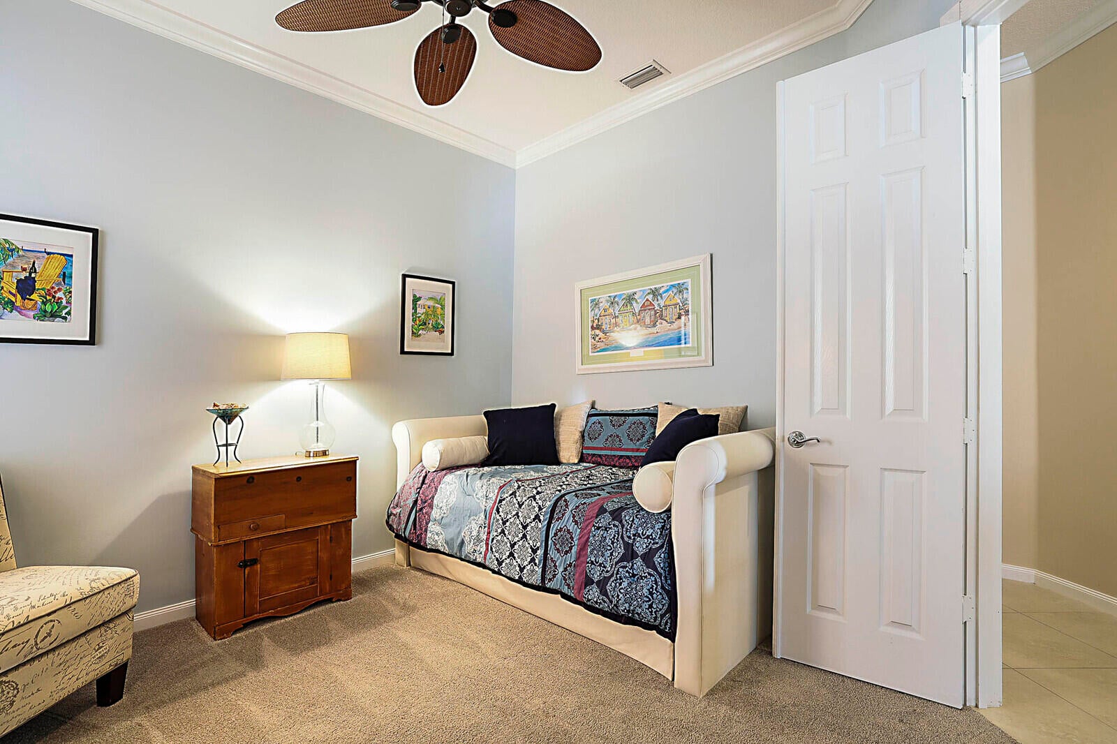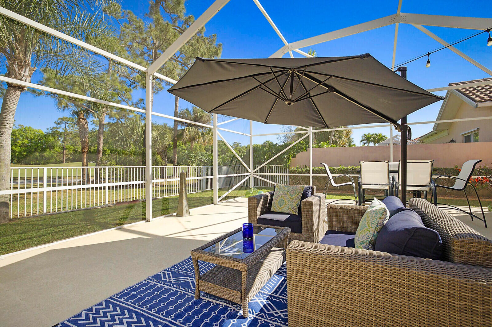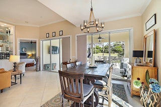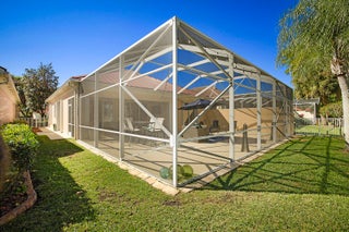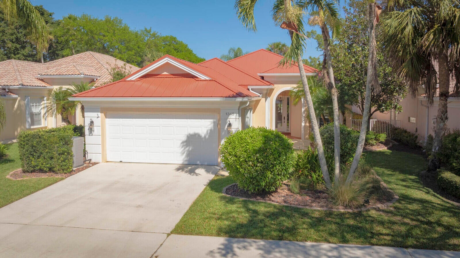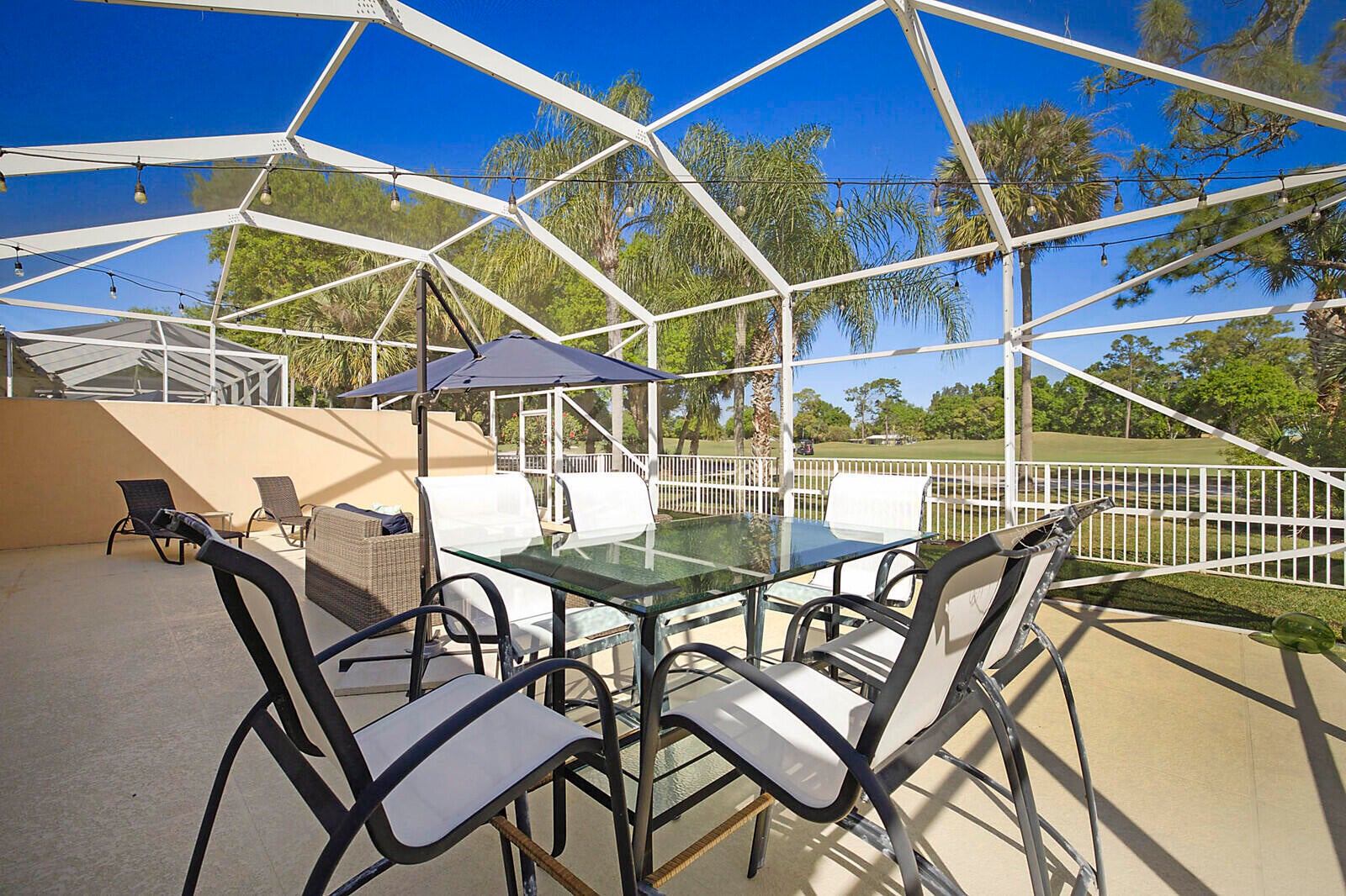 Welcome to the gated golf course community of The Florida Club, Stuart. Enter this lovely DiVosta quality-built home through a welcoming foyer into an open-concept layout that maximizes space and natural light. You'll appreciate the grandeur with 3 full bedrooms, 2.5 bathrooms, and an office. High ceilings, enhanced with crown molding and large windows, create an airy and inviting atmosphere throughout the house. The kitchen has stainless steel appliances and features granite countertops. A new metal roof and easy-close shutters offer 100% storm protection. This property features a 1,000-square-foot screened-in lanai, providing the perfect spot for relaxing & entertaining anytime of the day while enjoying your picturesque golf course view.
