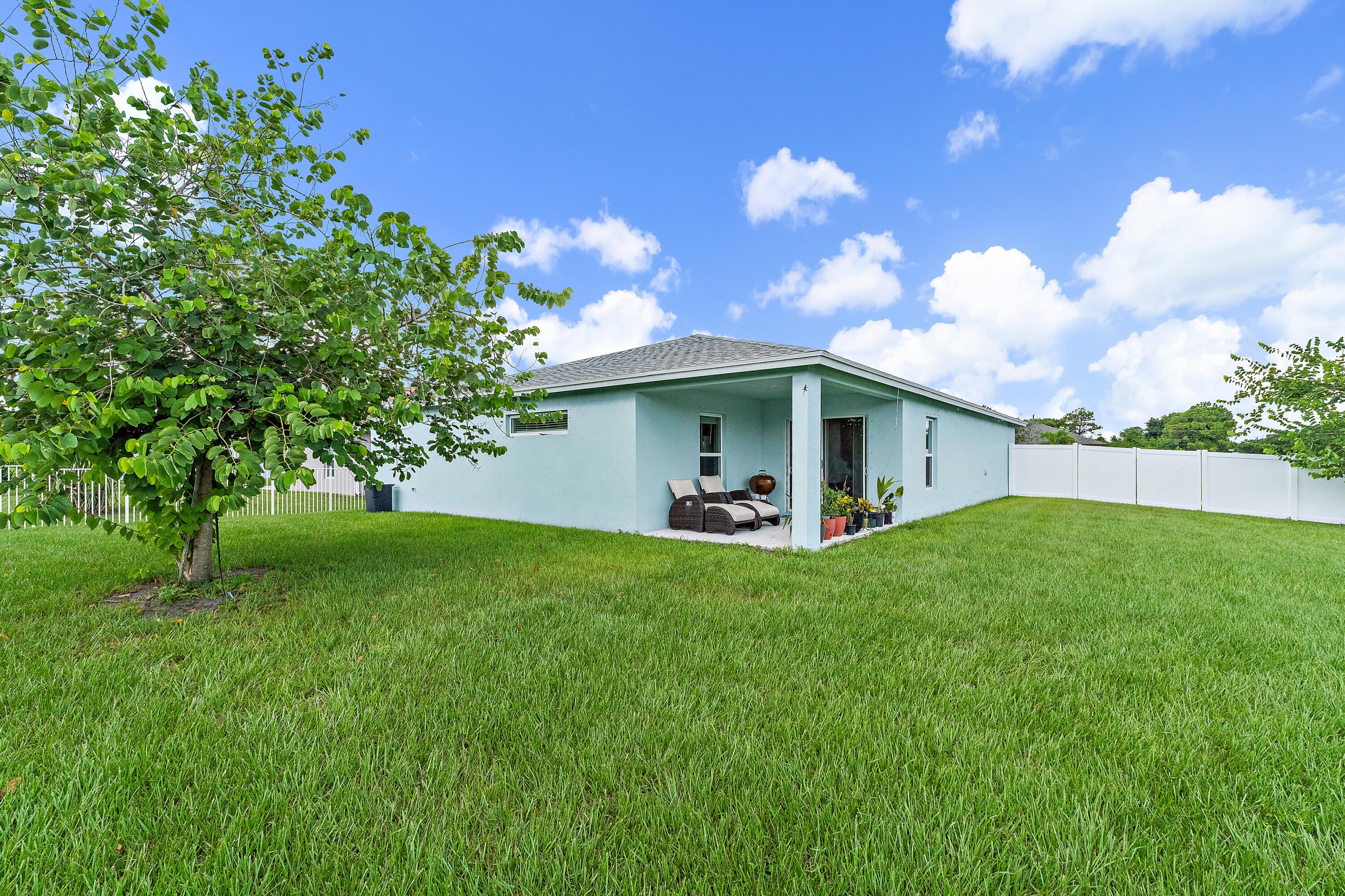 Ready to welcome its next owner, this beautiful newer construction home built in 2022 offers a spacious split floor plan with 4 bedrooms, 2 bathrooms, and modern finishes throughout. Smart technology allows control of your home's temperature, outdoor lighting, and garage for added peace of mind. Step outside and be impressed by the large, fully fenced backyard offering endless possibilities! There is ample room to add a pool, park your RV, boat, or storage shed. Plus, a 2-car garage with plenty of storage. Conveniently located in Port St. Lucie, just minutes from I-95 and the Florida Turnpike, you'll enjoy quick access to neighboring cities, shopping, dining, an A-rated school district and all the Treasure Coast has to offer.