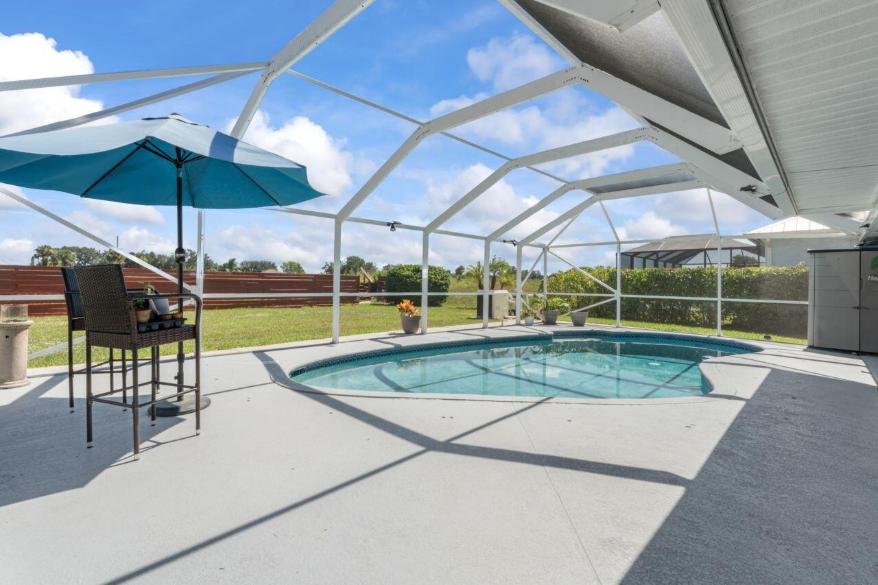 Motivated to Sell! !! PRICE DROP & NEW ROOF INCLUDED !!! Interest rate buydown option. This is the deal you've waited for in Port St. Lucie. 3-bedroom 2-bathroom 2-car garage pool home in quiet location offers peaceful living with convenient access in Port St Lucie, minutes from major highways, schools and pristine beaches, shops, restaurants, and medical in Tradition!! Stunning home C-24 canal frontage. Granite kitchen counters, laminate & tile flooring. Screened patio, in-ground concrete pool with plenty of yard space. Triple sliding doors and a pass-through kitchen window make poolside entertaining easy. 2025 installed pool screens. Accordion shutters, automatic garage door, well-based irrigation system, NO HOA restrictions. All measurements believed accurate but not guaranteed.