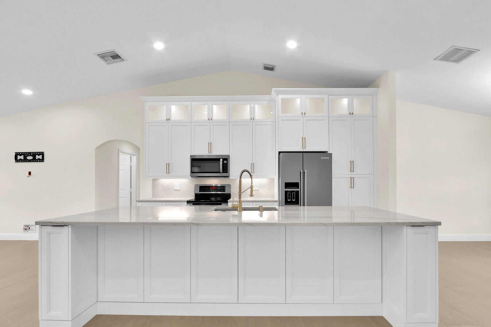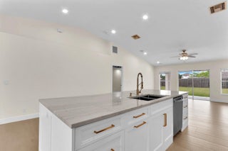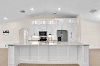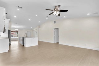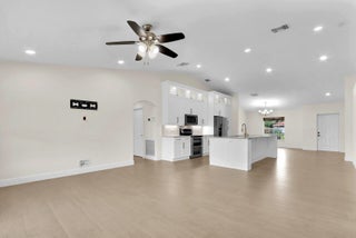 COMPLETELY RENOVATED!! Open/Spacious floor plan. 3 bedrooms plus Guest room / Office / playroom. Gorgeous, HUGE kitchen with an enormous island with tons of storage, quartzite countertops and tile backsplash. White shaker cabinet with over and under cabinet lighting. Modern bathrooms, Wood tile, High hats, and 5-inch baseboards throughout home. Burgler alarm with hardwired security cameras. Expanded driveway and patio deck. Fully fenced in yard for privacy and the ability for generator hookup. AC was replaced in 2023. All sizes are approx.
