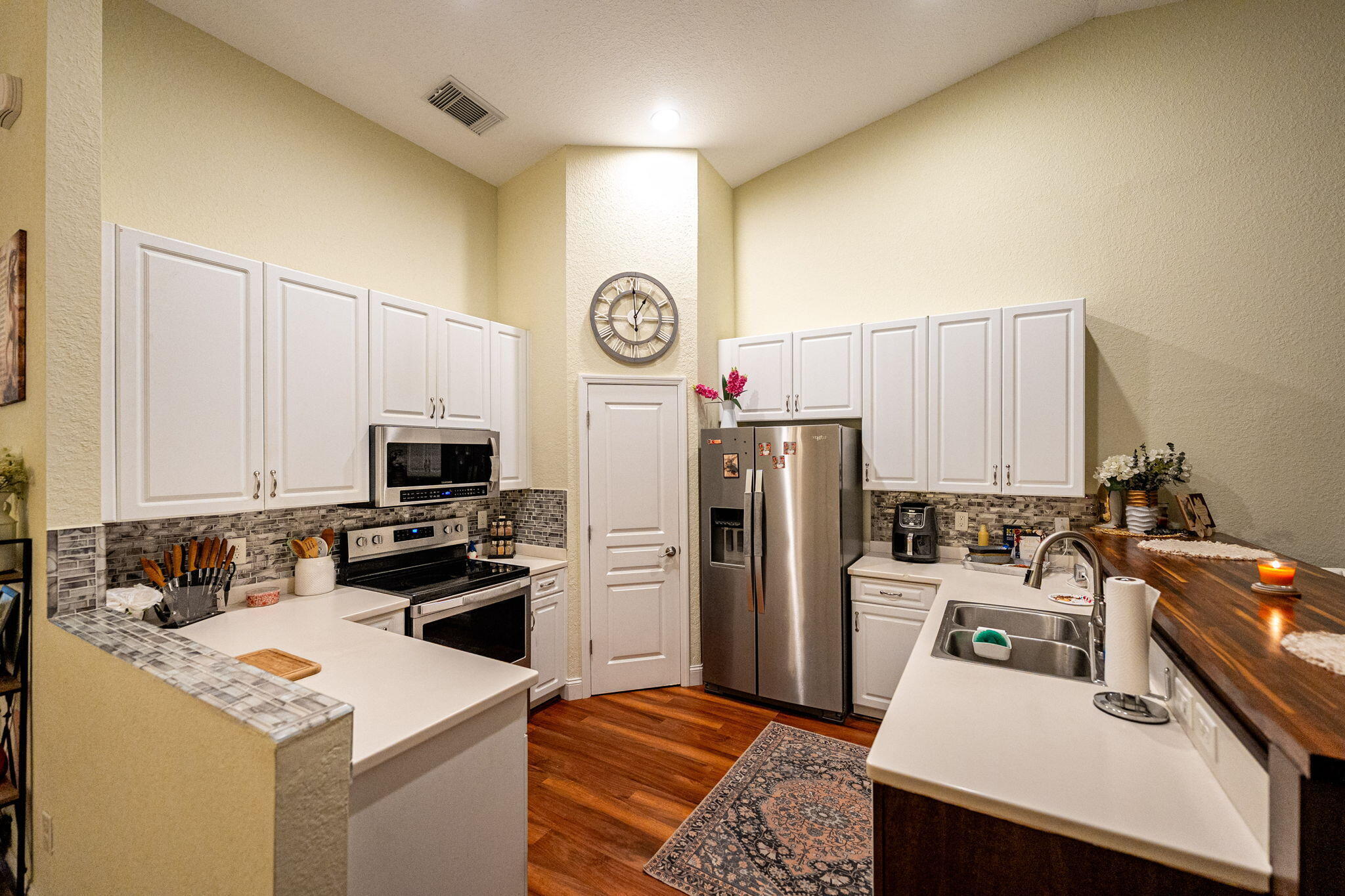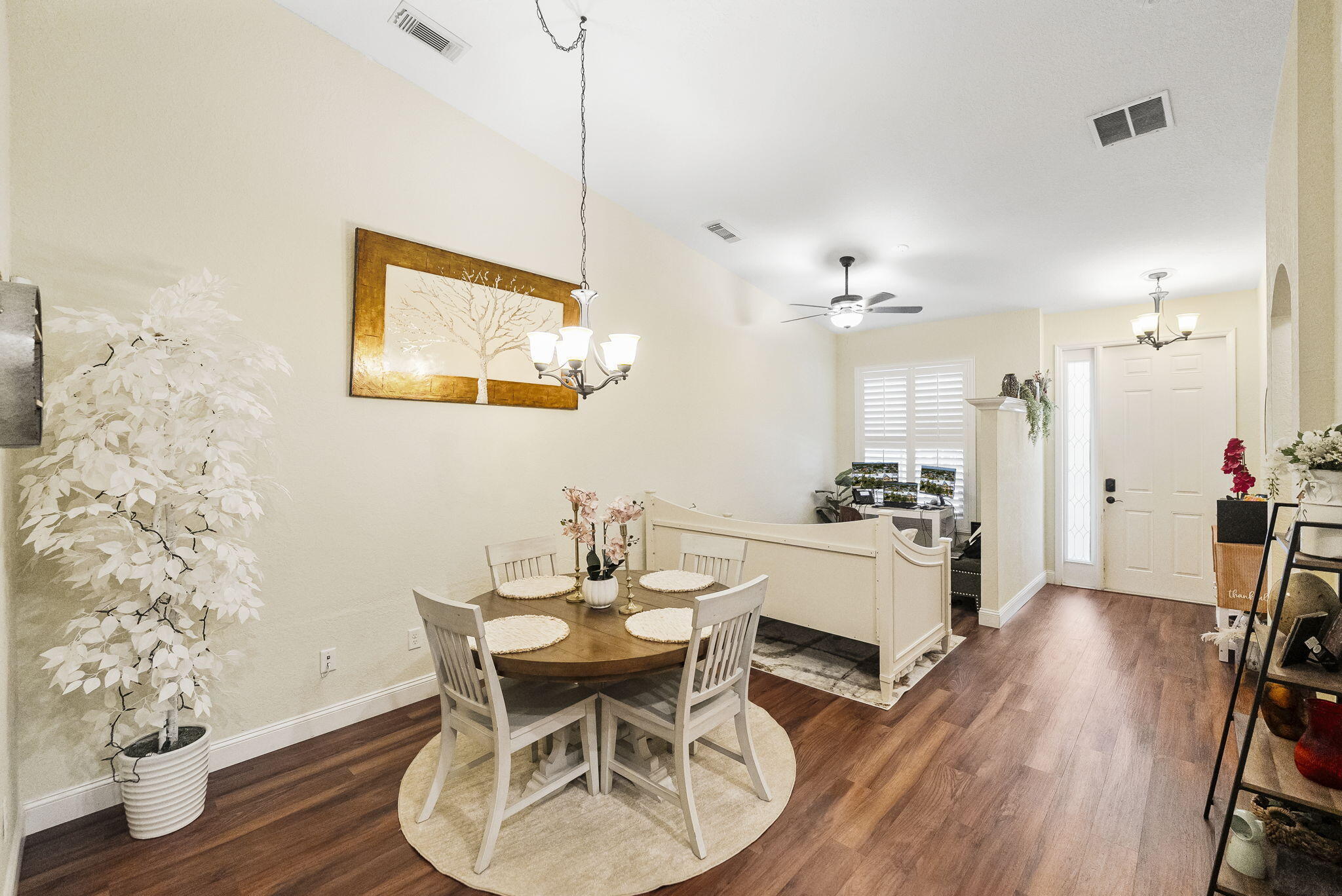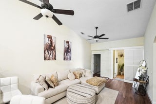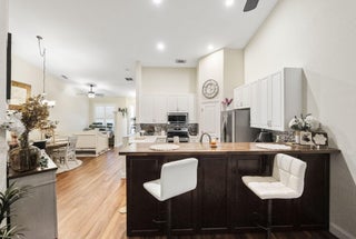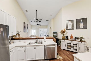 Welcome to a home that perfectly blends comfort, convenience, and style. Located just steps away from a major shopping center, top-rated restaurants, and scenic parks, this residence offers the ultimate in walkable urban living.Step inside to discover soaring vaulted ceilings that flood the space with natural light, creating an open and airy feel throughout. Enjoy peace of mind with impact glass windows, elegant plantation shutters, and updated lighting fixtures. The chef's kitchen is a dream, featuring ample storage, a spacious pantry, and modern appliances (2021) ideal for both everyday cooking and entertaining.Retreat to the generously sized master suite, complete with a walk-in closet and dual vanities for added comfort. Outside, unwind on your charming front porch.