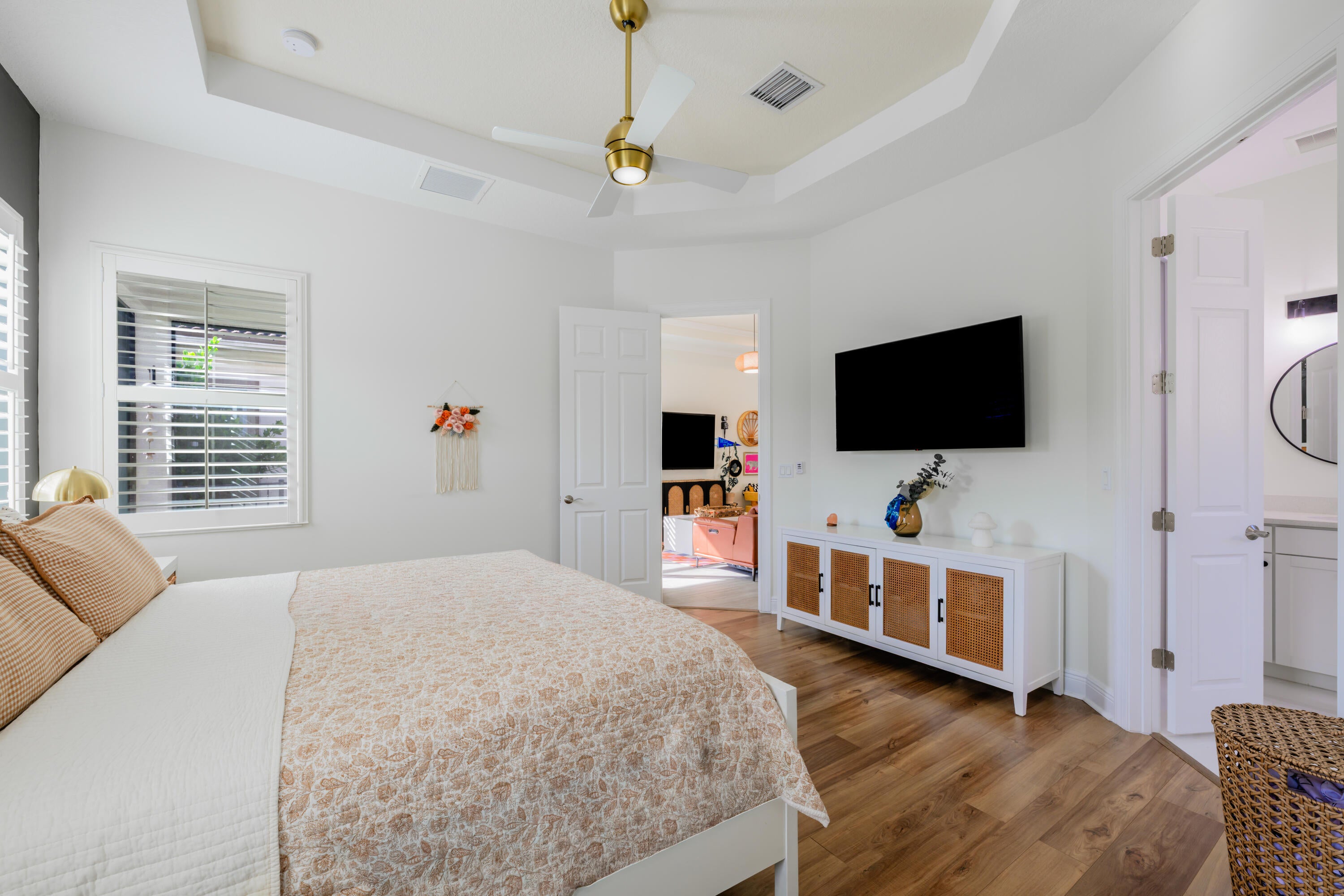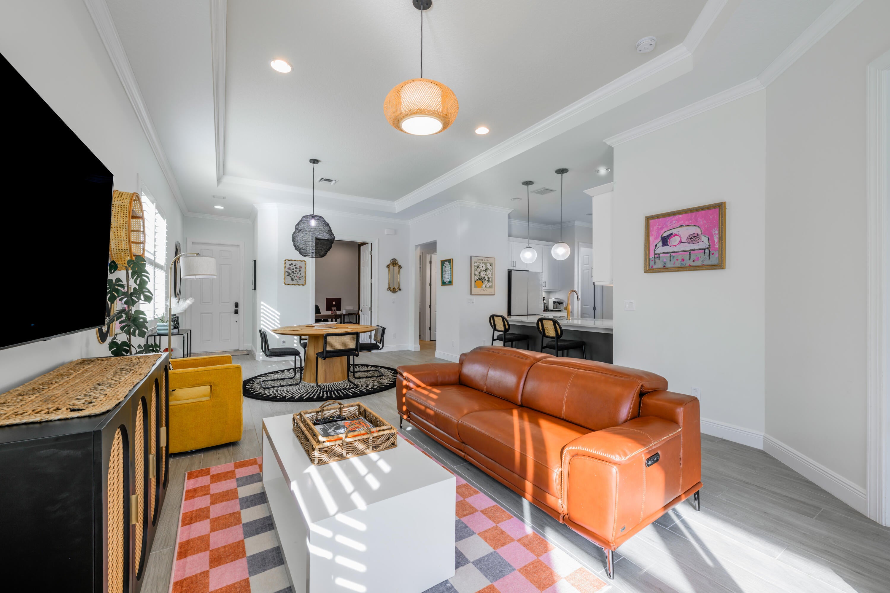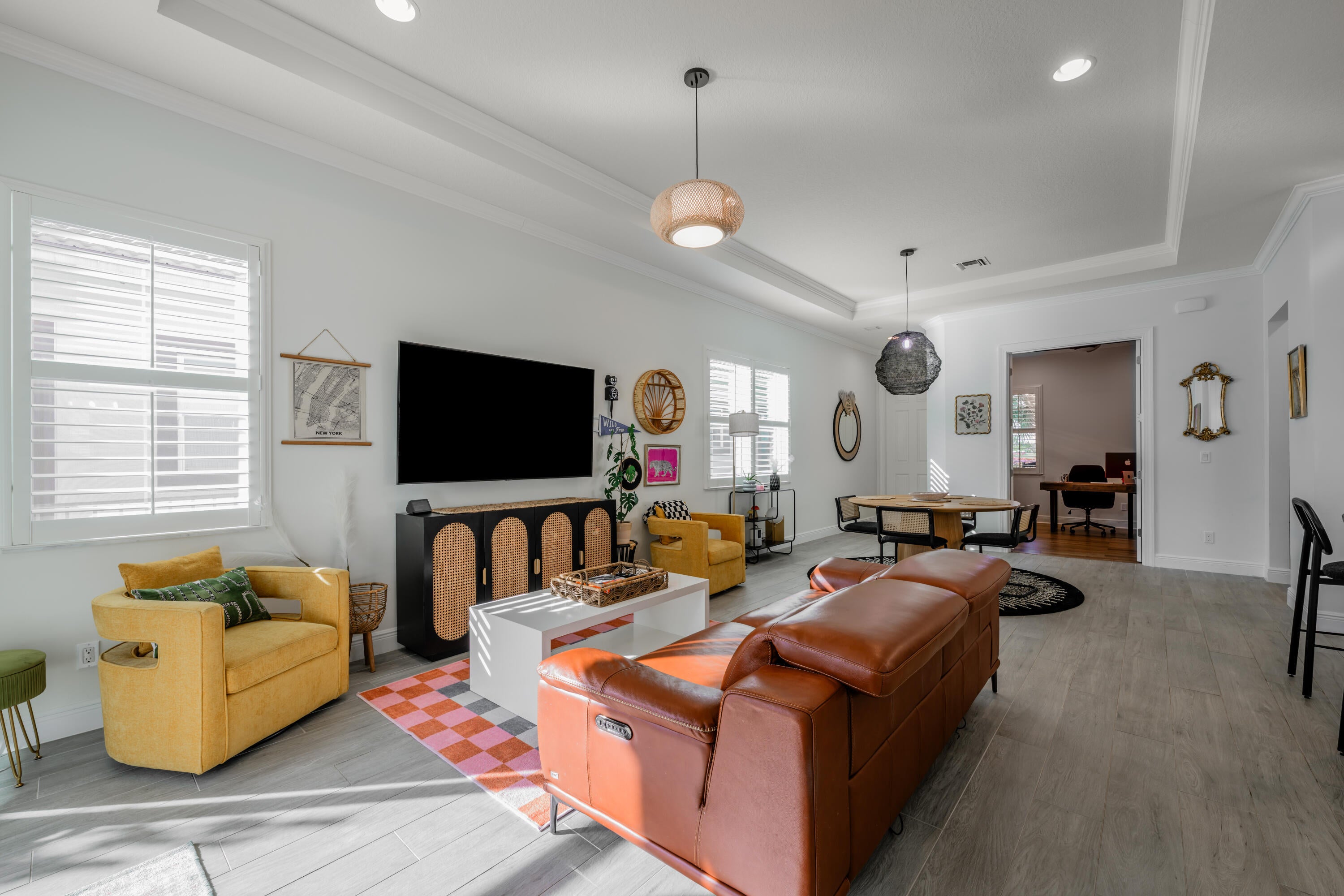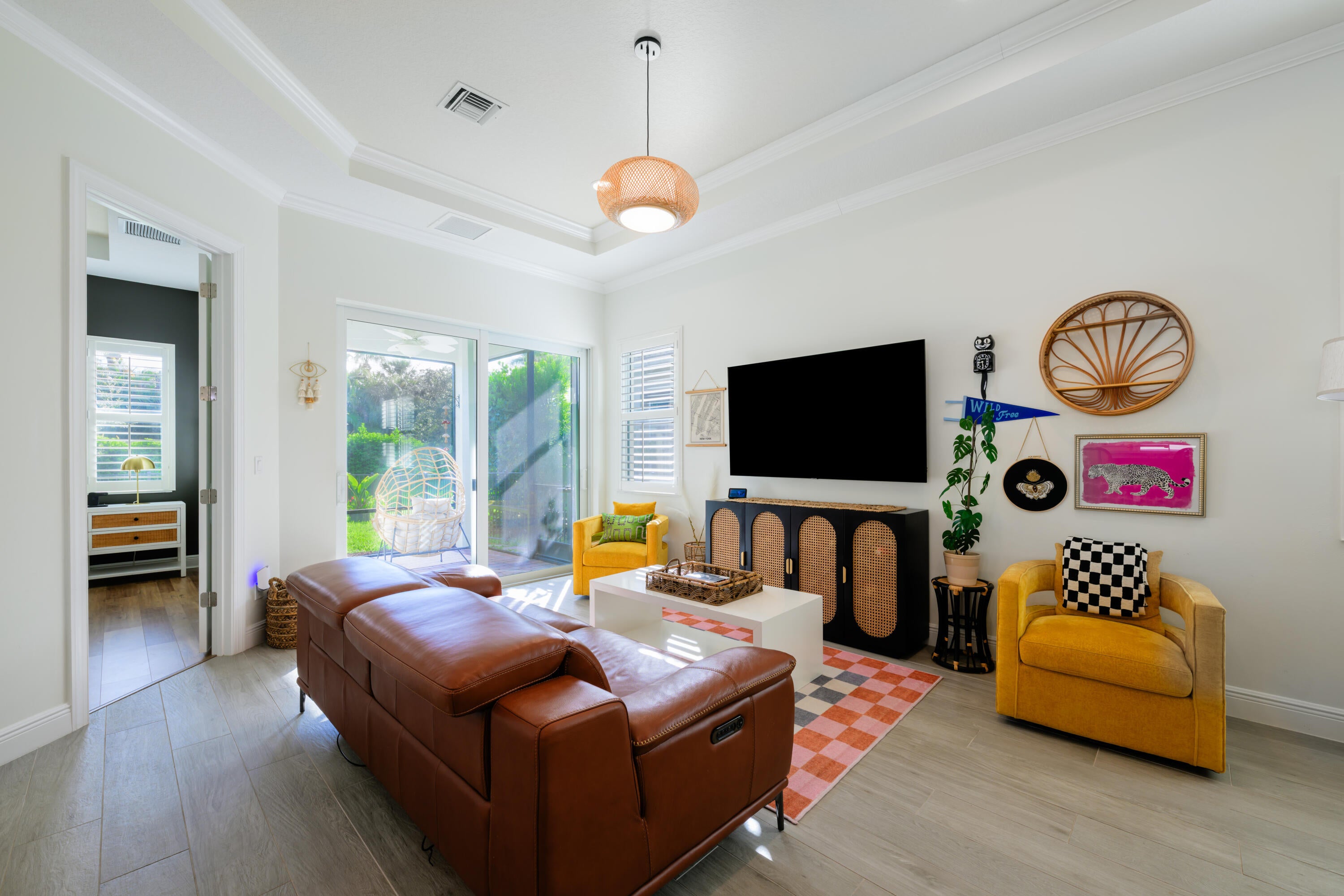 Welcome to 11341 SW Visconti Way, a stunning Arezzo model villa in the prestigious PGA Verano community of Port Saint Lucie. This meticulously maintained 2-bedroom, 2-bathroom home, plus a versatile den, offers 1,515 square feet of elegant living space, built in 2020 with modern finishes and thoughtful design throughout.Step inside to an open and airy floor plan flooded with natural light, featuring 10-foot coffered ceilings, crown molding, custom closets, plantation shutters and hurricane impact-resistant windows for peace of mind. The gourmet kitchen is a chef's dream, boasting white shaker-style cabinets, gleaming quartz countertops, a stylish tile backsplash, pendant lighting, bespoke appliances, and a custom walk in pantry.The split-bedroom layout ensures privacy, with a spacious primary suite including a custom walk-in closet, while the screened lanai provides the perfect spot for outdoor relaxation overlooking the garden view. Home was renovated in 2024 with master and main bathroom fixtures new appliances and vinyl plank flooring in the bedrooms. New light fixtures throughout the house. Nestled on a 6,054-square-foot lot, this single-story ranch-style home includes a 2-car attached garage and is golf cart-friendly, making it easy to explore the neighborhood. Residents enjoy resort-style living in PGA Verano, with access to a state-of-the-art clubhouse, indoor and outdoor pools, tennis and pickleball courts, a fitness center, billiards, shuffleboard, trails, and world-class golf at PGA Village all included in the $580 monthly HOA fee that covers common areas, cable TV, internet, maintenance, and security. Conveniently located near shopping, dining, entertainment, and I-95, this home combines luxury, low-maintenance living, and an unbeatable Florida lifestyle. Don't miss your chance to schedule a showing today!