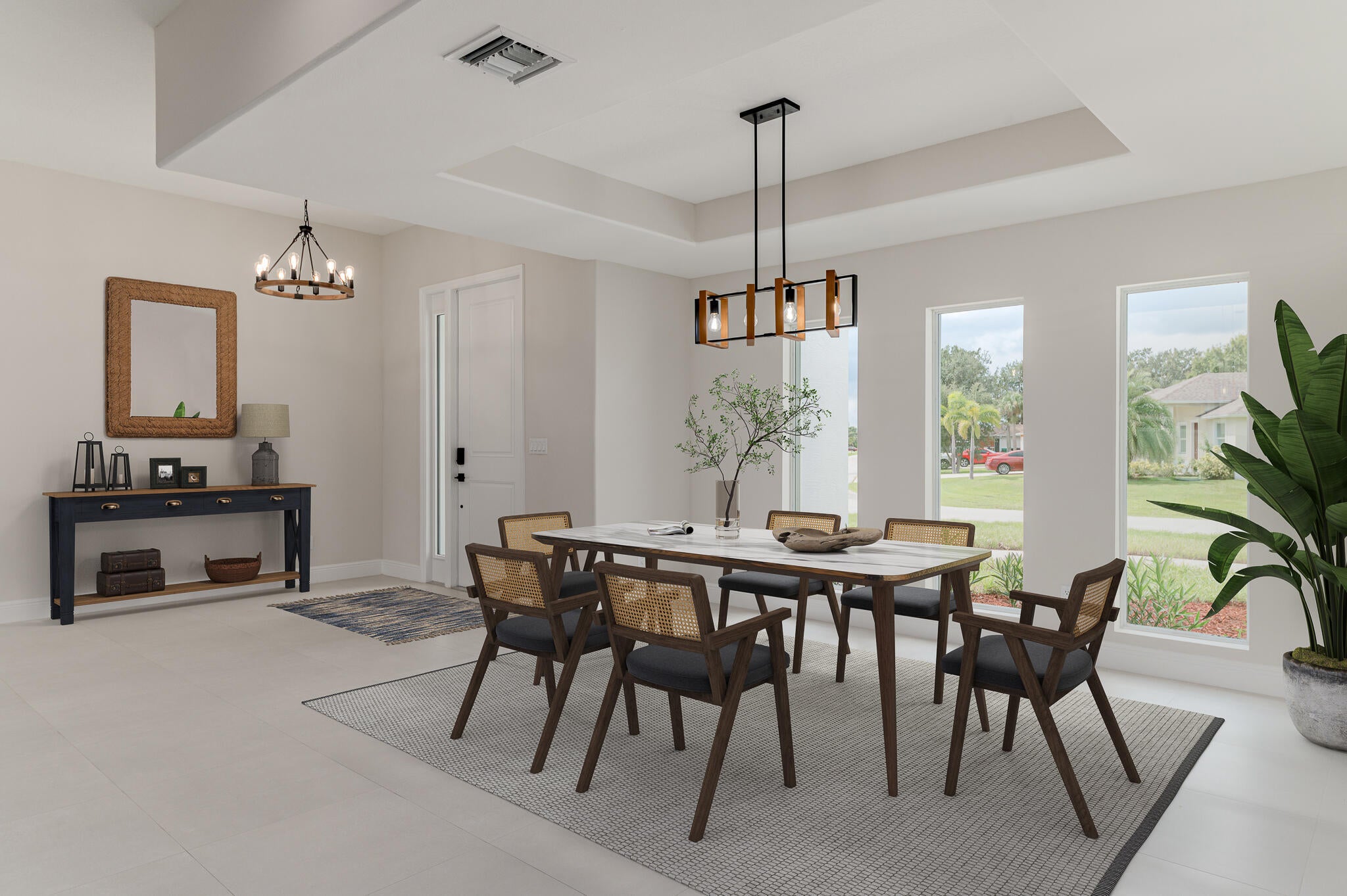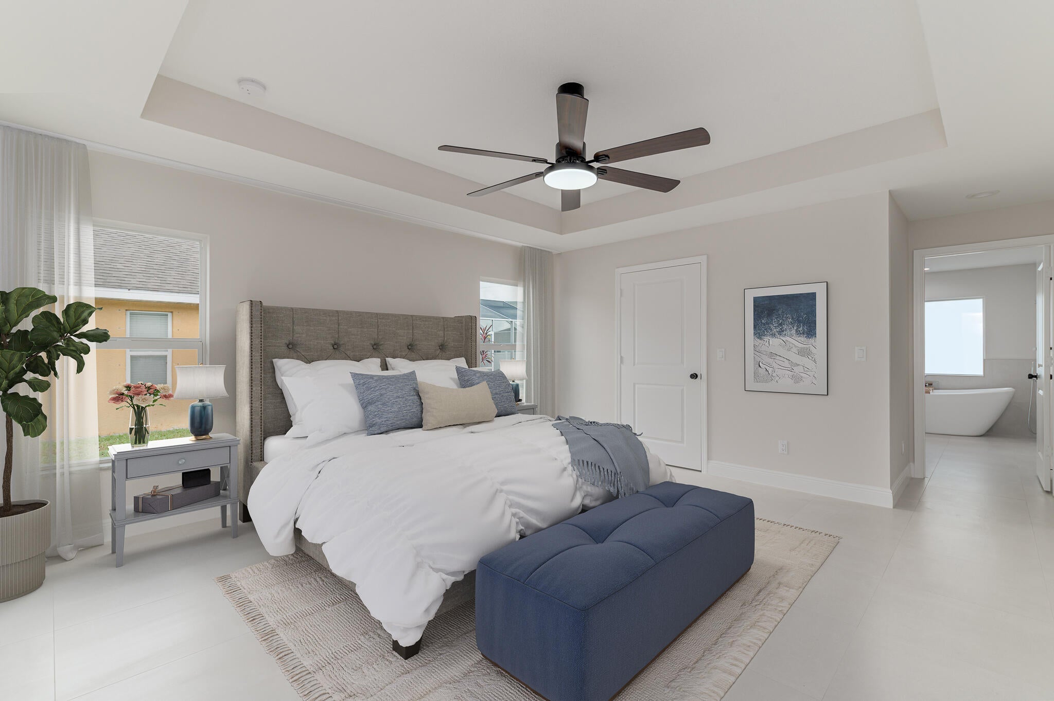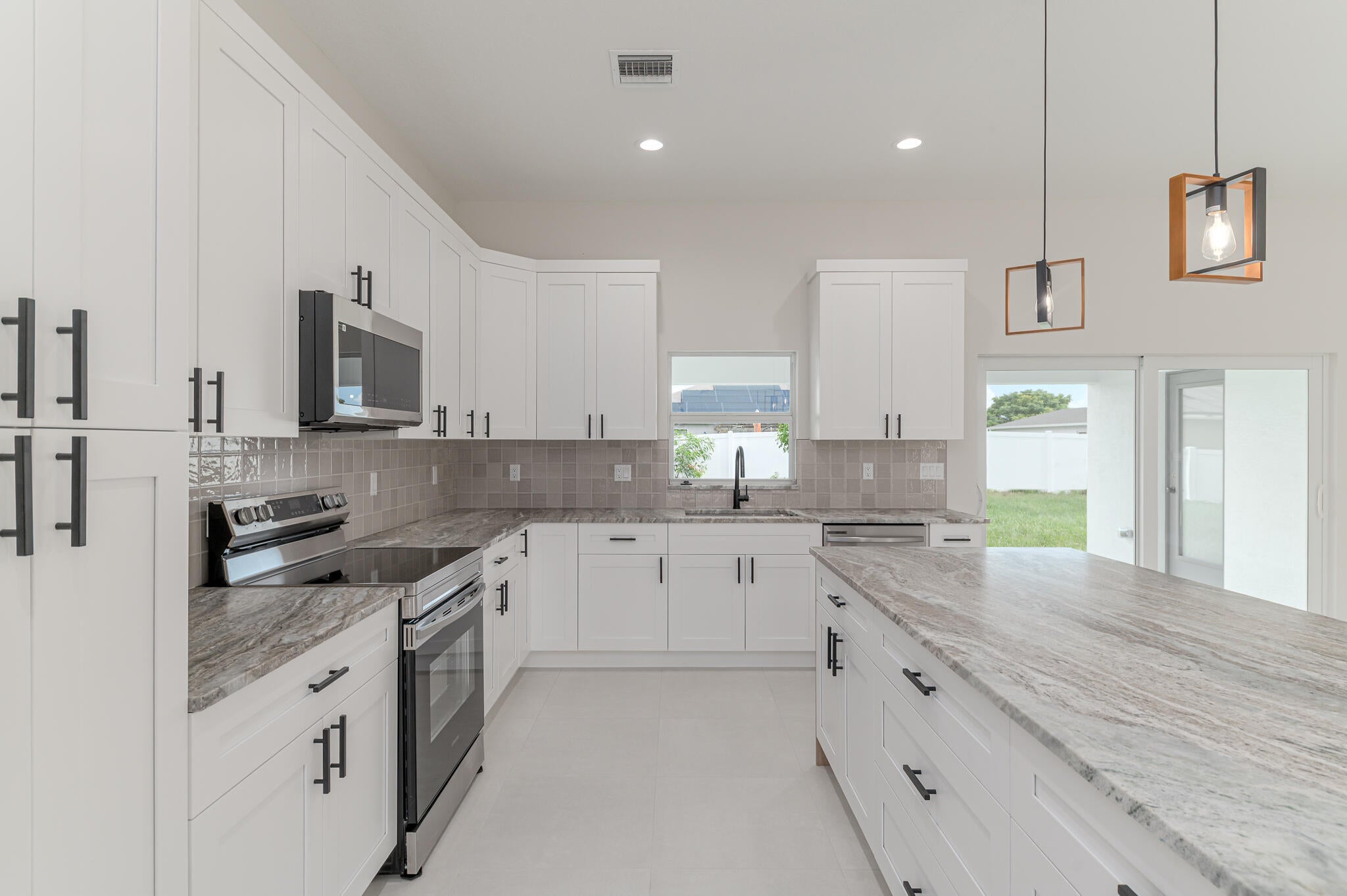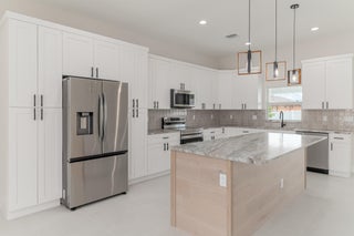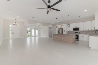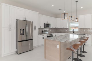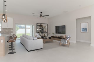 A modern-coastal new build, this 4-bedroom,3-bathroom,2-car garage home was designed with timeless elegance and everyday luxury in mind. Step inside to tray ceilings, wide-open living spaces, & an island kitchen with 42'' shaker cabinetry, warm wood accents, stone countertops, tile backsplash, & premium appliances--the perfect blend of style and function. The owner's suite featuring a spa-inspired bath with a free-standing soaking tub, rainfall shower, dual vanities, and walk-in closet. Enjoy Florida living with a covered lanai & cabana bath access, room to add a pool. Built with impact-rated windows & doors, mold-resistant walls, concrete block construction, & energy-efficient systems, this home offers luxury and peace of mind. Located on a quiet street, minutes from Crosstown Parkway,shopping, dining- convenience without sacrificing tranquility. Every detail is chosen for comfort, quality, and modern design -an elevated coastal home that stands out from ordinary new construction