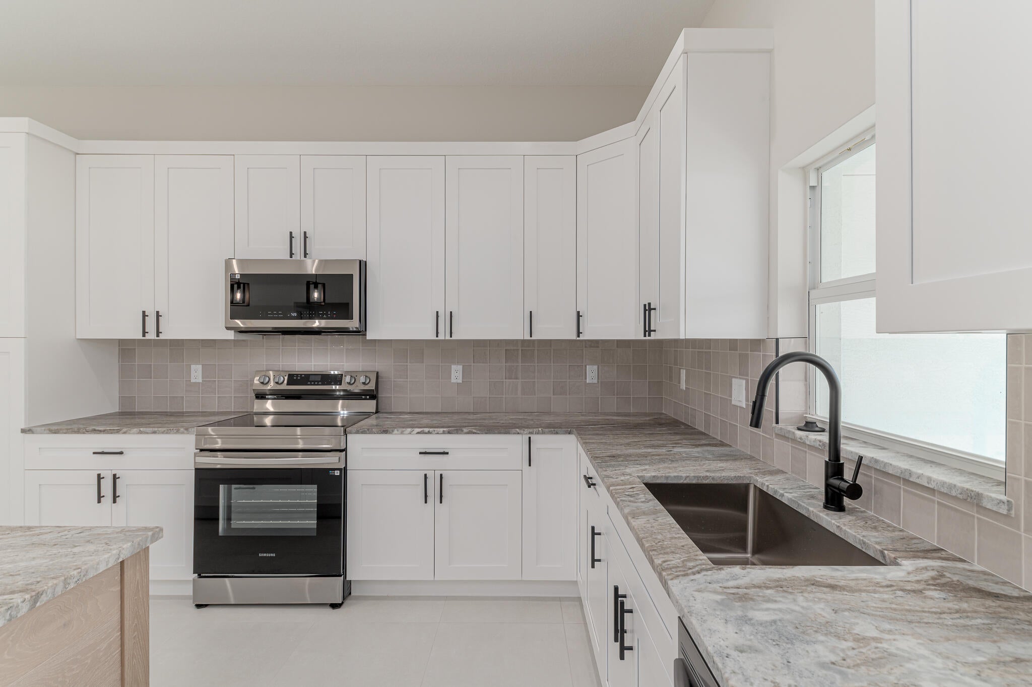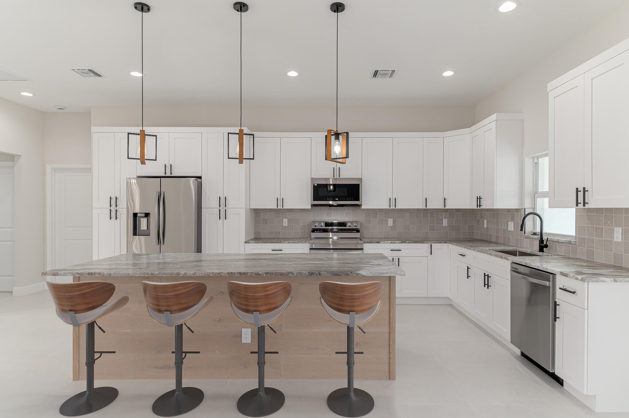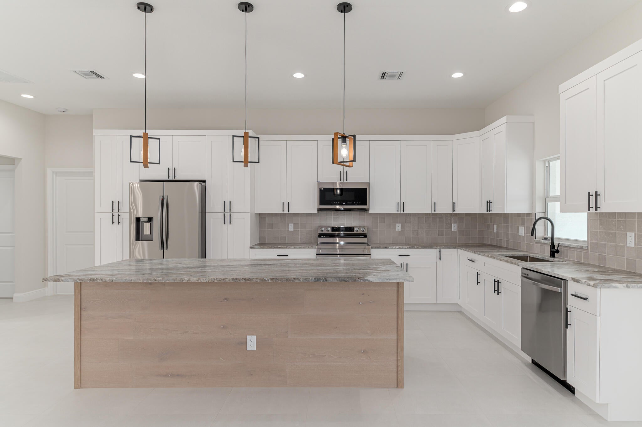 A modern-coastal new build, this 4-bedroom,3-bathroom,2-car garage home was designed with timeless elegance and everyday luxury in mind. Step inside to tray ceilings, wide-open living spaces, & an island kitchen with 42'' shaker cabinetry, warm wood accents, stone countertops, tile backsplash, & premium appliances--the perfect blend of style and function. The owner's suite featuring a spa-inspired bath with a free-standing soaking tub, rainfall shower, dual vanities, and walk-in closet. Enjoy Florida living with a covered lanai & cabana bath access, room to add a pool. Built with impact-rated windows & doors, mold-resistant walls, concrete block construction, & energy-efficient systems, this home offers luxury and peace of mind. Located on a quiet street, minutes from Crosstown Parkway,shopping, dining- convenience without sacrificing tranquility. Every detail is chosen for comfort, quality, and modern design -an elevated coastal home that stands out from ordinary new construction