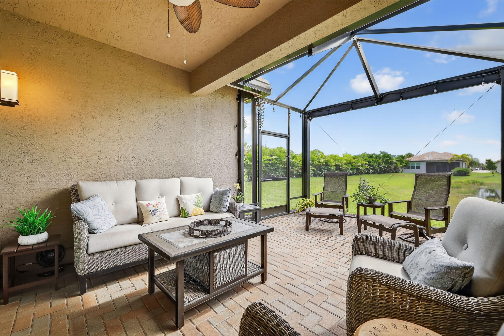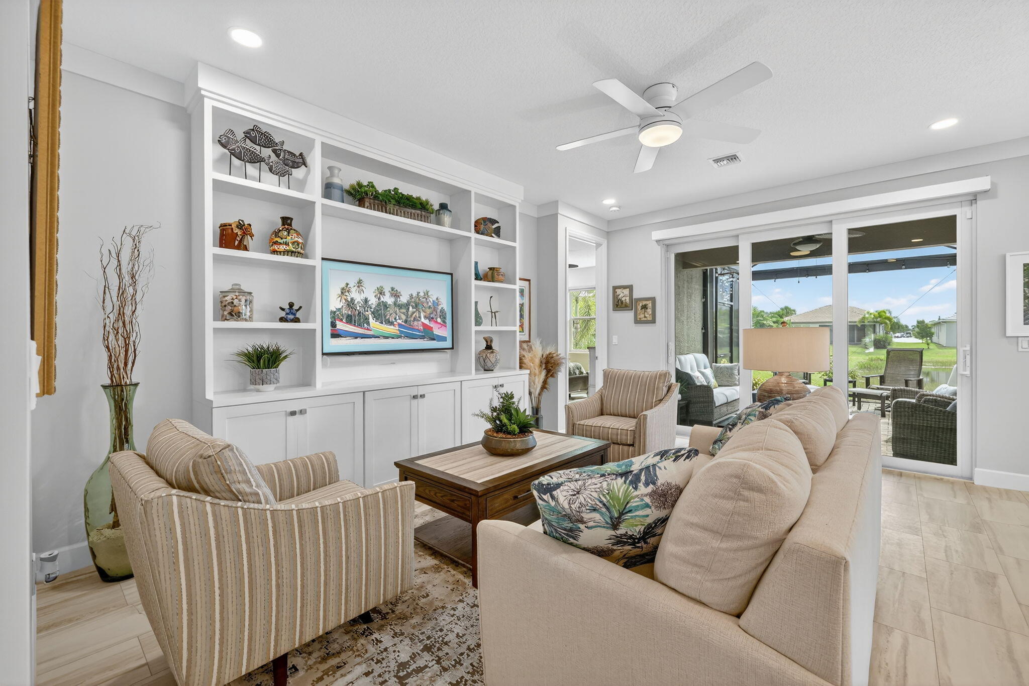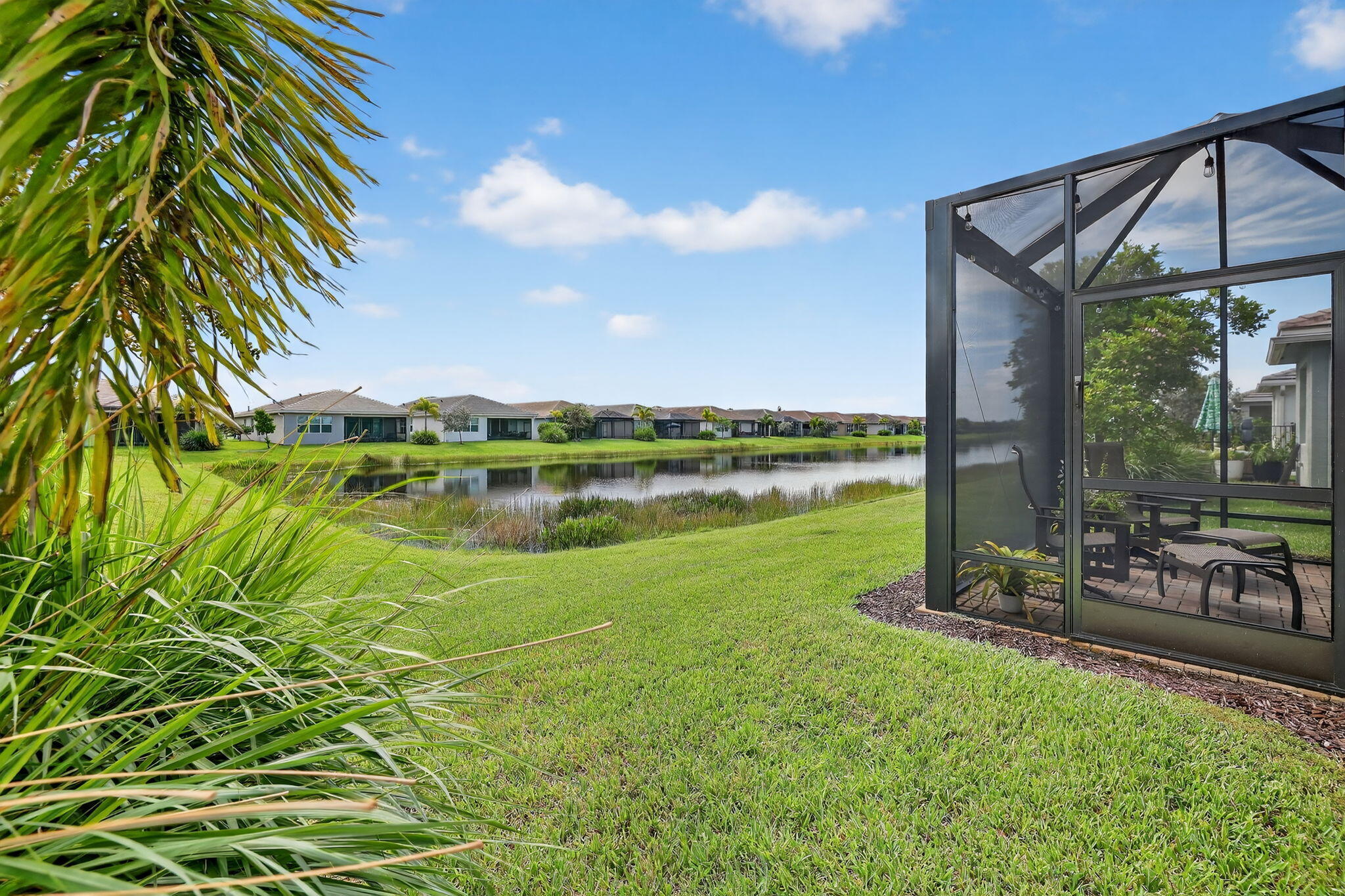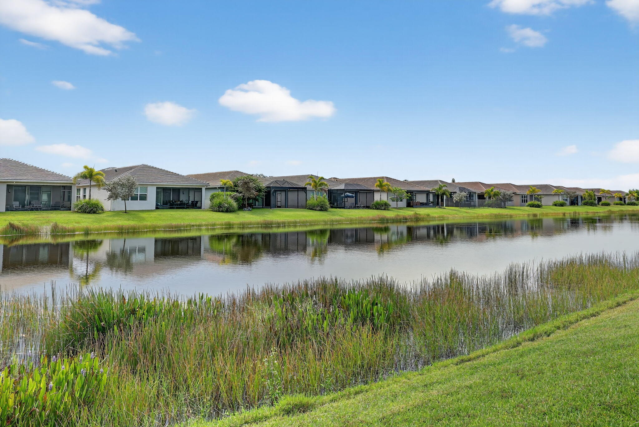 Beautifully Upgraded Ibis Model - Waterfront - $75K+ in EnhancementsDiscover this stunning Ibis model with 2 bedrooms plus den (or 3rd bedroom) and 1,599 SF under air in GL Homes' highly desirable 55+ community of Valencia Grove at Riverland. Lightly lived in and loaded with over $75,000 in thoughtful upgrades, this home offers the perfect blend of modern elegance, comfort, and functionality.The totally remodeled kitchen features upgraded appliances, a vented microwave, and a lazy Susan, while luxury vinyl flooring flows through the main living areas and den, complemented by upgraded carpet in the bedrooms. Enjoy custom lighting, crown molding in the main living areas, built-in wall units in the great room and den, and pocket doors for added style. The primary suite boasts a truerimless shower door, and the guest bath includes a stylish banjo countertop. The laundry room offers upgraded appliances, cabinets, and a sink. The garage impresses with an epoxy-coated floor, built-in cabinets, insulated door, and painted walls. A whole-home Carico Water System ensures premium water quality throughout. Outdoor living shines with an extended, birdcage-screened lanai that is east facingperfect for peaceful morning coffee and relaxing in the shade each eveningwhile overlooking a serene waterfront lot. Additional upgrades include widened driveway and entry pavers, whole-home gutters, five ceiling fans, and a tankless water heater. Ideally located near Tradition's shopping and dining, Cleveland Clinic Hospital, and Mets spring training, this home offers a beautifully upgraded lifestyle in a vibrant, amenity-rich community.