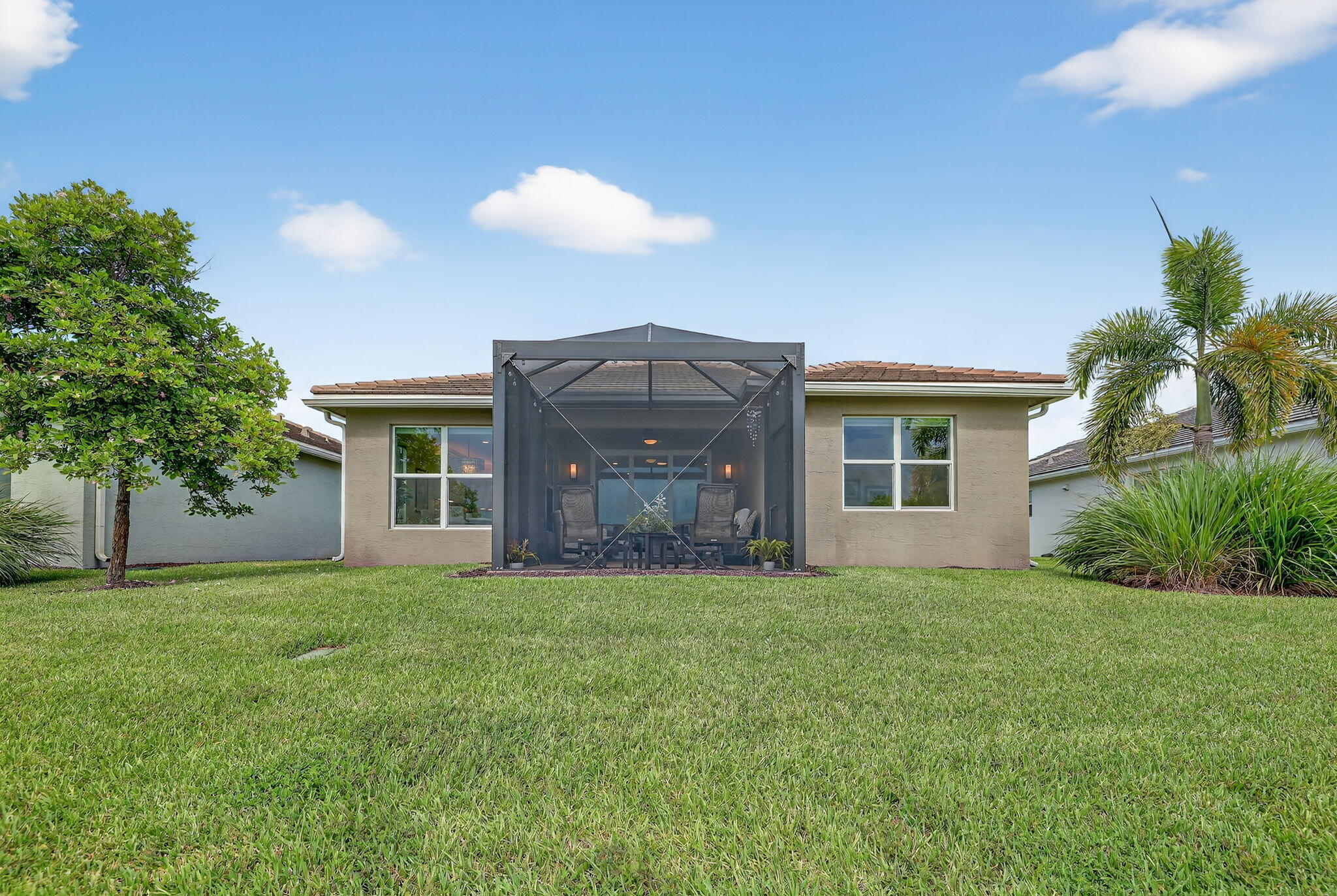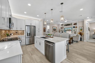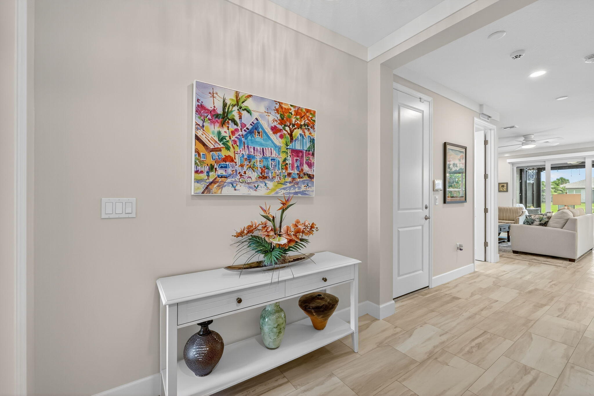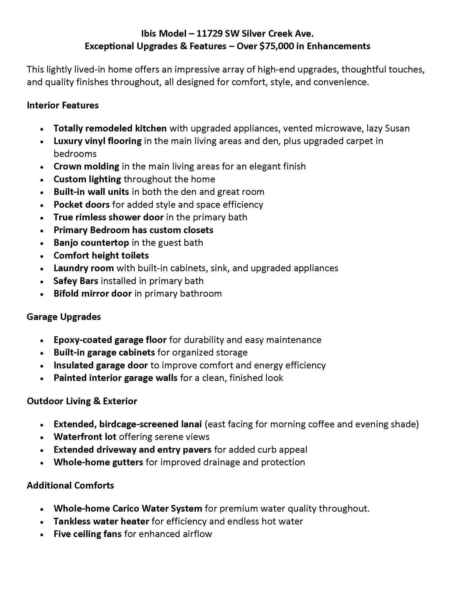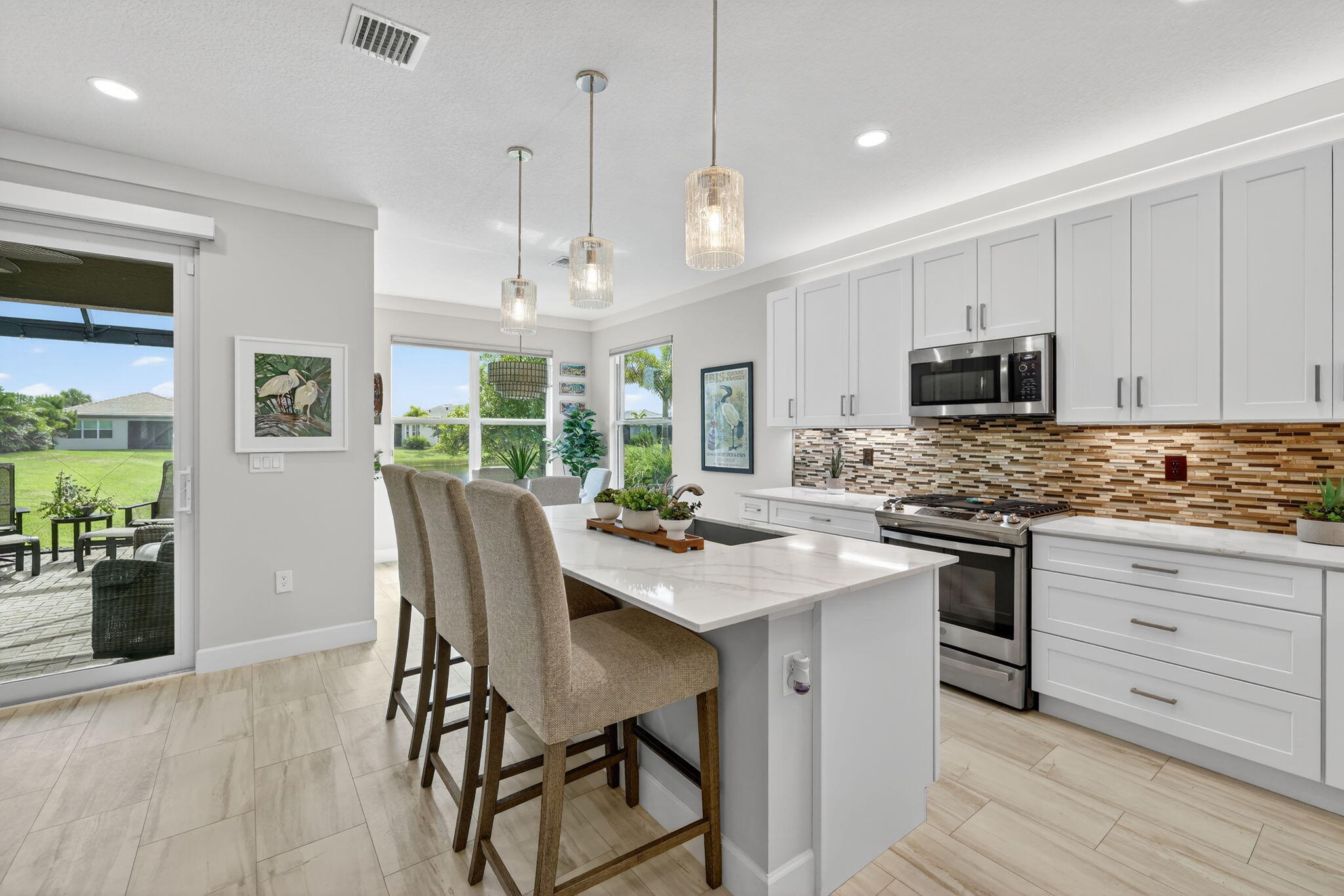 Beautifully Upgraded Ibis Model - Waterfront - $75K+ in EnhancementsDiscover this stunning Ibis model with 2 bedrooms plus den (or 3rd bedroom) and 1,599 SF under air in GL Homes' highly desirable 55+ community of Valencia Grove at Riverland. Lightly lived in and loaded with over $75,000 in thoughtful upgrades, this home offers the perfect blend of modern elegance, comfort, and functionality.The totally remodeled kitchen features upgraded appliances, a vented microwave, and a lazy Susan, while luxury vinyl flooring flows through the main living areas and den, complemented by upgraded carpet in the bedrooms. Enjoy custom lighting, crown molding in the main living areas, built-in wall units in the great room and den, and pocket doors for added style. The primary suite boasts a truerimless shower door, and the guest bath includes a stylish banjo countertop. The laundry room offers upgraded appliances, cabinets, and a sink. The garage impresses with an epoxy-coated floor, built-in cabinets, insulated door, and painted walls. A whole-home Carico Water System ensures premium water quality throughout. Outdoor living shines with an extended, birdcage-screened lanai that is east facingperfect for peaceful morning coffee and relaxing in the shade each eveningwhile overlooking a serene waterfront lot. Additional upgrades include widened driveway and entry pavers, whole-home gutters, five ceiling fans, and a tankless water heater. Ideally located near Tradition's shopping and dining, Cleveland Clinic Hospital, and Mets spring training, this home offers a beautifully upgraded lifestyle in a vibrant, amenity-rich community.