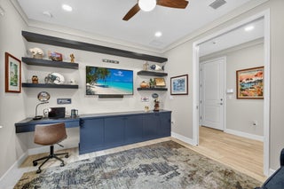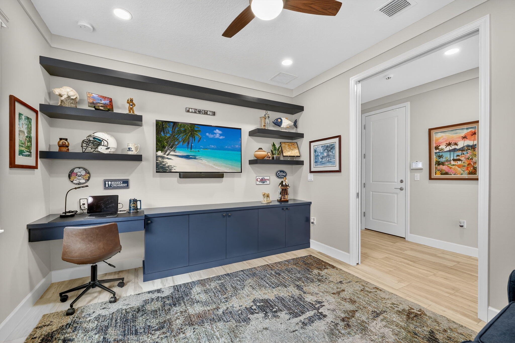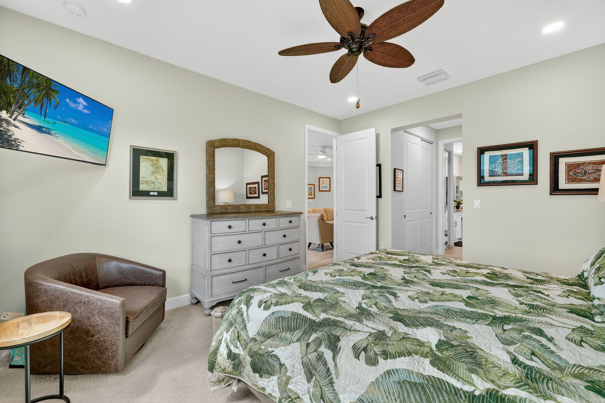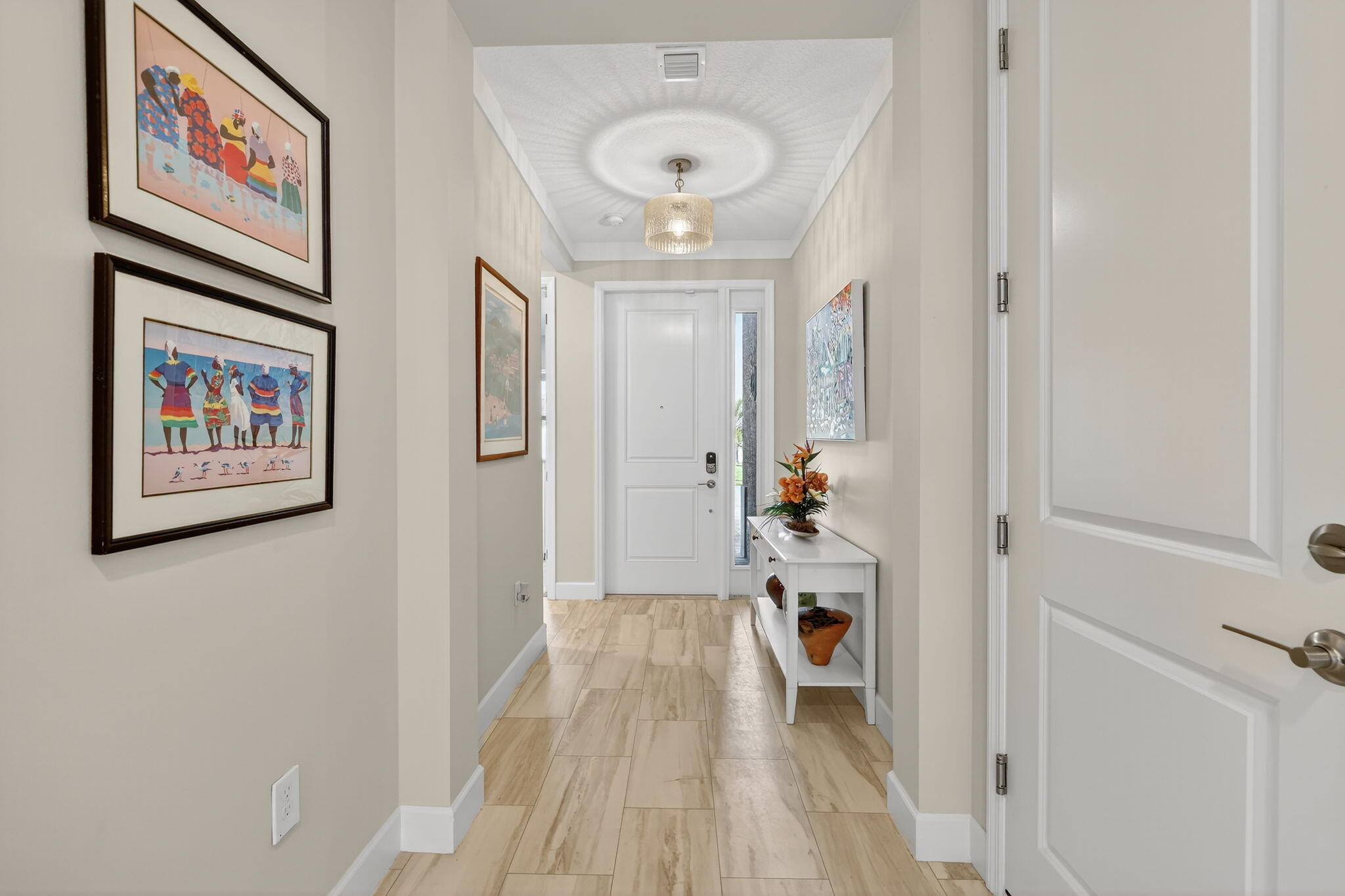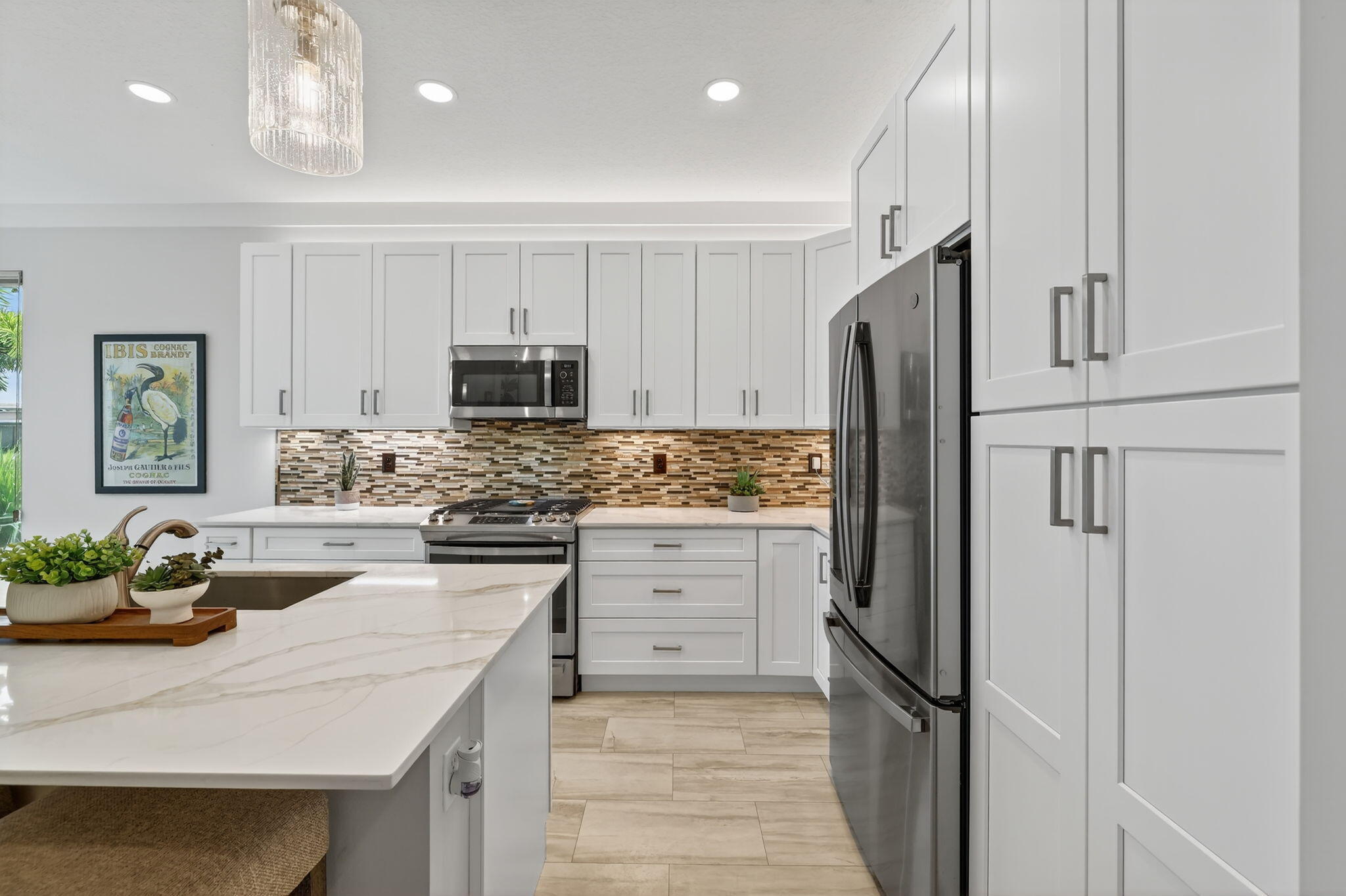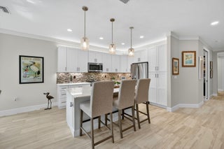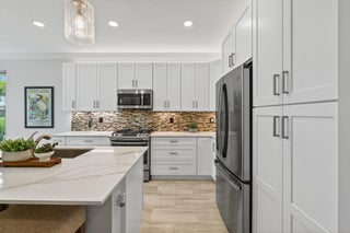 Beautifully Upgraded Ibis Model - Waterfront - $75K+ in EnhancementsDiscover this stunning Ibis model with 2 bedrooms plus den (or 3rd bedroom) and 1,599 SF under air in GL Homes' highly desirable 55+ community of Valencia Grove at Riverland. Lightly lived in and loaded with over $75,000 in thoughtful upgrades, this home offers the perfect blend of modern elegance, comfort, and functionality.The totally remodeled kitchen features upgraded appliances, a vented microwave, and a lazy Susan, while luxury vinyl flooring flows through the main living areas and den, complemented by upgraded carpet in the bedrooms. Enjoy custom lighting, crown molding in the main living areas, built-in wall units in the great room and den, and pocket doors for added style. The primary suite boasts a truerimless shower door, and the guest bath includes a stylish banjo countertop. The laundry room offers upgraded appliances, cabinets, and a sink. The garage impresses with an epoxy-coated floor, built-in cabinets, insulated door, and painted walls. A whole-home Carico Water System ensures premium water quality throughout. Outdoor living shines with an extended, birdcage-screened lanai that is east facingperfect for peaceful morning coffee and relaxing in the shade each eveningwhile overlooking a serene waterfront lot. Additional upgrades include widened driveway and entry pavers, whole-home gutters, five ceiling fans, and a tankless water heater. Ideally located near Tradition's shopping and dining, Cleveland Clinic Hospital, and Mets spring training, this home offers a beautifully upgraded lifestyle in a vibrant, amenity-rich community.