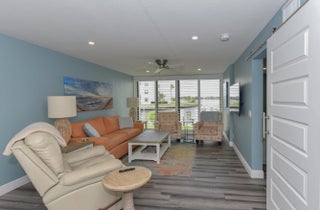 HUGE PRICE REDUCTION OF $30,000!!! Beautiful main floor unit with river and dock view. Remodeled and ready to move into. All new custom cabinets, appliances and countertops.Remodeled bathrooms and full-sized washer and dryer in the unit. Bamboo flooring & tile and plantation shutters on all the windows. New hurricane proof sliding doors and master bedroom window.Covered end parking space.Furniture is negotiable. Come take a look and you'll want to make it yours!