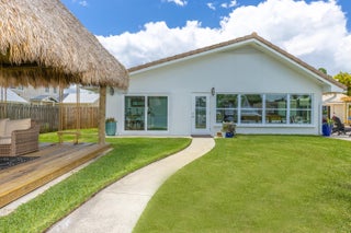 WATERFRONT OCEAN ACCESS & SALTWATER POOL W/ PRIVATE DOCK AND TIKI HUT. Positioned at the St. Lucie River, this beautifully remodeled home is complemented with a modern coastal decor and is fully equipped and furnished for your stay. Whether you're an avid boater or just looking for a gorgeous spot to relax, you're sure to find yourself sunbathing by the crystal clear pool that overlooks a private dock where you can tie up or fish for a variety of species. The dock is equipped with a cleaning station, electric, & water for your watercraft. Relax & swing under the large private Tiki Hut while watching your favorite show & eating your favorite meal fresh off the grill. Currently accepting next season offers Monthly Rates: Off-Season: $8500; Mid-Season:$12K; Season: $16K.(taxes&fees apply)