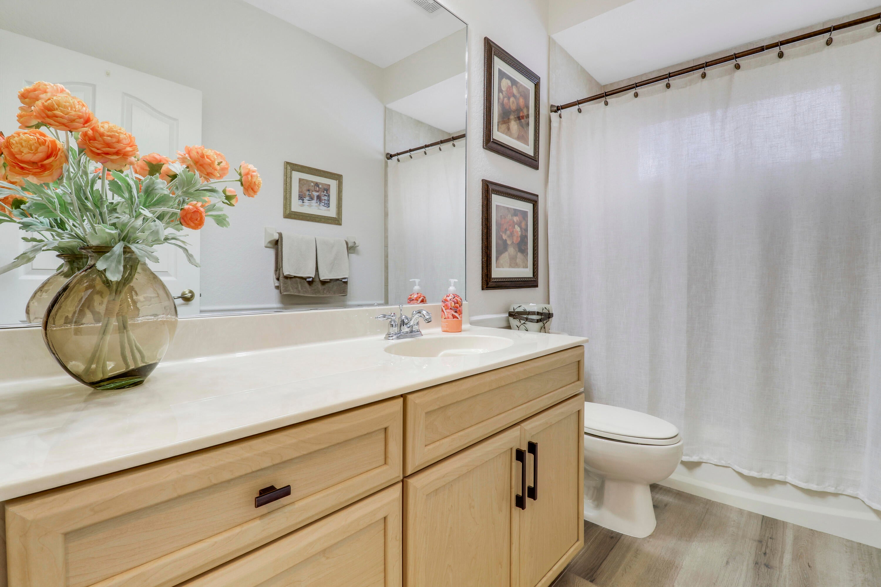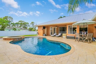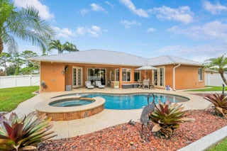 A beautiful home at a great value! Original owner. Split bedrooms, formal dining and an eat in kitchen. Perfect mix of open concept, but not ''too open'' Great sightlines from the kitchen to the family room and the pool with enough room to have a quiet place.Spotless and very well maintained, truly turnkey.Vinyl fence for privacy and keeps the kids and pets in your sight and safe.Newer metal roof, new wood-look tile flooring except 3rd bedroom, plenty of tile in the garage to do it, or keep the new high traffic carpet. Primary has dual sinks and vanities, whole house water filtration, full storm protection, generator hook up, New Smart heat pump WH, built in storage in garage, epoxy flooring in garage and driveway! East of 95 tween Becker and Gatlin. NO HOA. What's not to love?Forgot to mention the chainless garage door opener and the Huge family room with volume ceilings. Really a nice home. Come have a look asap.