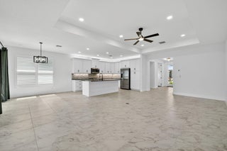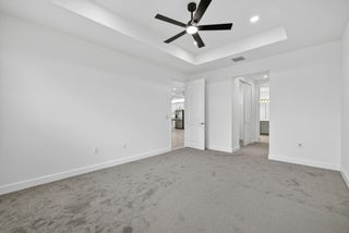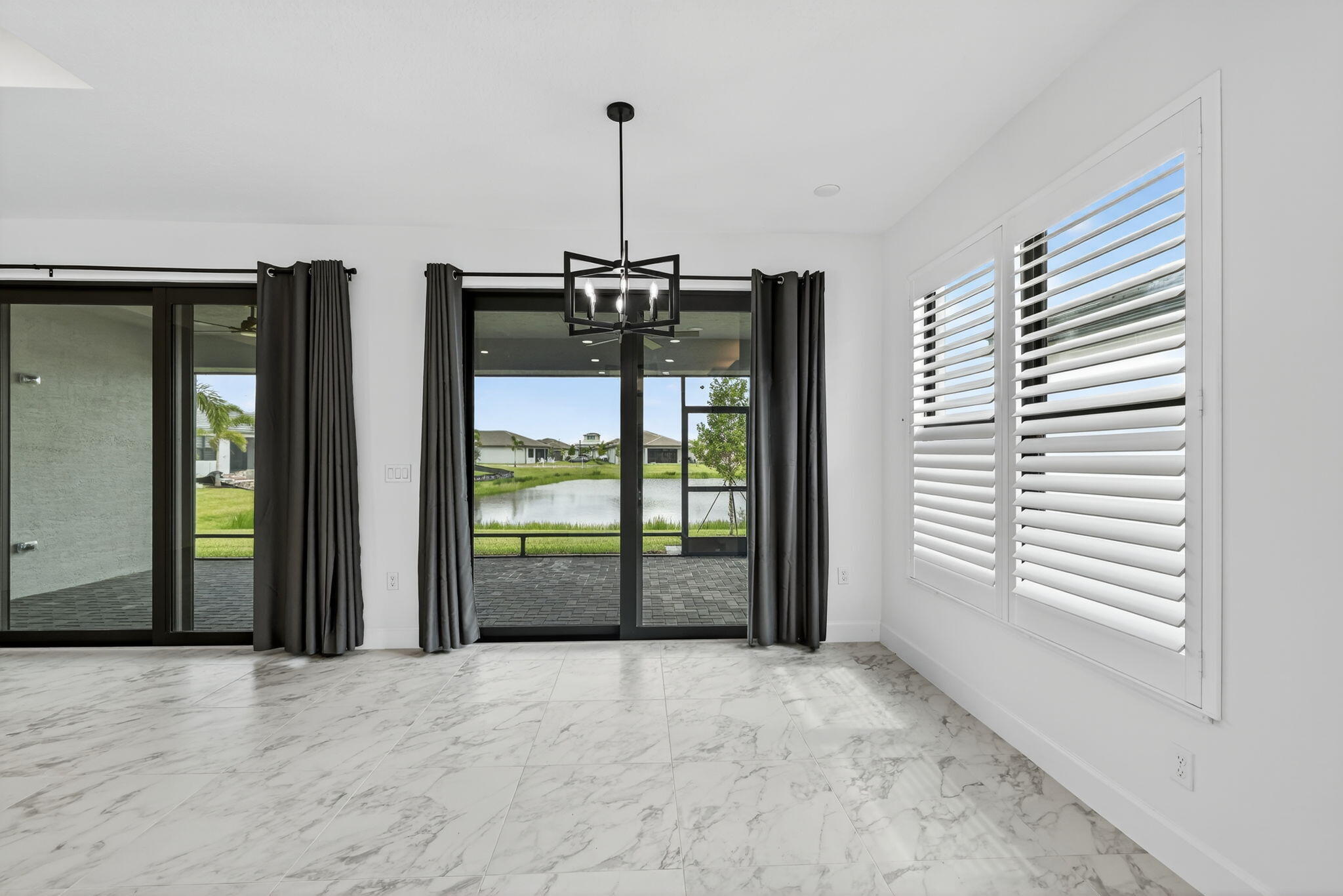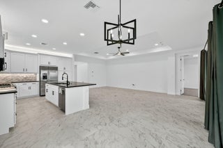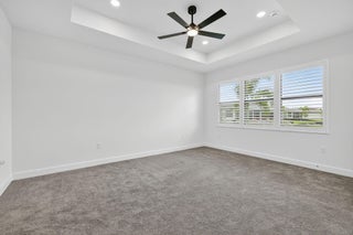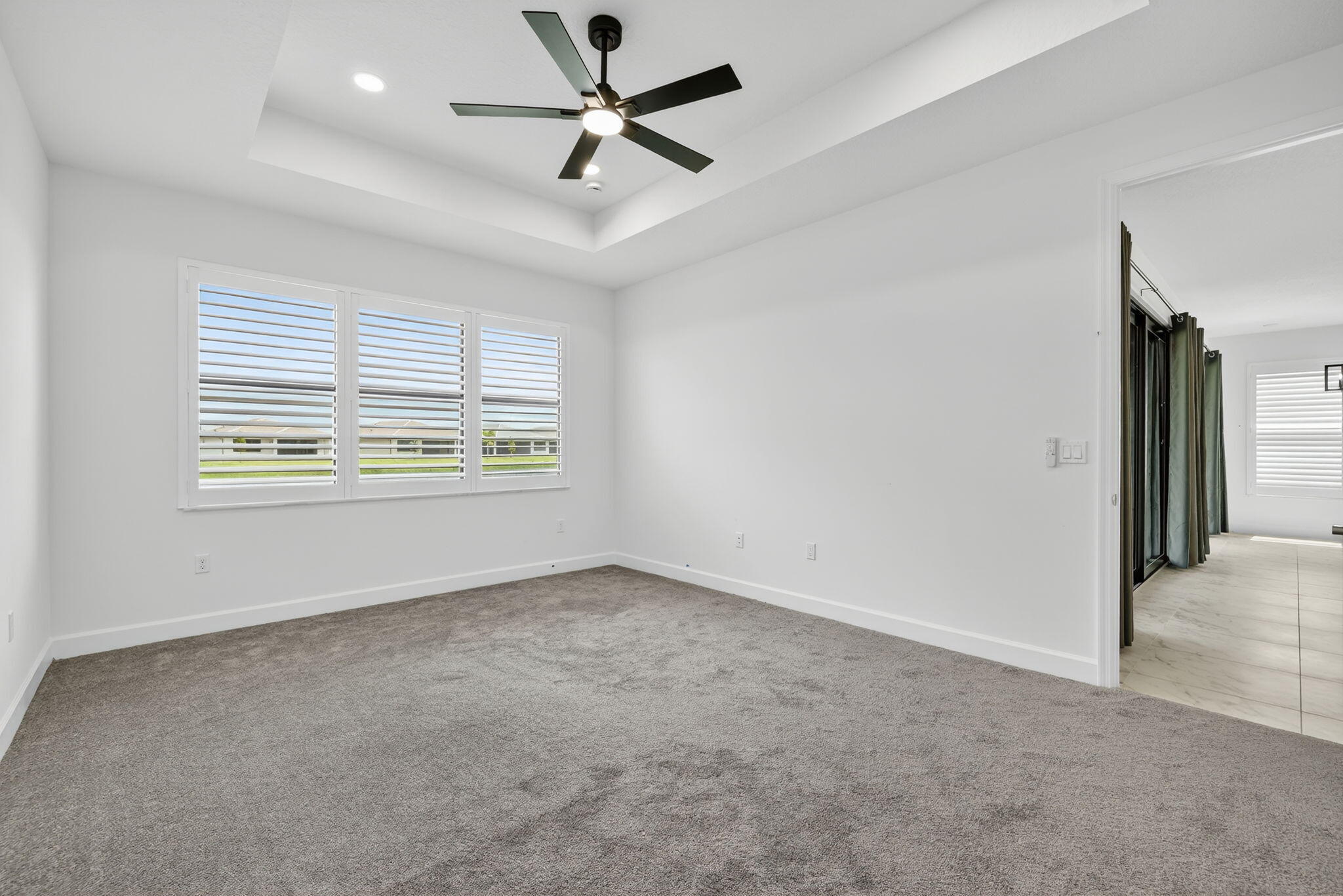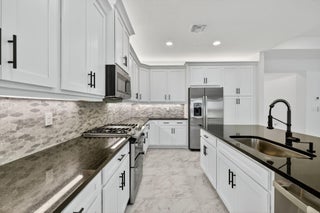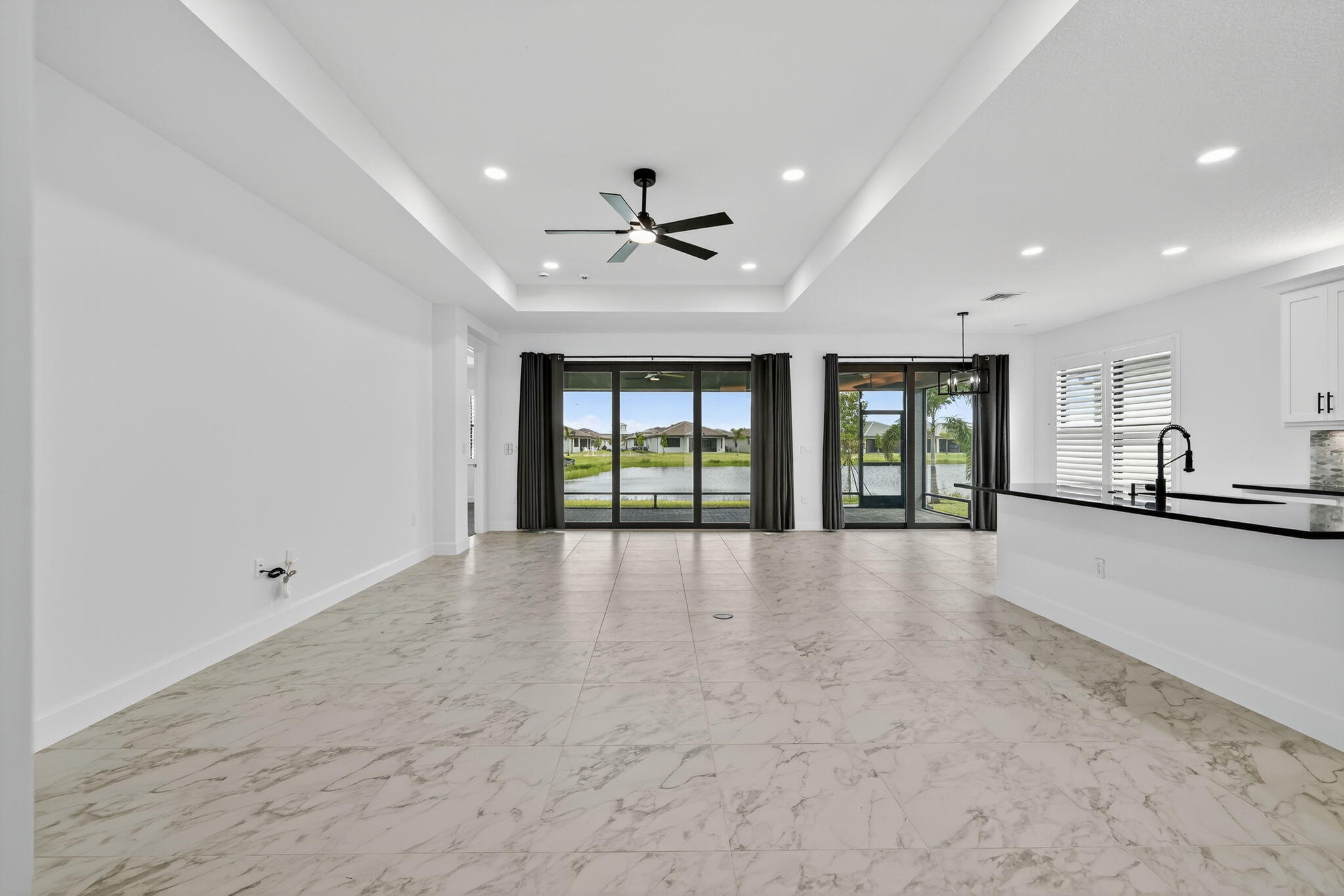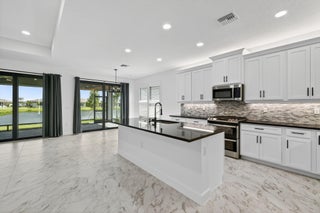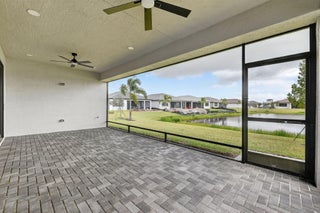 NEW FOR RENT - - Available now! Step into this brand-new, never-lived-in waterfront Palazzo model in GL Homes' newest 55+ community, Valencia Parc. Designed for both comfort and elegance, this residence offers three spacious bedrooms plus a versatile den, two and a half bathrooms, and the convenience of a golf cart garage. From the moment you enter, tray ceilings in the foyer, main living area, and primary suite set an elevated tone. The bedrooms and den feature soft, dark gray carpeting, while the main living spaces are enhanced with thoughtful details, including a living room floor outlet perfectly positioned for a recliner or sofa. The kitchen is a true highlight, boasting white soft-close cabinetry topped with crown molding and beautiful uplighting, contrasted by sleekblack granite countertops and a striking gray backsplash. Practical upgrades such as a Lazy Susan, corner cabinets, a pots and pans drawer, and a vented microwave bring ease to daily living, while the upgraded dishwasher with a third top shelf, and a double oven stove provide both function and style. The primary suite is designed as a retreat with sliding closet doors, comfort-height toilets, and soft-close cabinetry in the bathroom. Guests will appreciate the addition of a tub in the secondary bath, offering both comfort and versatility. Plantation shutters throughout the home lend timeless charm, while the upgraded washer and dryer add everyday convenience. Outdoors, an extended driveway and garage provide ample space, complete with a utility sink for added functionality. The east facing waterfront screened patio is thoughtfully designed with dual ceiling fans, three electrical outlets including a dedicated TV outlet, and a hose bibideal for entertaining or simply relaxing. The home also includes an Allini whole-home water filtration system, ensuring quality and peace of mind. This move-in-ready Palazzo combines sophistication with smart upgrades, all in the vibrant and resort-style setting of Valencia Parc.