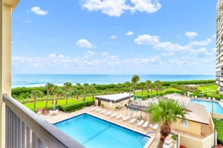 ISLANDIA II ON HUTCHINSON ISLAND - Beautiful condominium on the 4th floor overlooking Ocean and Pool. Features include: replaced AC system (August 2025), repainted (September 2025), replaced water heater (2023), replaced garbage disposal (2023), replaced kitchen faucet (2023), replaced accordion shutters (2019), replaced pipes in both bathrooms, textured ceilings and so much more! Community amenities include: guard at gate, social room with kitchen, billiards, fitness room, sauna, pool, pickleball/tennis, golf practice area, bike storage, storage of first floor, BBQ grills, dune walk with secure beach access, car wash and boat trailer/RV parking. One pet up to 30lbs allowed and building allows rentals of 3 month minimum, two times per year. MIRS and SIRS have both been completed. All sizes, taxes, description and HOA are approximate; there may be inaccuracies, independent verification is suggested.