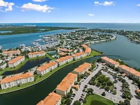 2005-built.An hour north of Palm Beach! Waterfront at Hutchinson Island's renowned Harbour Isle!1989 sq ft superbly designed by DiVosta for spaciousness w/10' ceilings almost throughout.BBQ/picnic area close by.Bldgs 11-19 sunrooms enjoy great indirect light with almost no direct sunlight glaring in! Lightly lived in by original owners mostly as a vacation getaway.NO WEIGHT LIMIT FOR DOGS! Free internet & cable, luxurious tropic-feel pool, hot tub, tennis courts, bocce ball, Social committee w/lots of fun activities, clubhouse, renovated gym, sidewalks around lovely large ponds which feature gorgeous birds, 24-hr manned security. The inlet beach is walking distance. Storied Fort Pierce Inlet! Seaway Dr is home to favorite bars & restaurants, with lots of music! 1.5 mi to beach.