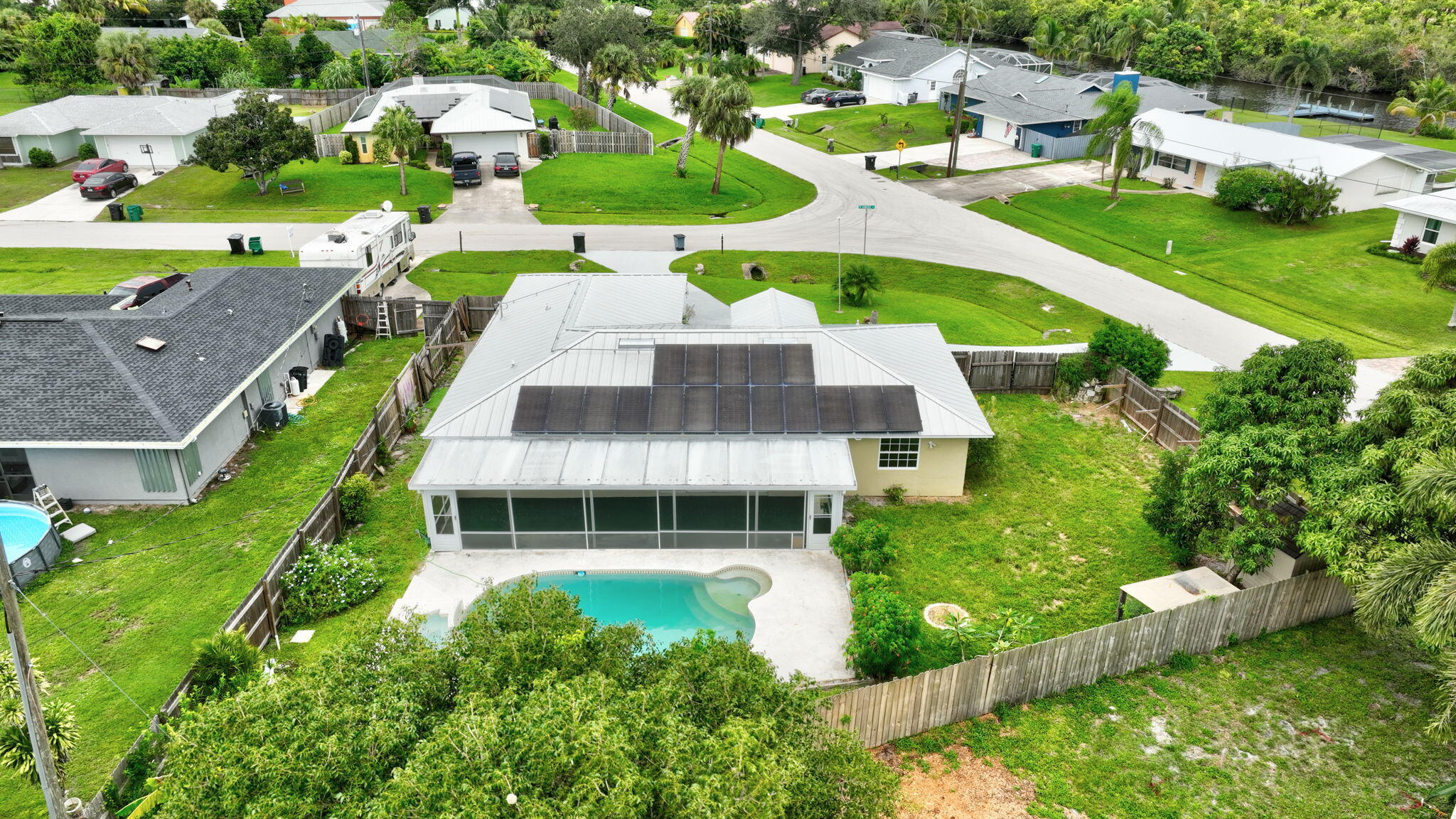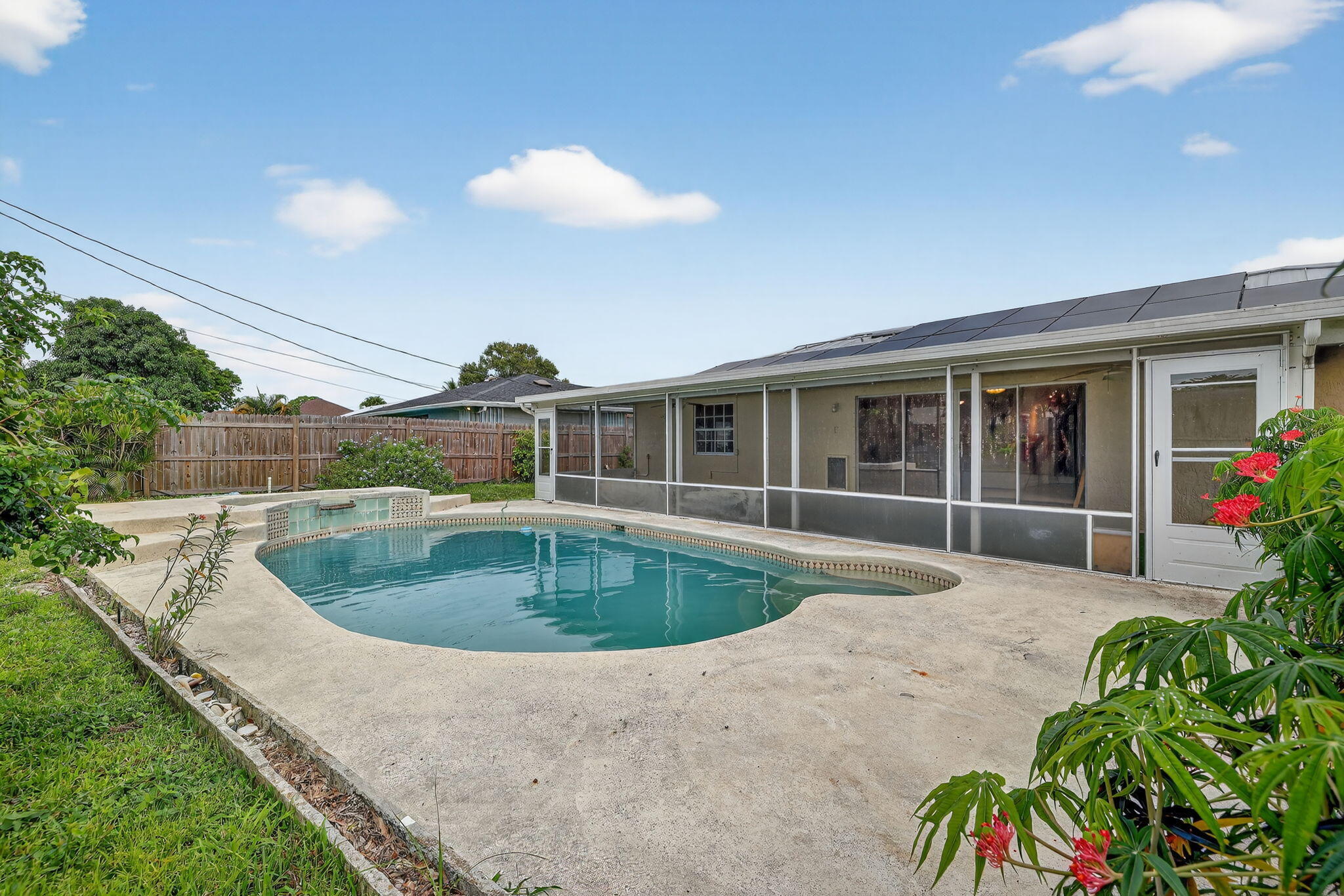 Welcome Home to this 3-Bedroom, 2-Bath Pool Home on a Corner Lot This comfortable home offers an open floor plan with plenty of storage and a new roof installed in 2021. Solar Panels installed in 2022 are paid in full providing significant monthly electrical savings to the new owner! The fenced backyard provides privacy and room to relax, while the screened porch overlooks the pool--great for everyday living or casual gatherings. Located on a nice corner lot, this 3-bed, 2-bath home is practical and inviting. 2 Car garage with plenty of storage options. Close to shopping , dining, schools and so much more.