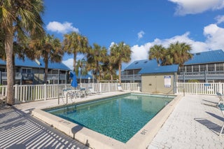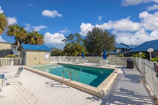 Step into this cozy Florida light & bright 2nd floor, 2-bedroom 1 bath condo boasting 13 ft cathedral ceilings, plus two fabulous porches with back deck over looking Warner Creek and native trees. Located just minutes from beaches, stores & restaurants, Dolphin Village is an all-age/pet friendly community, with 2 pools, 2 club houses, indoor shower, sauna, billiard room, marina, 21' boat slips, boat storage, tennis/pickleball court and metal roofs (2021) offering peace of mind. Don't miss the opportunity to live your best Florida lifestyle. Able to rent immediately! Perfect for year-round, seasonal living, or an investment. Reach out today to schedule a showing.