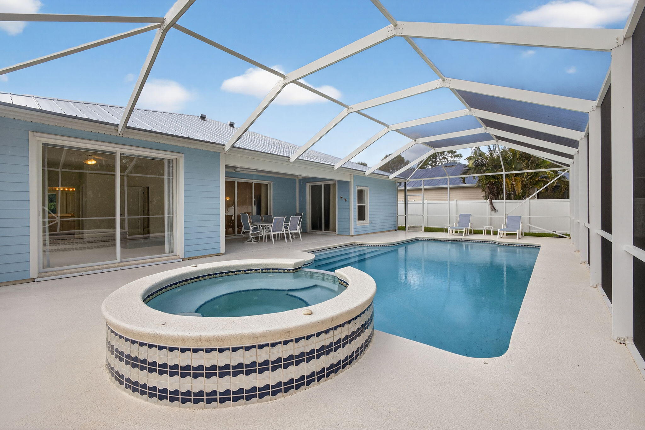 Nestled in Little Kayak Point, on a tranquil cul-de-sac, sits this lovely, breezy-blue Key West home with feel-good, easy vibes. Boasting a new metal roof, move-in fresh interior paint, and a spacious floor plan, this coastal home on its oversized lush green lot effortlessly delivers ''chill'' with kick-off the flip flops, poolside, entertaining. Expansive family room overlooks a private nature preserve. Separate dining area, living or 2nd home office features an added perk to the existing his/her office with backyard views. Revel in the lifestyle pleasure of River Place on the St. Lucie with a Community Clubhouse, pool, gym, kayaking or canoeing, boat launch and storage, barbecue pits, a children's playground, parks and walking trails. Special home in a coveted sought-after spot.
