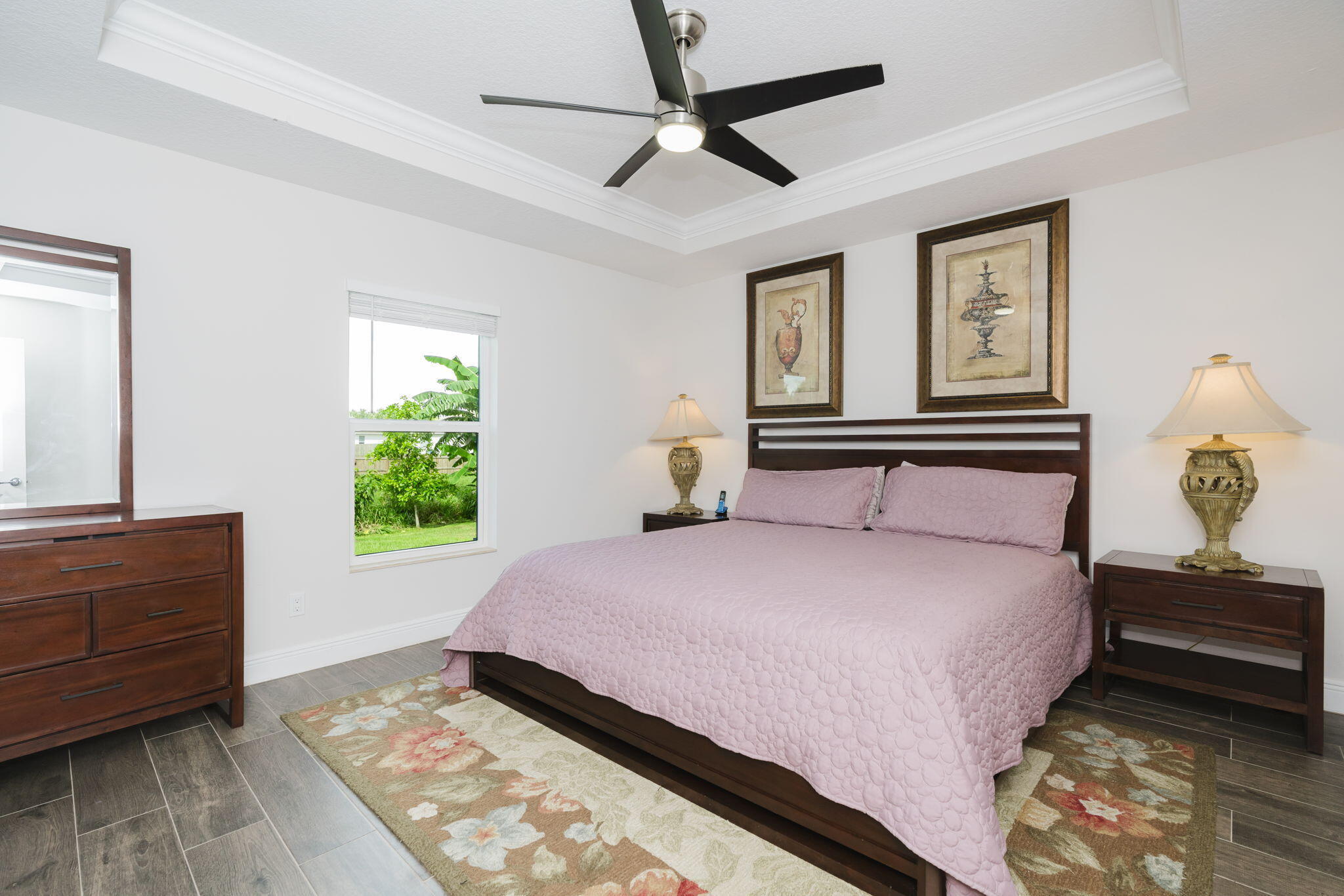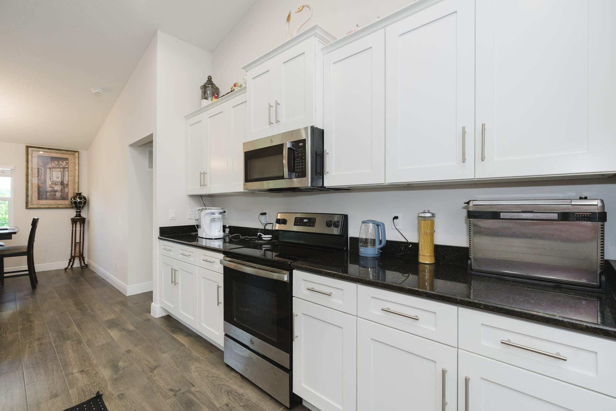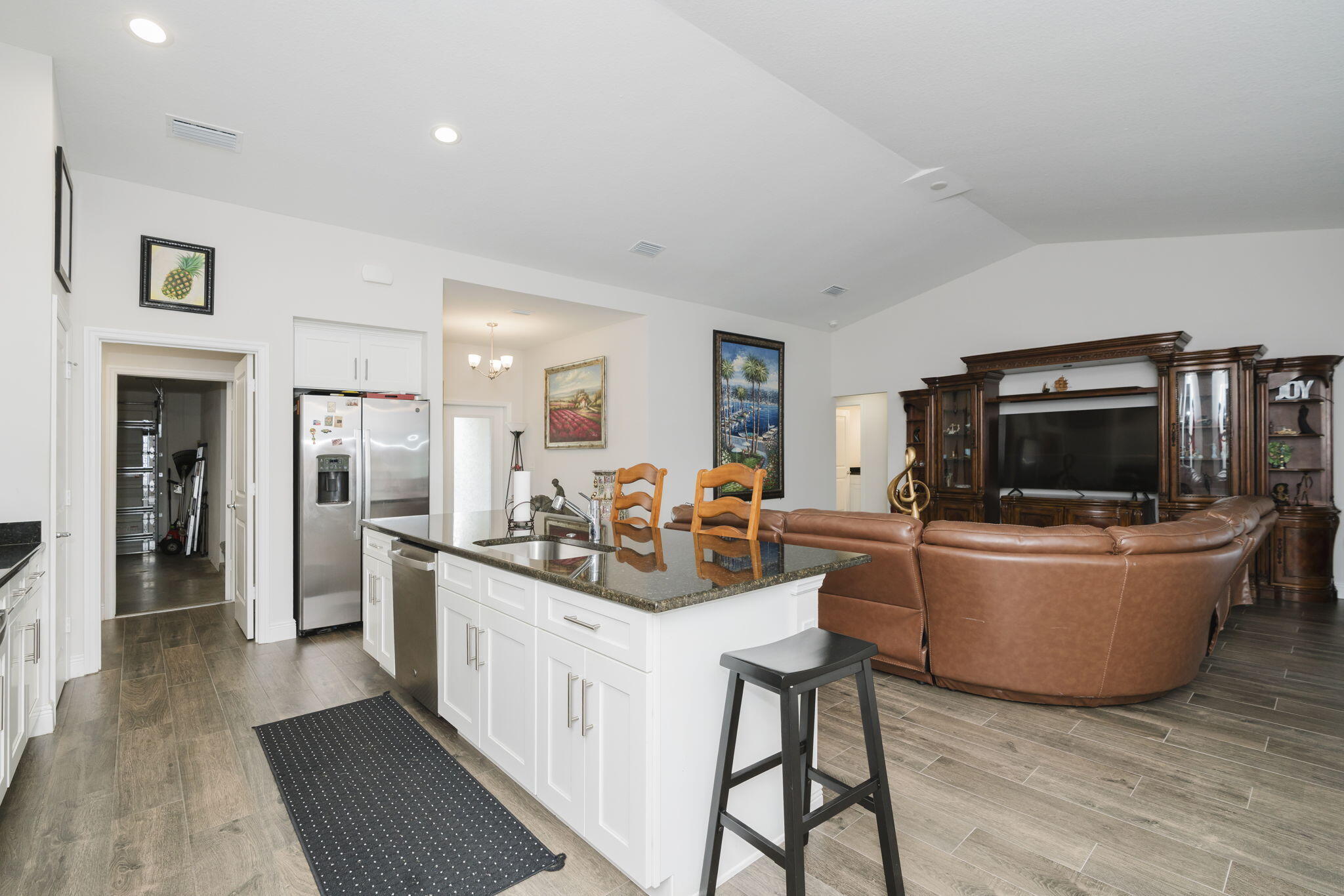 Experience the perfect balance of modern luxury, energy efficiency, and everyday comfort in this stunning 2023 Synergy-built CBS home located in the peaceful Gatlin Pines neighborhood. Offering 4 bedrooms, 2 bathrooms, and 2,012 square feet of living space, this thoughtfully designed residence features impact-resistant windows and Icynene spray foam insulation for enhanced efficiency, comfort, and peace of mind. Step inside to an expansive open-concept layout highlighted by soaring volume ceilings, wood-look tile flooring, and abundant natural light. The contemporary kitchen showcases crisp white cabinetry, dark granite countertops, a spacious pantry, and a social island that seamlessly connects to the dining and living areas perfect for entertaining and everyday living. The desirablesplit-bedroom floor plan provides privacy, with a spacious primary suite featuring tray ceilings, dual sinks, a Roman tub, separate glass-enclosed shower, and a walk-in closet. Three additional bedrooms offer flexibility for guests, a home office, or creative space. Enjoy the Florida lifestyle outdoors on the oversized covered patio overlooking a generous 10,000 sq ft lot. With no HOA restrictions, you have the freedom to park a boat or recreational vehicle and customize your outdoor space to suit your needs. Ideally located just minutes from I-95, the Florida Turnpike, and the vibrant Tradition area, offering premier dining, shopping, and recreation. This move-in ready home blends modern design, quality craftsmanship, and an unbeatable location schedule your private showing today.