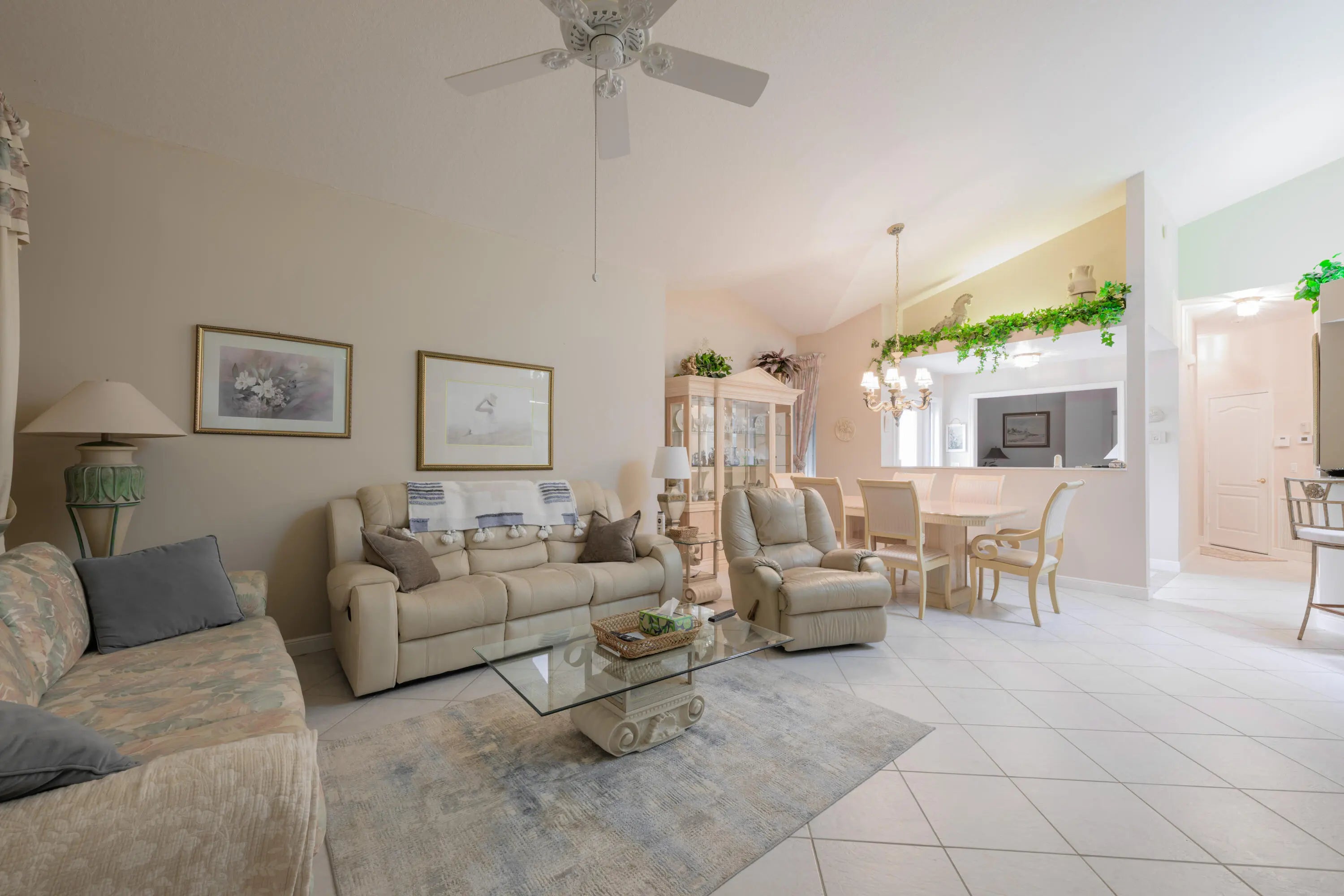 Available as a furnished seasonal rental for the months of January through March 2024; off season rental for April 2024. This former model home is only a short walk to the pool, clubhouse, waterfront and Jensen Beach ''Beach at the Circle'', 2 car garage 2/2 w/ den, granite kitchen w/ utility room and in unit laundry. Screened lanai w/ BBQ, soaring ceilings, tile floors, skylights and community pool overlooking the Indian River and Sailfish Point. Conveniently located to beaches, downtown Jensen Beach and Restaurants. This is vacation home has it all including all the beach items you'll need for a wonderful beach day and fishing rods and gear as well