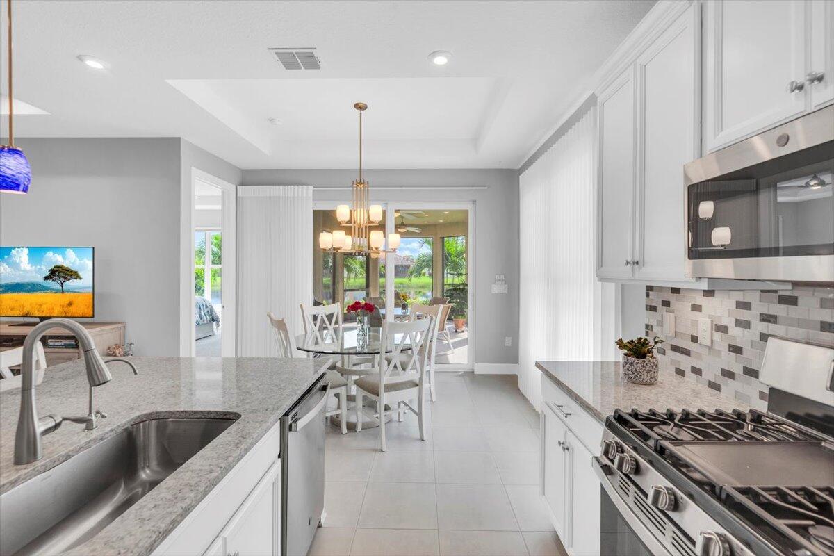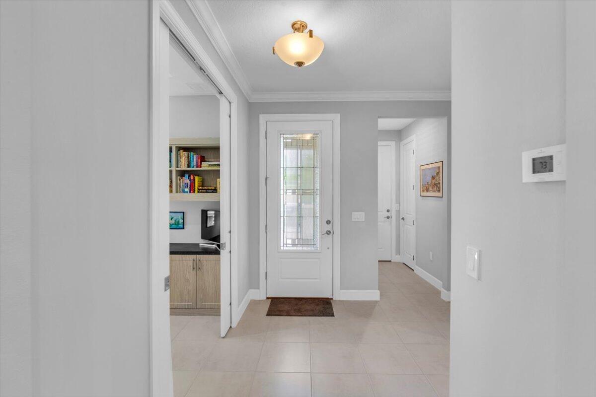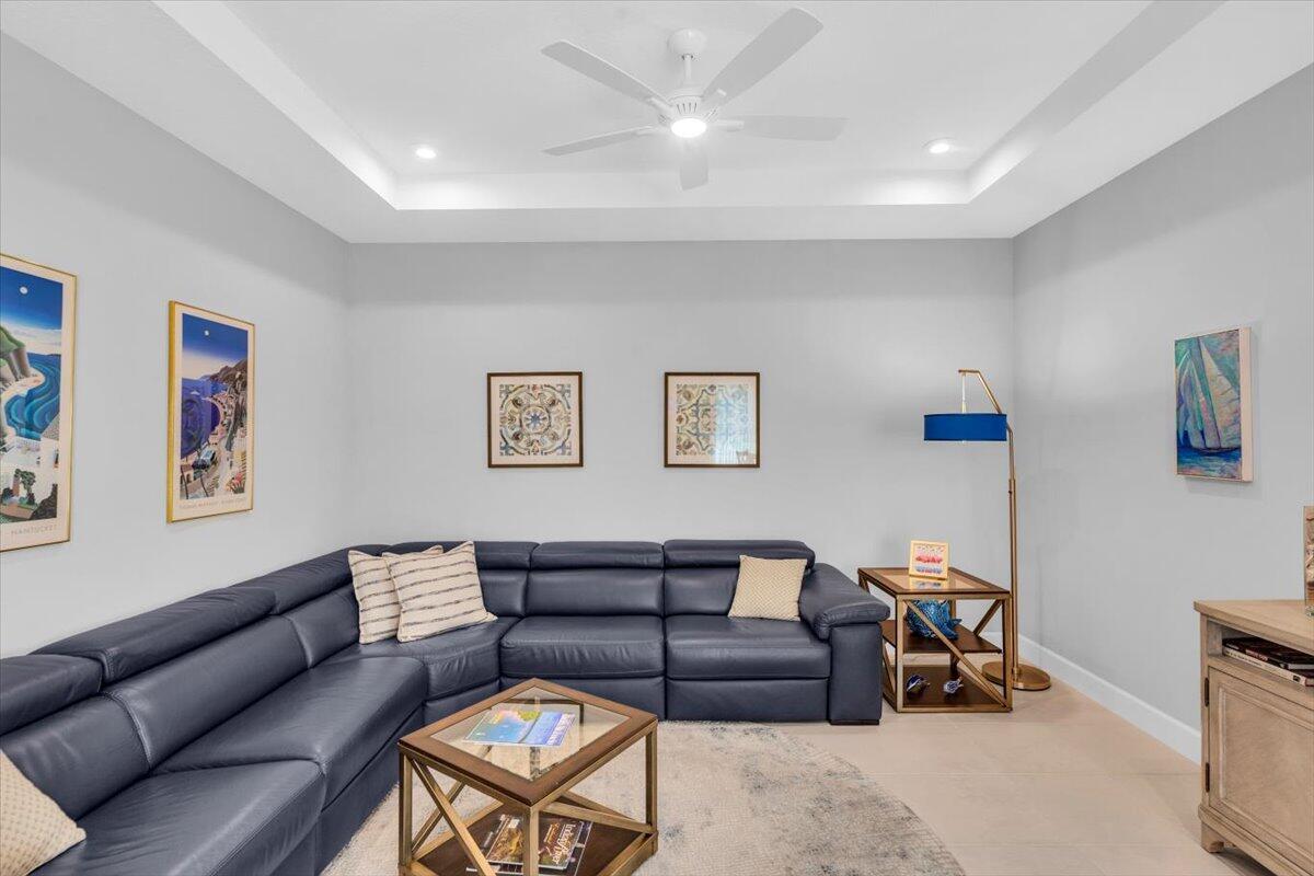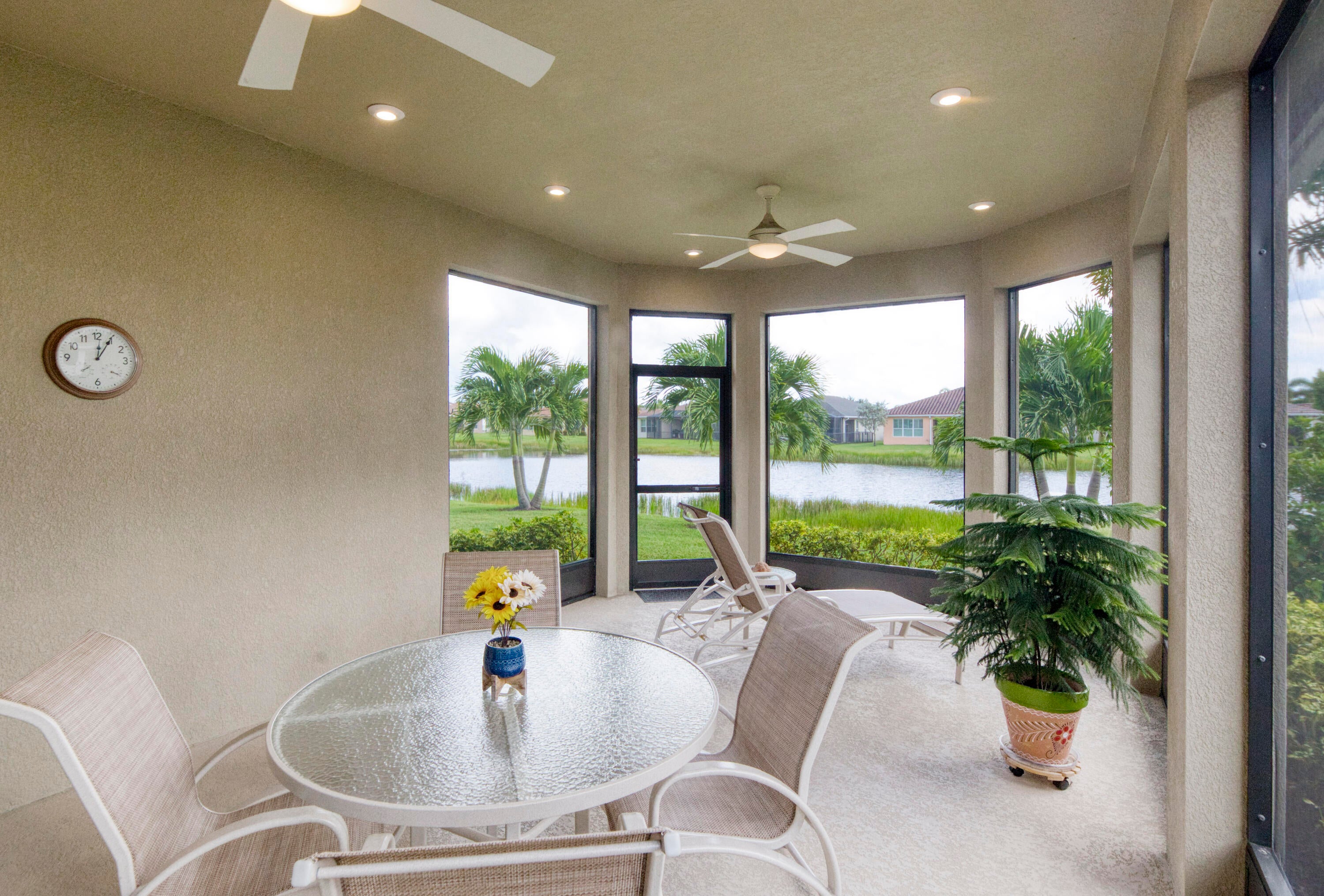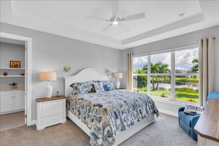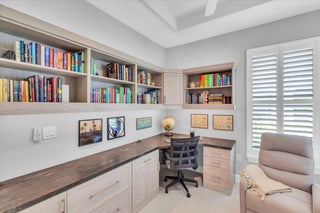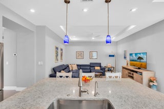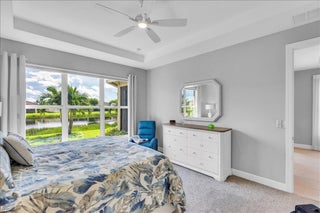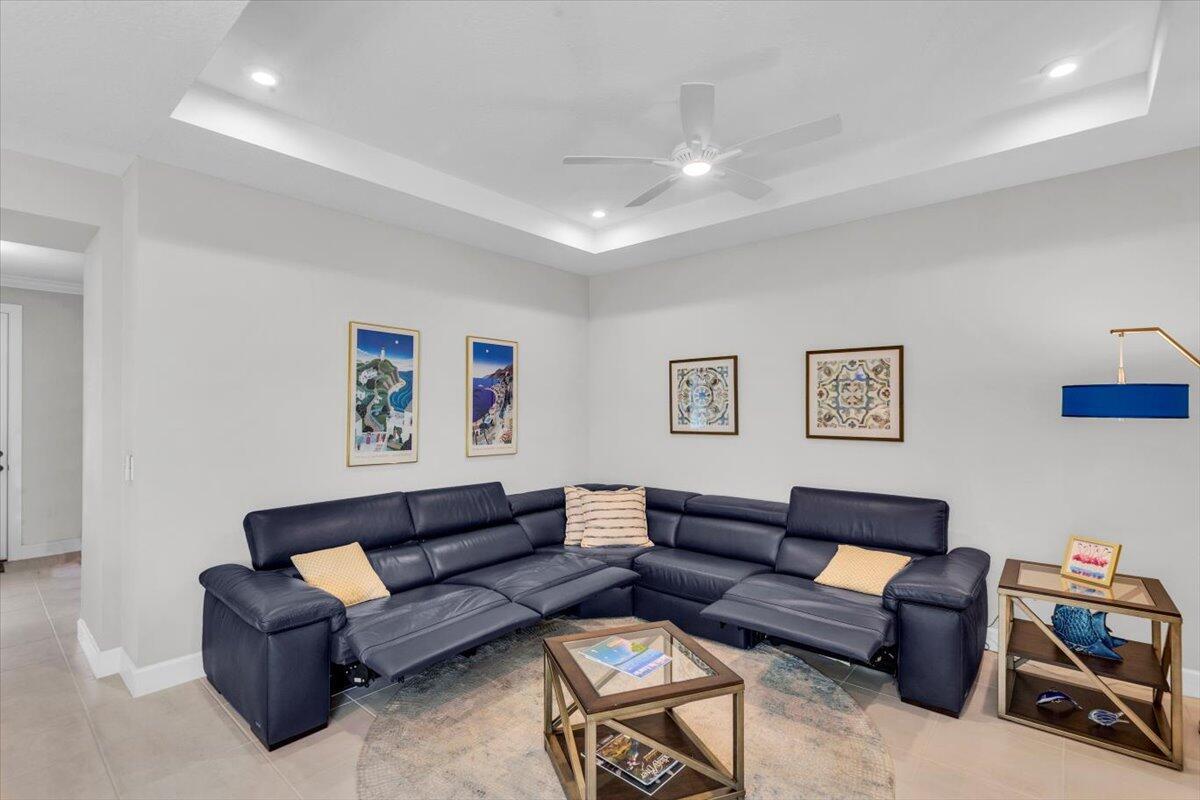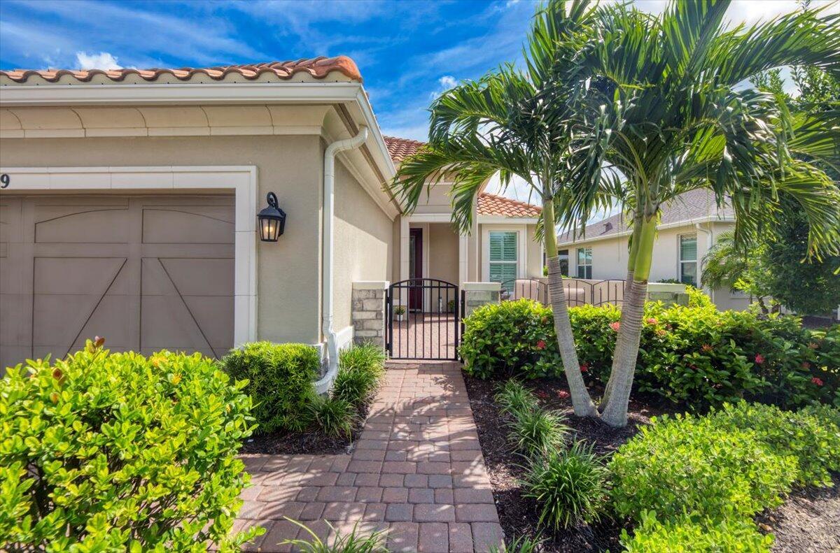 Nestled within the secure, gated community of Vitalia in Tradition, this exquisite CBS built 2-bedroom PLUS den offers a luxurious lifestyle. Offered fully furnished (or unfurnished) w/ high end furniture. Situated on a PREMIUM lakefront lot, enhanced with numerous upgrades, including IMPACT windows & doors, tile flooring in living areas and den, custom Hunter Douglas remote controlled window treatments, crown molding and a gorgeous custom master bedroom walk-in closet. The interior is bathed in natural light from the courtyard entry, beamingonto the professional neutral paint with many expanded windows throughout the home. The gourmet kitchen delights with a gas range, upgraded cabinets, large walk-in pantry, SS appliances, quartz countertops, a spacious island and under cabinet lightsRelax in the spacious master bedroom, featuring brand new carpet, a tray ceiling and a large window to enjoy your serene backyard lake views. Entertain on your expanded, covered and screened lanai overlooking the calming lake surrounded by tropical landscaping. One owner custom built home with numerous upgrades -24,000 sq ft luxury clubhouse- Captiva Club by Vitalia is state of the art with a resort style pool, gym, demo kitchen, pickleball courts, shuffleboard, tennis and monthly social events -The Vitalia lifestyle is a secure community with a 24/7 manned guard gate, very well maintained with minimal maintenance for each homeowner which includes lawn care and trimming included in your low HOA fee. Conveniently located in the heart of Tradition with just a bike ride or golf cart away from the Tradition square events, concerts, farmers market, food trucks, shops, restaurants and more. Five minutes to the Cleveland Clinic hospital and 35 minutes to the local beach. Come live the Traditon lifestyle where you can enjoy as much or as little as your heart desires.