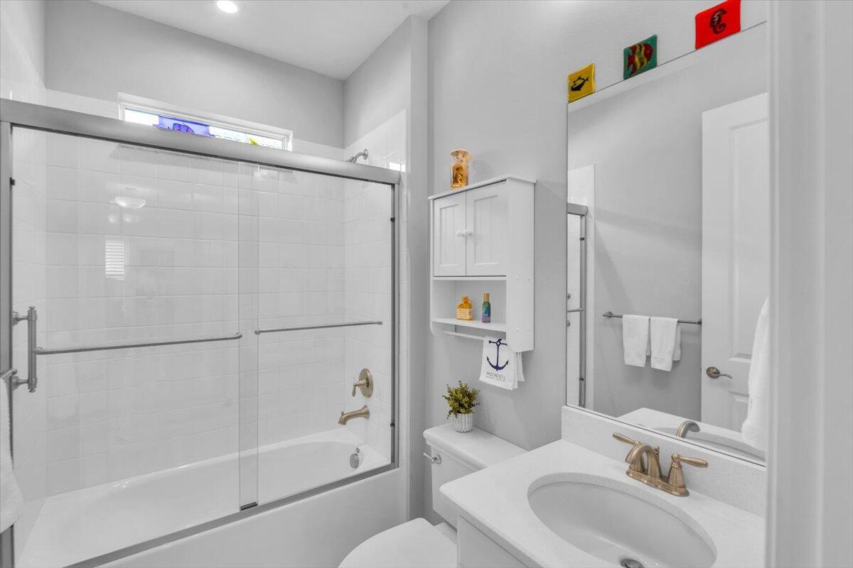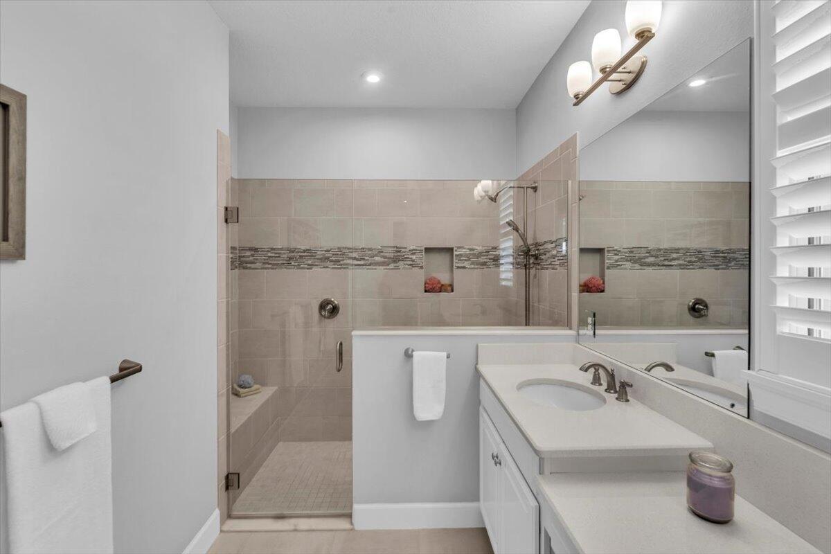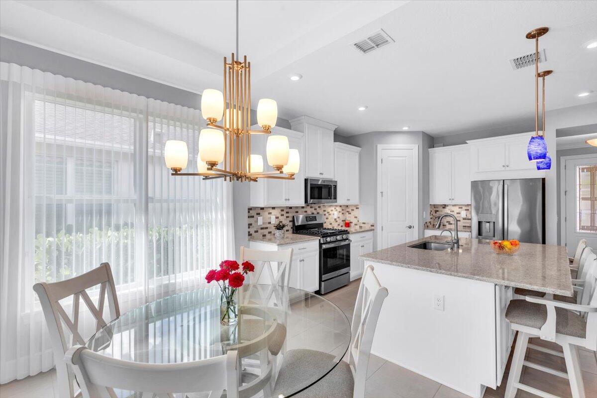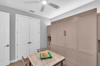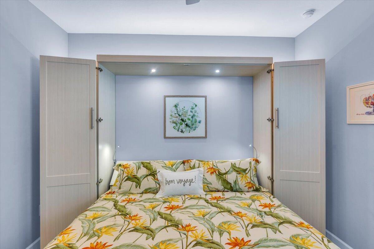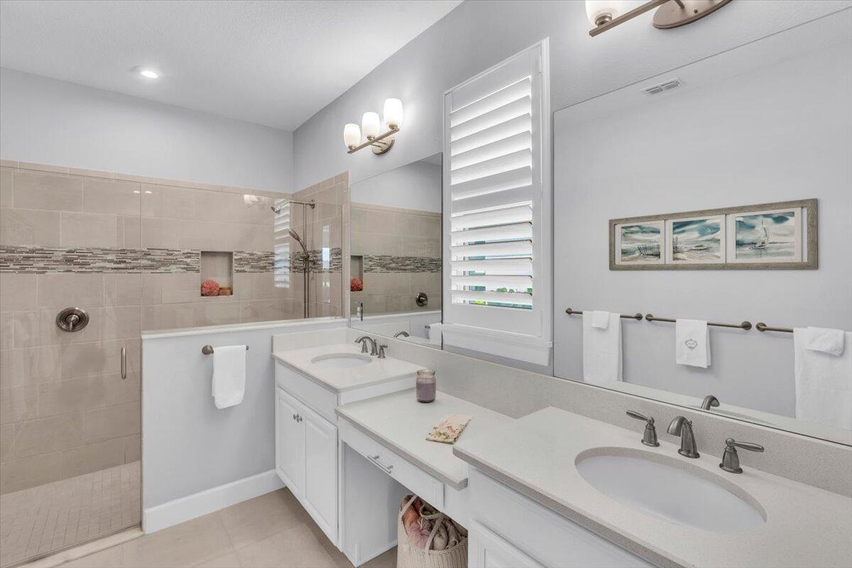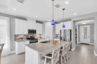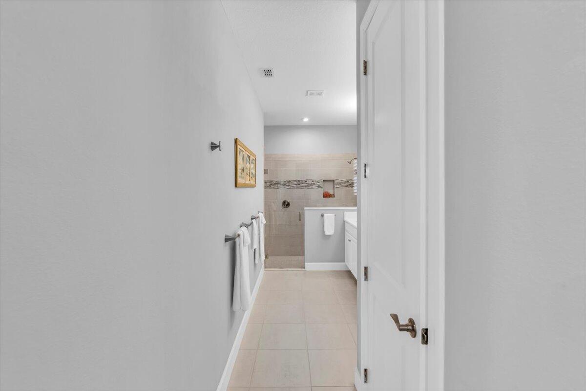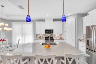 Nestled within the secure, gated community of Vitalia in Tradition, this exquisite CBS built 2-bedroom PLUS den offers a luxurious lifestyle. Offered fully furnished (or unfurnished) w/ high end furniture. Situated on a PREMIUM lakefront lot, enhanced with numerous upgrades, including IMPACT windows & doors, tile flooring in living areas and den, custom Hunter Douglas remote controlled window treatments, crown molding and a gorgeous custom master bedroom walk-in closet. The interior is bathed in natural light from the courtyard entry, beamingonto the professional neutral paint with many expanded windows throughout the home. The gourmet kitchen delights with a gas range, upgraded cabinets, large walk-in pantry, SS appliances, quartz countertops, a spacious island and under cabinet lightsRelax in the spacious master bedroom, featuring brand new carpet, a tray ceiling and a large window to enjoy your serene backyard lake views. Entertain on your expanded, covered and screened lanai overlooking the calming lake surrounded by tropical landscaping. One owner custom built home with numerous upgrades -24,000 sq ft luxury clubhouse- Captiva Club by Vitalia is state of the art with a resort style pool, gym, demo kitchen, pickleball courts, shuffleboard, tennis and monthly social events -The Vitalia lifestyle is a secure community with a 24/7 manned guard gate, very well maintained with minimal maintenance for each homeowner which includes lawn care and trimming included in your low HOA fee. Conveniently located in the heart of Tradition with just a bike ride or golf cart away from the Tradition square events, concerts, farmers market, food trucks, shops, restaurants and more. Five minutes to the Cleveland Clinic hospital and 35 minutes to the local beach. Come live the Traditon lifestyle where you can enjoy as much or as little as your heart desires.