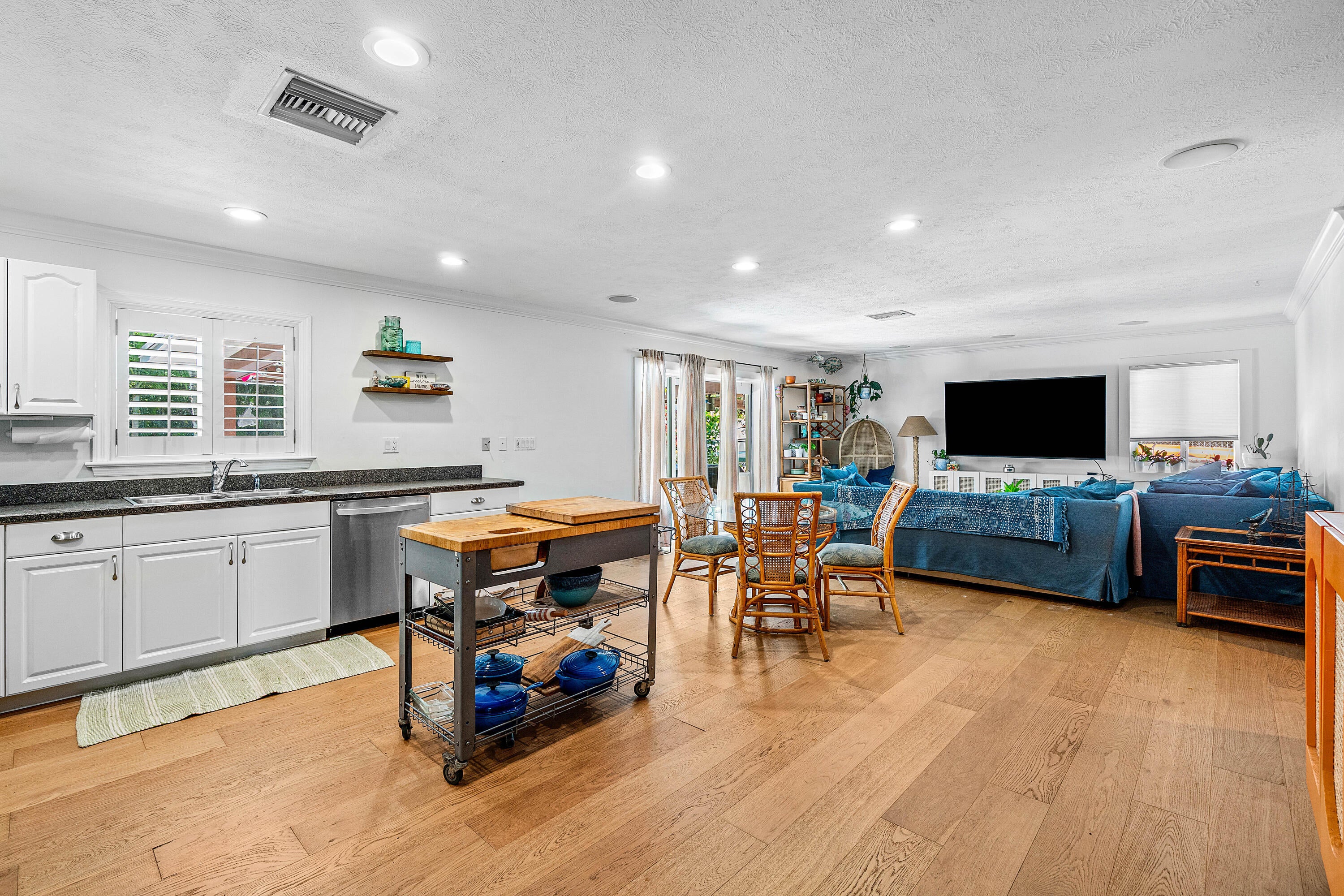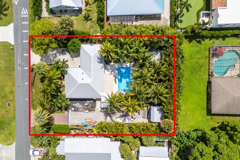 Located in the heart of downtown Stuart, this beautifully updated mid-century home offers 3 bed, 2 bath, and sits on over 1/3 of an acre. Warm wood details, including a unique curved slatted wall, add character throughout. The air-conditioned garage doubles as a versatile flex space, while the upgraded bathrooms feature high ceilings, skylights, and elegant finishes.The double lot is the true standout, offering a spacious yard, heated saltwater pool, summer kitchen, RV hookup, and two finished bungalows -- perfect for guests, home offices, or creative studios (w/income producing potential). Also, an outdoor shower, room for boats and outdoor toys, & space for a garden.Just steps from downtown restaurants, shops, cafes, and scenic waterways - Live like your always on vacation