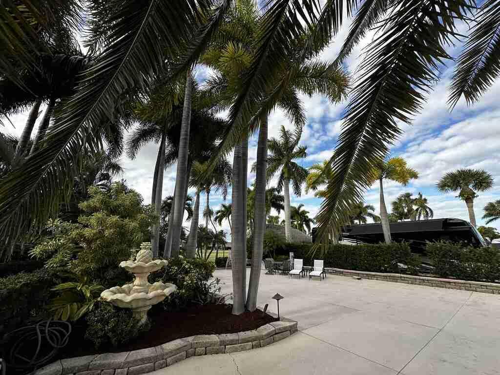 First time offered for sale since 2004! Likely one of the largest lots in the resort with over 3800sq'(!) accented majestic mature palm trees and over looking the 10th tee. You want space? Its all here! Plenty of room to construct the largest tiki allowed with plenty of room for additional outdoor entertaining and more than generous space to accommodate the largest of motorcoaches, vehicles and golf carts. Already on site is an outdoor kitchen. Located in the Motorcoach Resorts St Lucie West - a class A only resort. Amenities include 18 hole golf, pickleball, pools, spas, tennis, clubhouse, onsite manager with endless activities and social calendar and more!