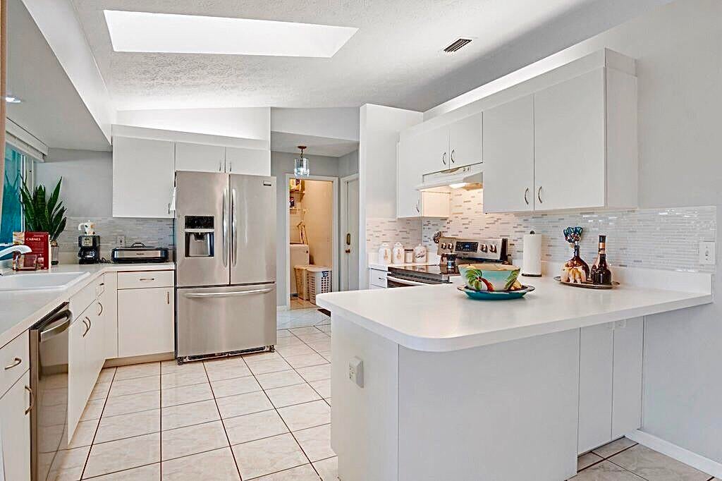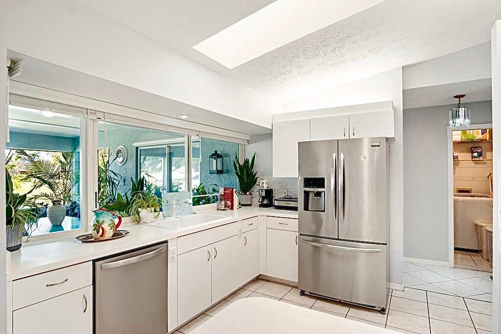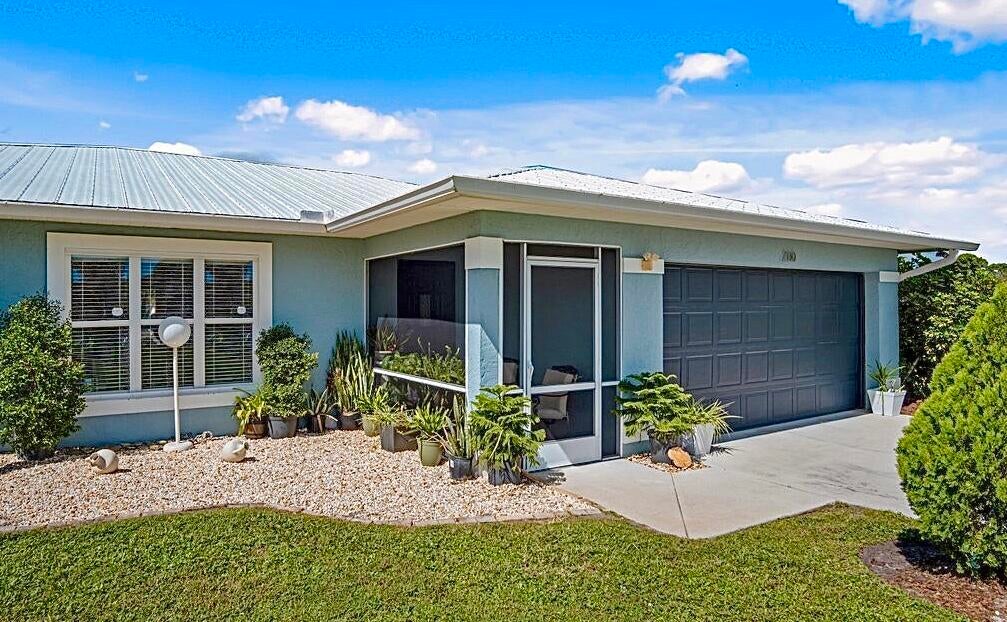 This beautiful home is in move-in condition. There are so many unique features. The home sits on one of the deepest lots in this neighborhood on a wide fresh water canal with a city green belt that provides excellent drainage. If you have a number of vehicles,maybe a motor home, boat on a trailer, or RV, thereis so much extra parking and room for a extra turnaround pad. Entire home including the Florida Room has a Metal Roof. Covered and Screened front entry porch, Kitchen features all stainless appliances including a bottom freezer. The is also a skylight andtile backsplash. New 2025 Garage Door Opener, the mature professional landscaping is exceptional. Take the 45 plus HD Photo Tour and call for an appointment today...All new guest bathroom in 2020, with custom tile, a Spa Jet Tub and much more-see photos. Garage has one entire wall all with storage shelves...