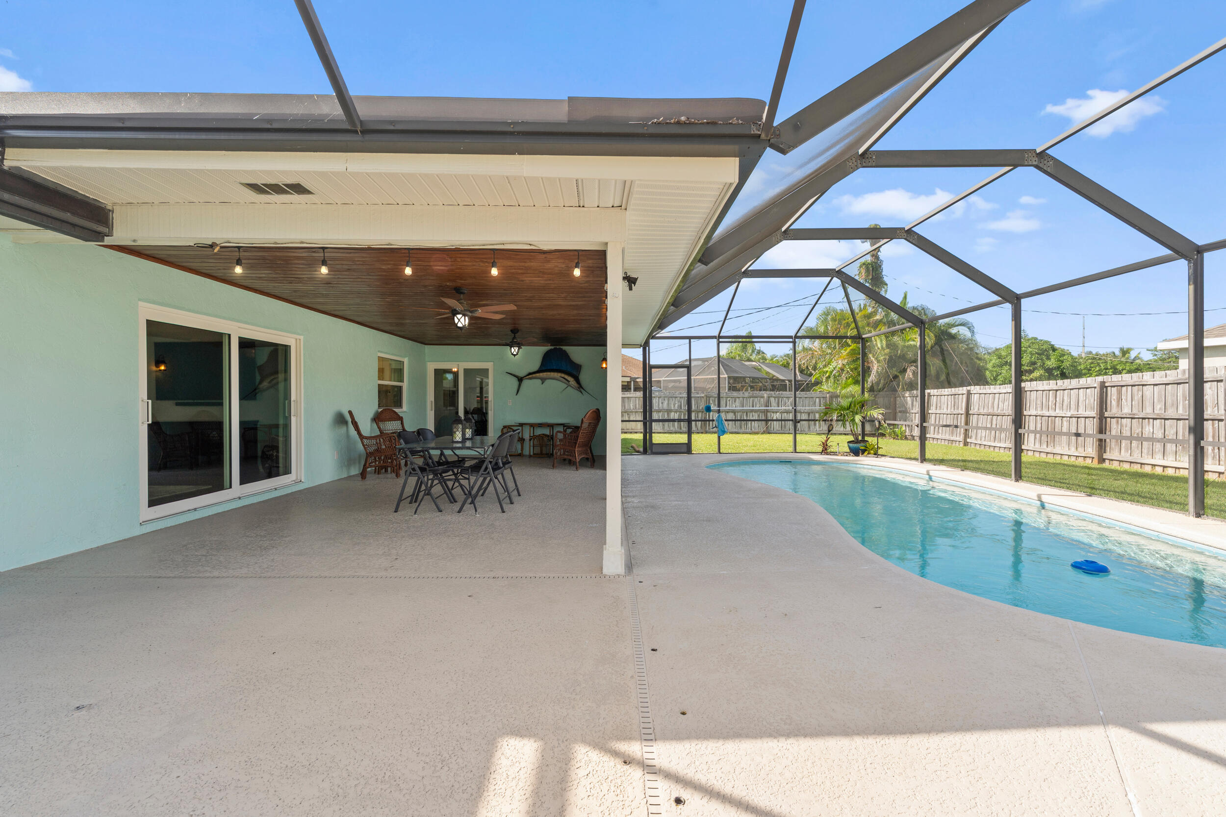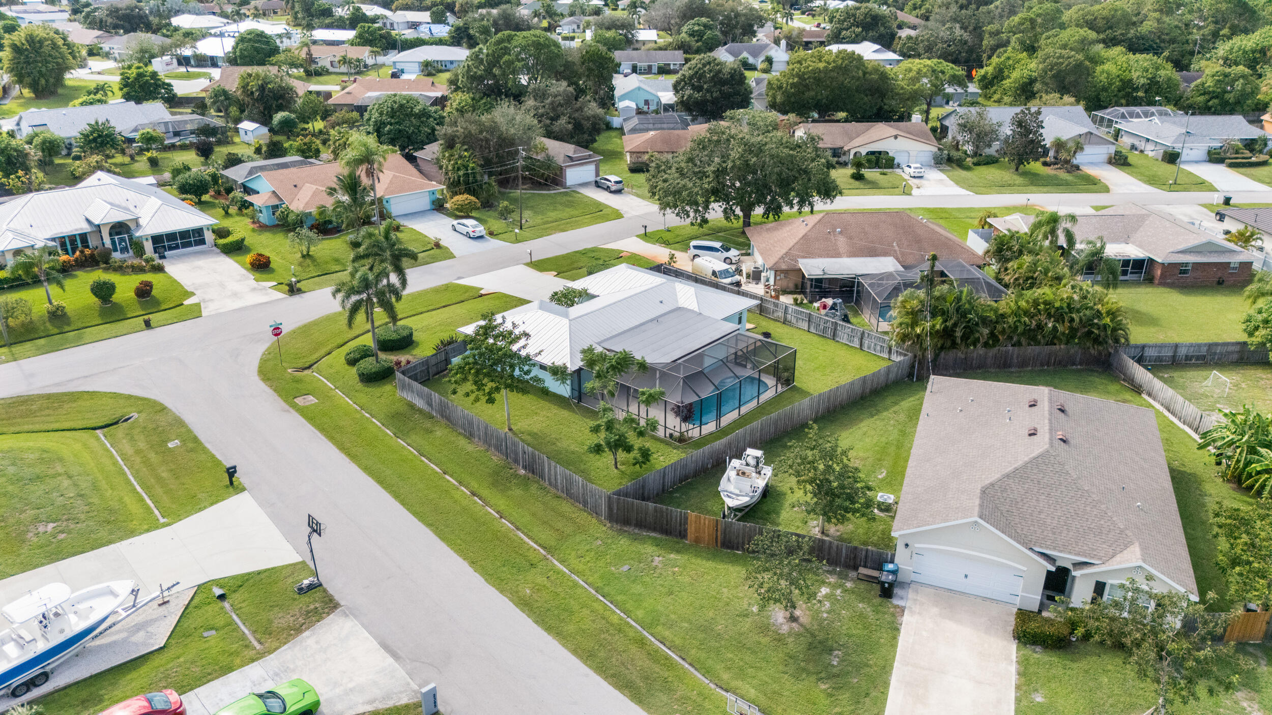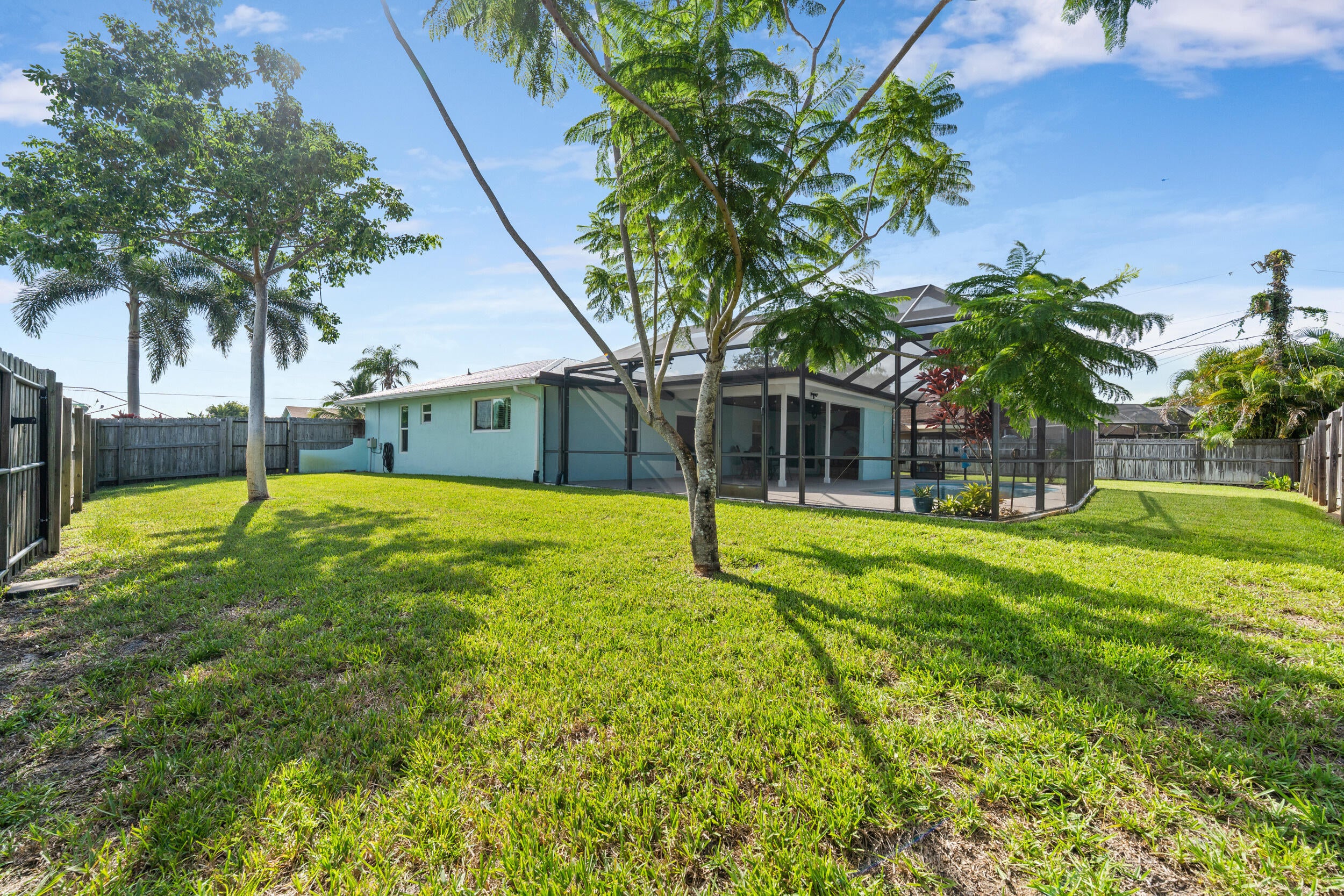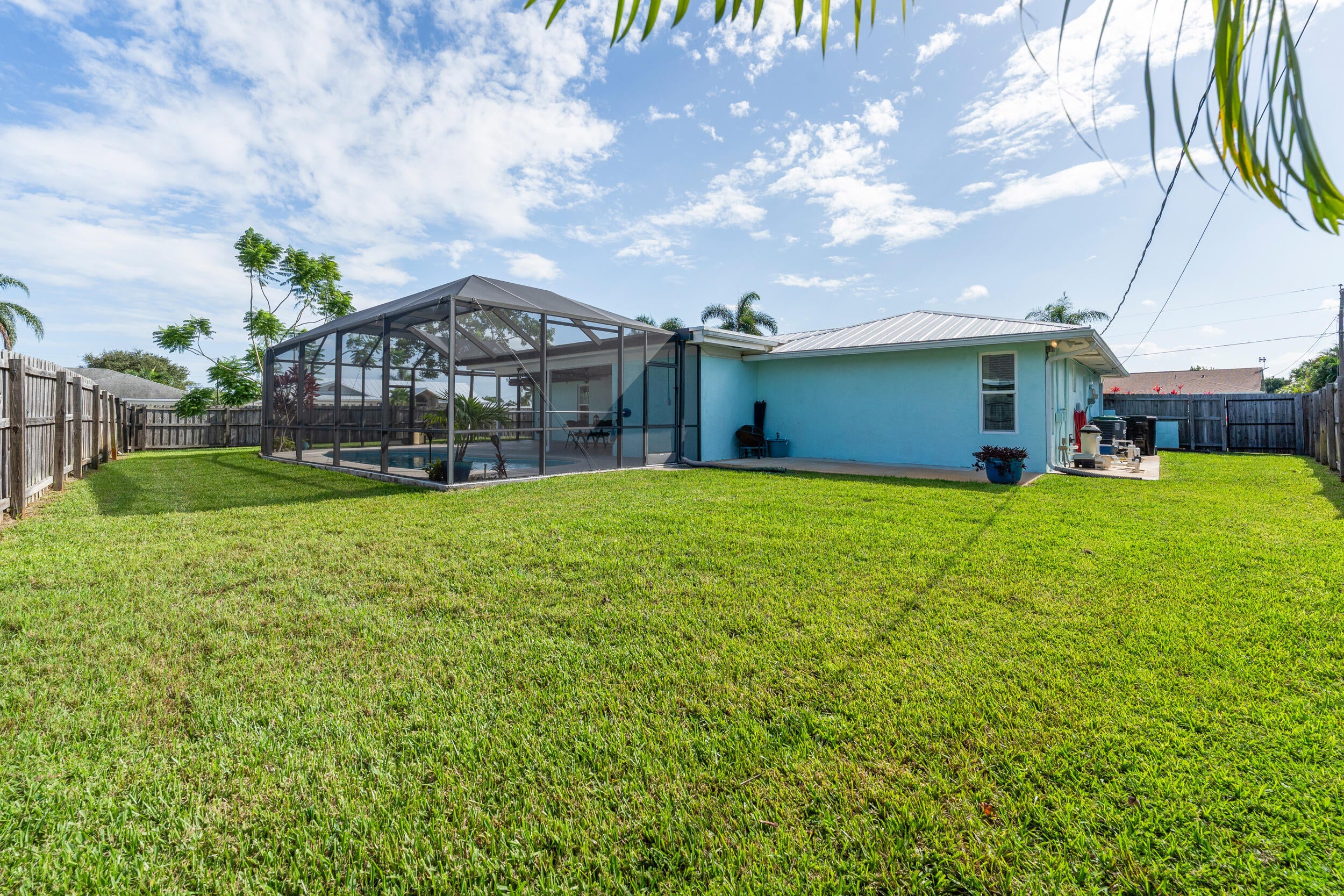 Welcome to this charming 3BR/2BA pool home on a corner, fenced-in lot in the heart of Port St. Lucie. Inside, enjoy tile flooring throughout, updated bathrooms, stainless steel appliances, and beautiful soft-closing kitchen cabinets. Thoughtfully updated for peace of mind, this home features a metal roof (2018), impact windows & doors (2020), flat roof (2023), sprinkler system (2023), pool pump (2020), and water heater (2019). The private pool and spacious yard make this property perfect for entertaining and Florida living. Conveniently located near shopping, dining, and schools!