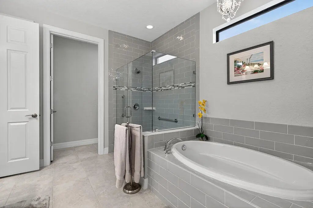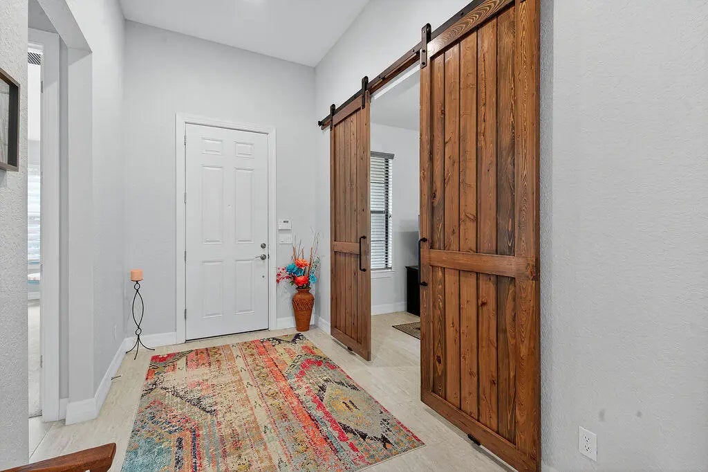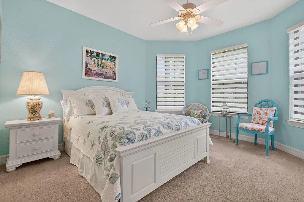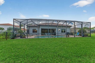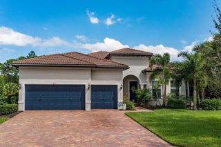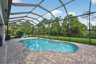 Welcome to Copperleaf - One of Palm City's Most Sought-After Communities!This beautifully maintained coastal themed Pulte Pinnacle model offers the perfect blend of luxury, comfort, and functionality--all on one spacious level. Nestled on a pie-shaped oversized lot, this 3-bedroom, 3-bath home (including 2 ensuite baths) features a split floorplan with a dedicated home office adorned with custom barn doors, ideal for work or quiet retreat.The heart of the home is the open-concept, upgraded kitchen, boasting taller cabinets, an expanded center island, and ample space for entertaining. Impact windows throughout offer peace of mind, while allowing natural light to pour in.Step outside to your private, screened pool area with crosswind heat pump. The serene