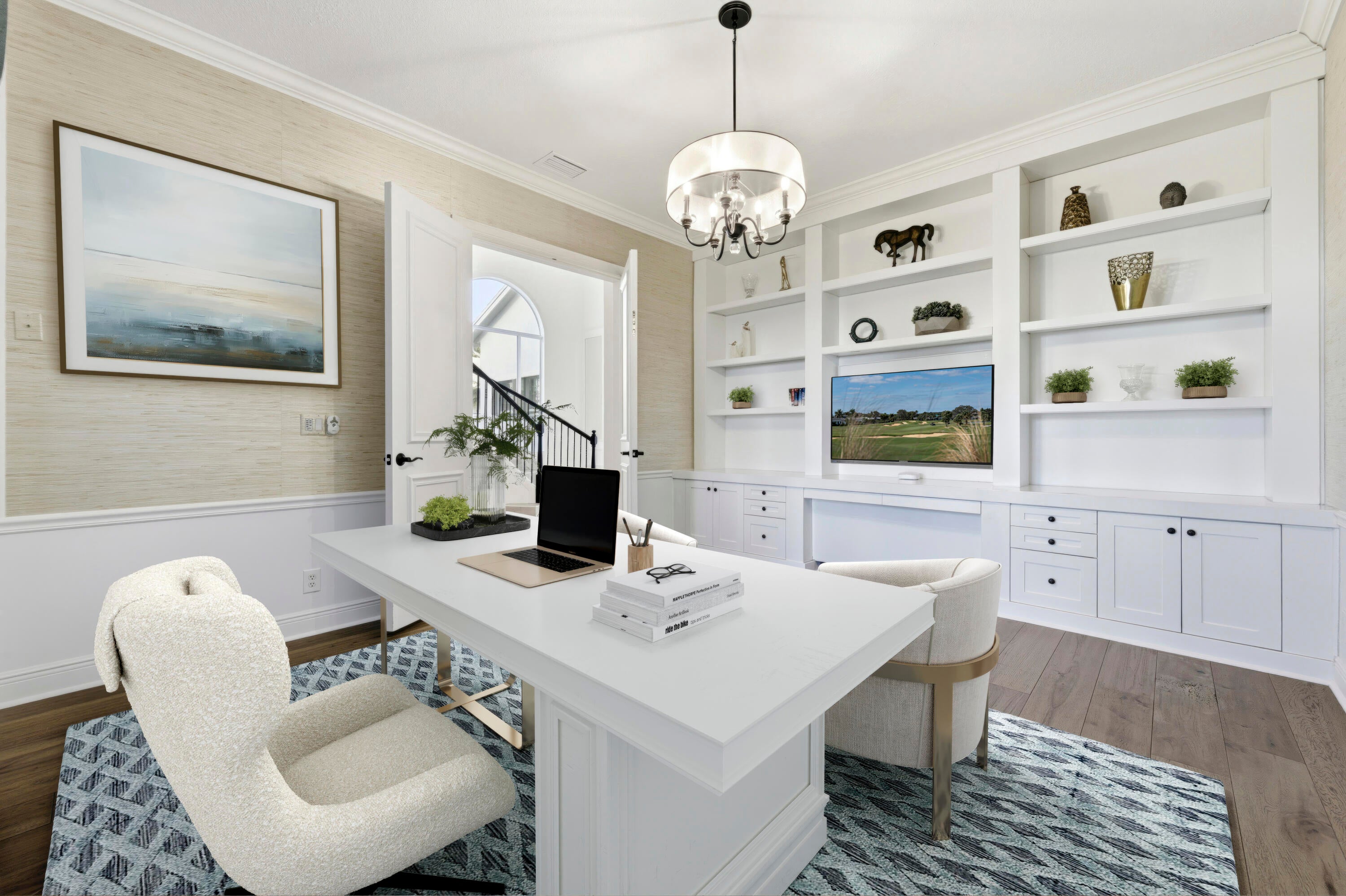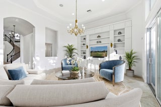 Live luxuriously on the 16th green of the Arnold Palmer Signature Course in the prestigious Frenchman's Reserve, a flagship Gold Community. This elegant 4-bedroom plus a den/office, 5.1-bath estate offers 4,465 sq ft of refined living space with dramatic 21-foot ceilings and abundant natural light throughout. Built by Toll Brothers, this home features a thoughtfully designed layout with a first-floor guest suite offering private terrace access, a spacious den/office, and a grand primary suite with dual bathrooms and sitting area. Upstairs, you'll find a versatile loft and two additional guest bedrooms; each with ensuite baths, creating the perfect setup for privacy and comfort. The second floor also offers an oversized loft area perfect for/ optional fifth bedroom.The chef's kitchen with gas cooking opens to a large family room and formal dining areas, all ideal for entertaining. Outside, enjoy sweeping golf course views from your expansive patio, complete with a freeform heated pool and spa, built-in grill, and lush landscaping. Additional features include a 2024 roof, whole-house generator, partial impact glass, and a 2.5-car garage. Located on a quiet cul-de-sac within a gated, amenity-rich community featuring golf, tennis, spa, dining, and more. Full golf membership required. Frenchman's Reserve has a lifestyle among the best in the country offering, luxury, privacy, world class amenities and country club. Located in the northern Palm Beach Gardens just minutes away from fine dining, shopping, beaches, entertainment and more. Convenience located near major highways I95, Turnpike and Palm Beach International Airport.