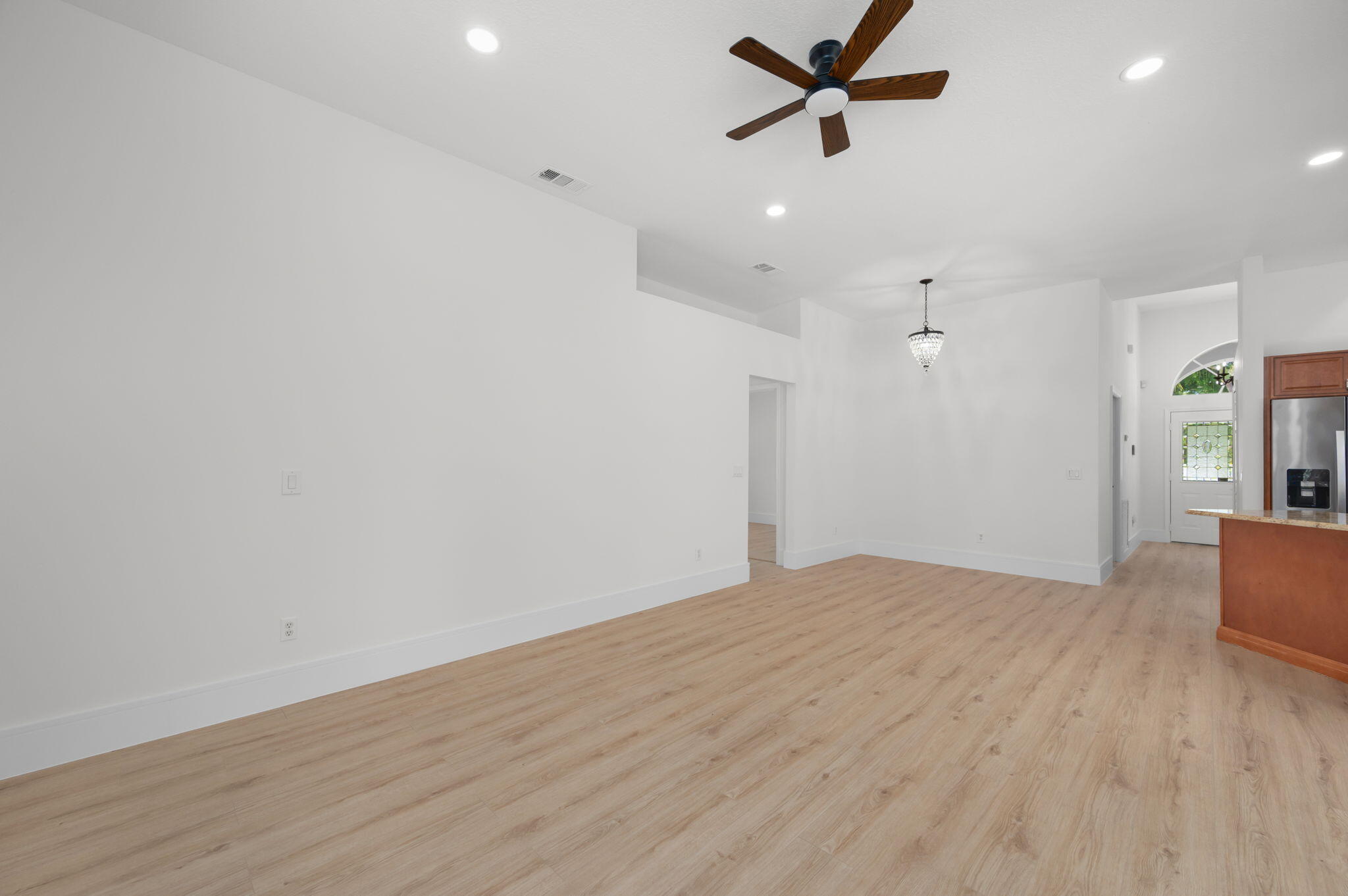 Enjoy the Peaceful and Refreshing East Side of Town! NO HOA! Totally renovated this 3BR/2.1BA.2CG, move-in ready CBS home (enhanced safety and lower insurance costs), is perfect for mid-sized, mid-age families who are eager to embrace the Florida lifestyle. Featuring a private pool, brand new laminate flooring, stainless steel appliances, granite countertops, and a separate walk-in shower. Relax in the extra-large screened patio or entertain by the pool with a canal view and privacy. Situated on an oversized lot with an extended driveway, this property offers room for your boat, RV, motorcycle without the hassle and financial burden of a HOA! Conveniently located near beaches, boat launches, fishing and canoeing spots, makes it truly Florida Living at its Best!!