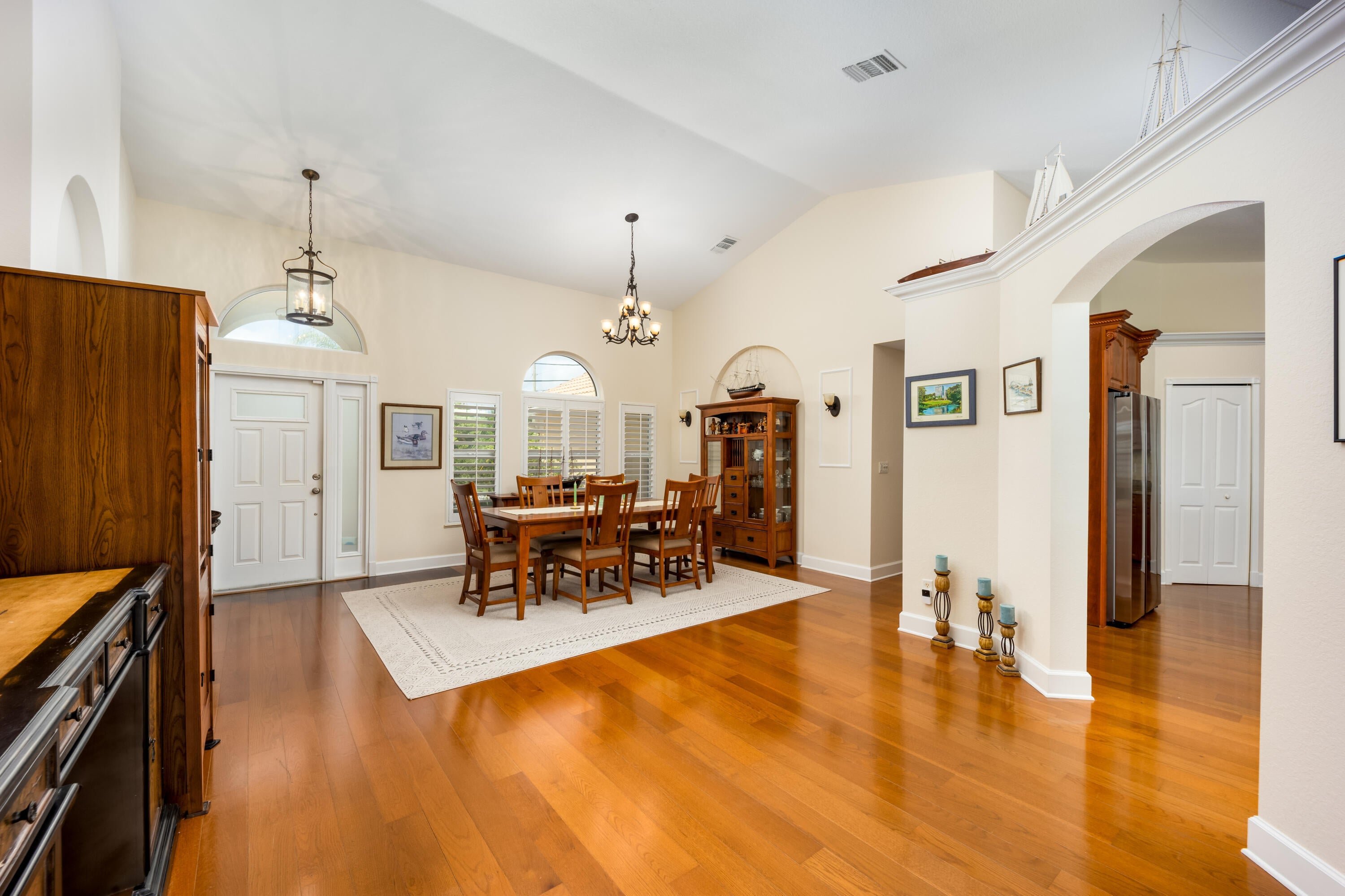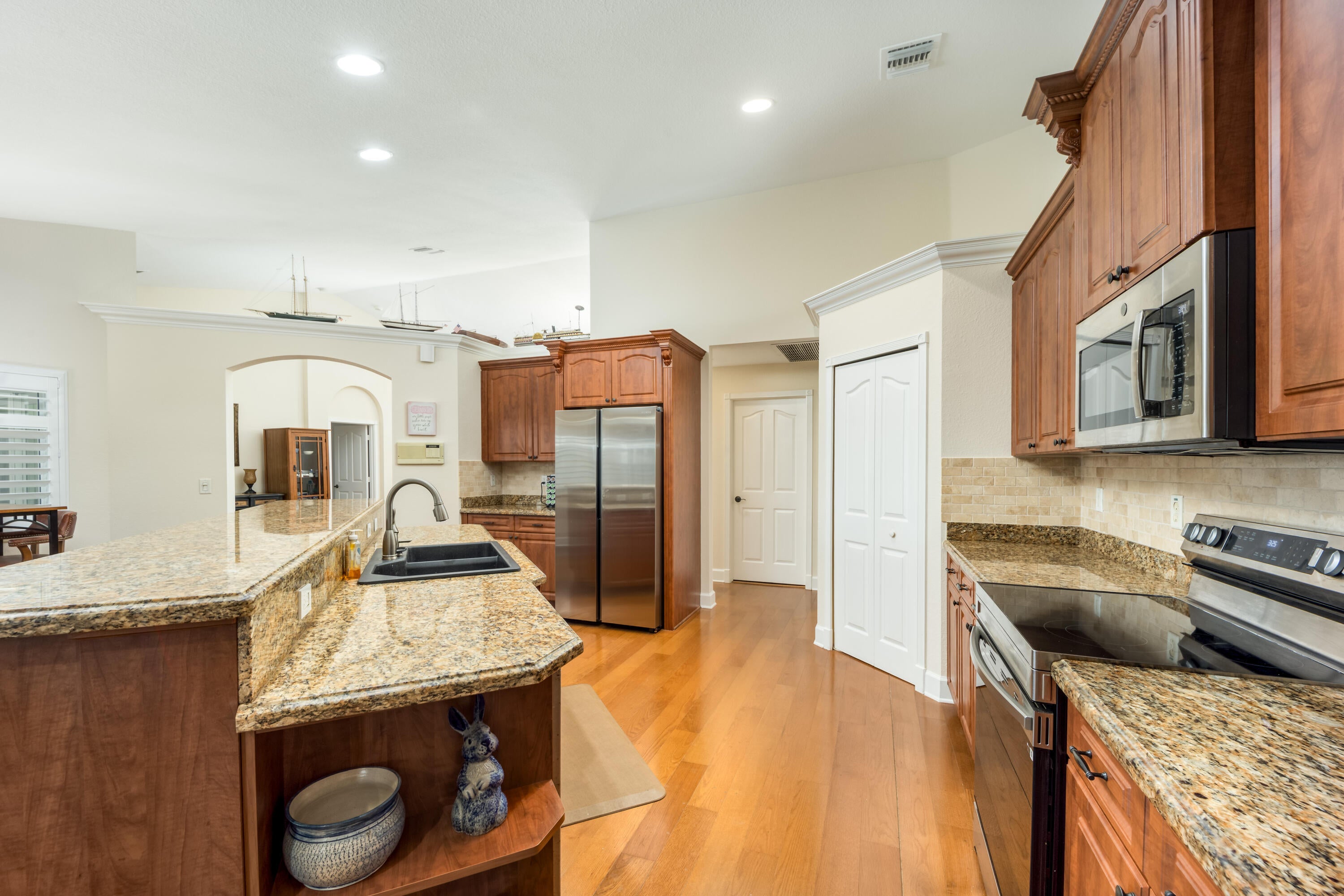 This Solid,4/3,CBS, Pool Home is hands down the most Gorgeous & Move In Ready Retreat we have been in! Impact Windows, Plantation Shutters, HEATED POOL, plus more. Each bedroom is spacious, and one can be a separated suite for multi-generational living, if desired. The Primary Bedroom has two walk in closets, separate tub & large shower & sliders to the pool. A large covered lanai is the icing on the cake, with an OUTDOOR KITCHEN & room for all your family celebrations! Circular Paver driveway and paver walkways all around the home. I mean this is a great house! Close to Parks, Fine Restaurants, Live Theaters, Beaches and more! Call today to come see!